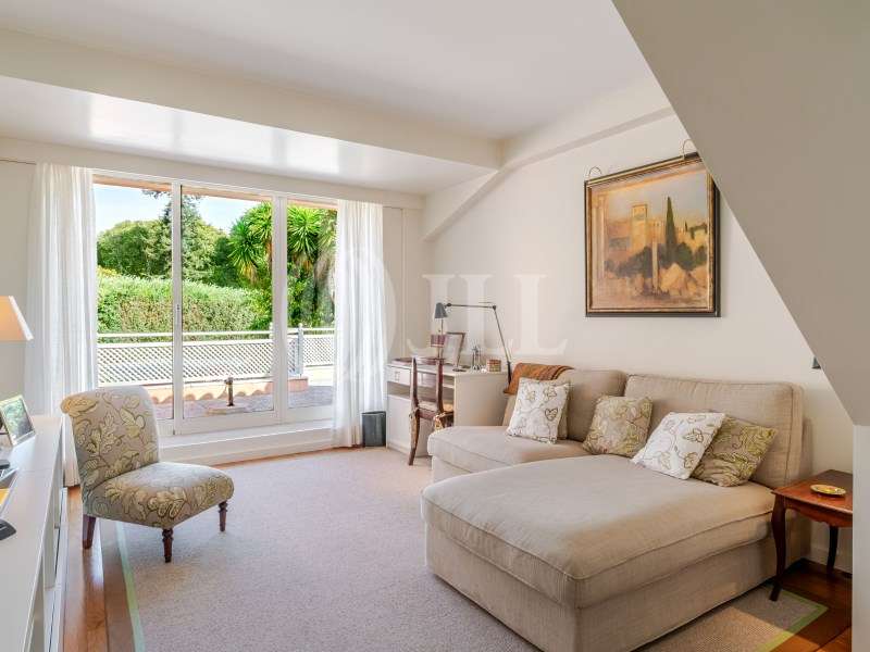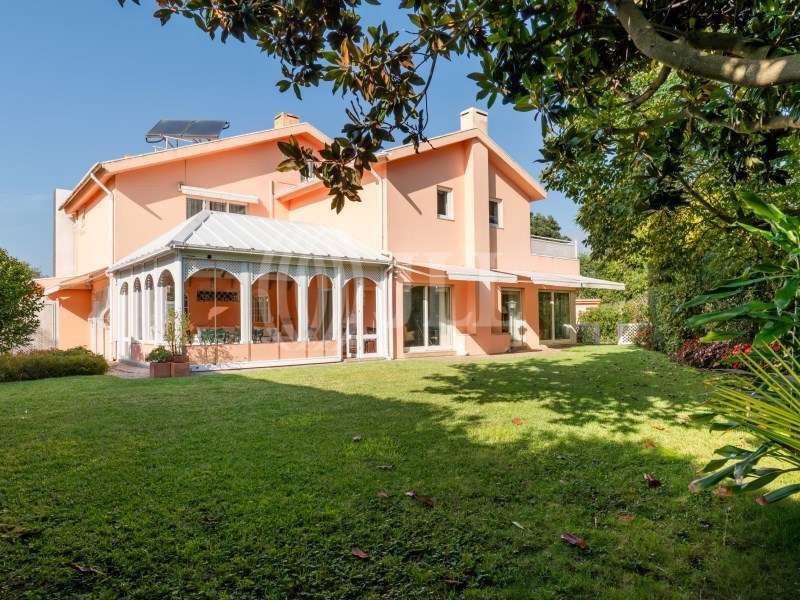 Moradia T5 com 361 m2 de área bruta de construção, com jardim e garagem, inserida num lote de 935 m2 no entre Serralves e Marechal, no Porto. Esta excepcional moradia de dois pisos destaca-se pela sua localização privilegiada, numa das zonas mais exclusivas e valorizadas do Porto. Implantada num terreno de quase 1.000 m², garante absoluta privacidade e total discrição da rua, oferecendo um equilíbrio perfeito entre funcionalidade e recato. A área social composta por sala de estar e sala de jantar elegantes, ambas com amplos vãos envidraçados que estabelecem comunicação plena com os jardins exteriores, criando uma sensação de luminosidade excecional nos espaços interiores. O jardim de inverno constitui um dos espaços mais interessantes da propriedade, com um ambiente mediterrânico acolhedor e informal, enquanto o escritório, mais austero, com lambrim requintada e lareira, transporta-nos para outra época. O piso térreo inclui lavabo social, cozinha totalmente equipada, despensa, lavandaria e um quarto com casa de banho. No primeiro andar encontram-se quatro quartos, dois dos quais em suite, e o sótão foi convertido numa suite encantadora. Exteriormente, a propriedade dispõe de garagem para dois automóveis e, por baixo desta, um espaço com luz natural, casa de banho e arrumos que pode ser utilizado independentemente para hóspedes ou pessoal. Esta moradia representa o refúgio ideal para quem procura o equilíbrio entre a proximidade ao centro da cidade e a serenidade de uma das zonas mais tranquilas do Porto, próxima do Colégio Francês e da Fundação de Serralves, beneficiando de todas as infraestruturas que valorizam ainda mais esta excelente localização. Categoria Energética: A+ #ref:91948
