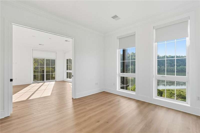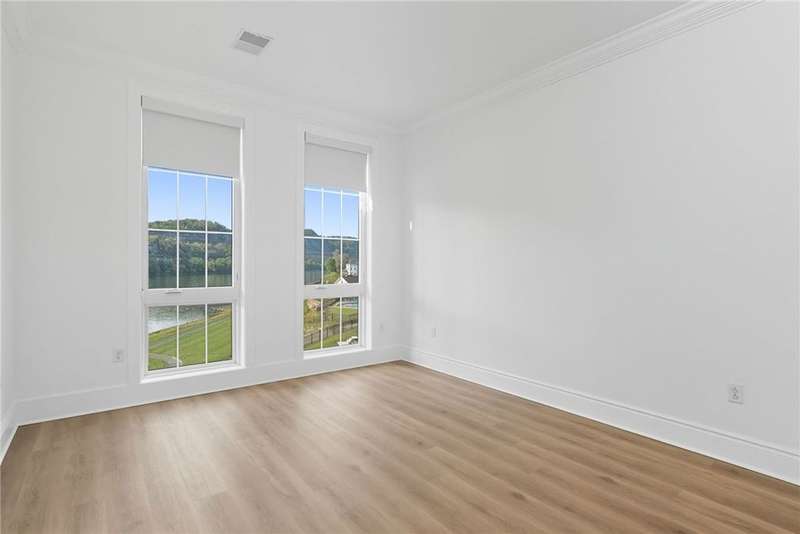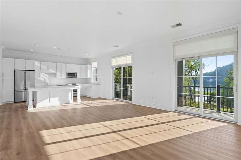 Discover The Brooks, a new resort-style condominium building along the Allegheny River within The River's Edge community. The Brooks condominiums promise an unmatched living experience with breathtaking views. This 3rd floor corner unit, spanning 1,644 sq ft, is located at the end of the south wing of the building close to an elevator. Enjoy breathtaking water vistas from the living area and bedrooms, enhanced by tall windows and the spacious covered "L" shaped balcony, perfect for enjoying evening sunsets over the water. 10-foot ceilings provide a luxurious, airy atmosphere. A beautifully designed kitchen awaits, showcasing an oversized island, stainless appliances and sleek quartz countertops. The 3rd bedroom could be dining area, office or den. Resort-style amenities include large lobby with water views, meeting rooms, fitness center, & an outdoor infinity pool. One indoor garage space and one private garage included.