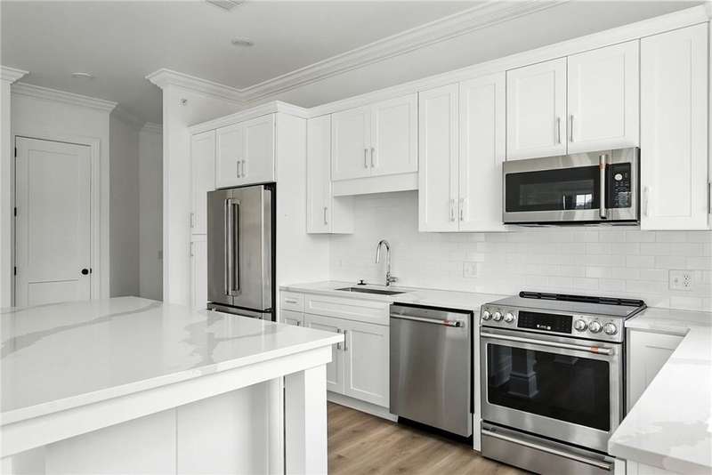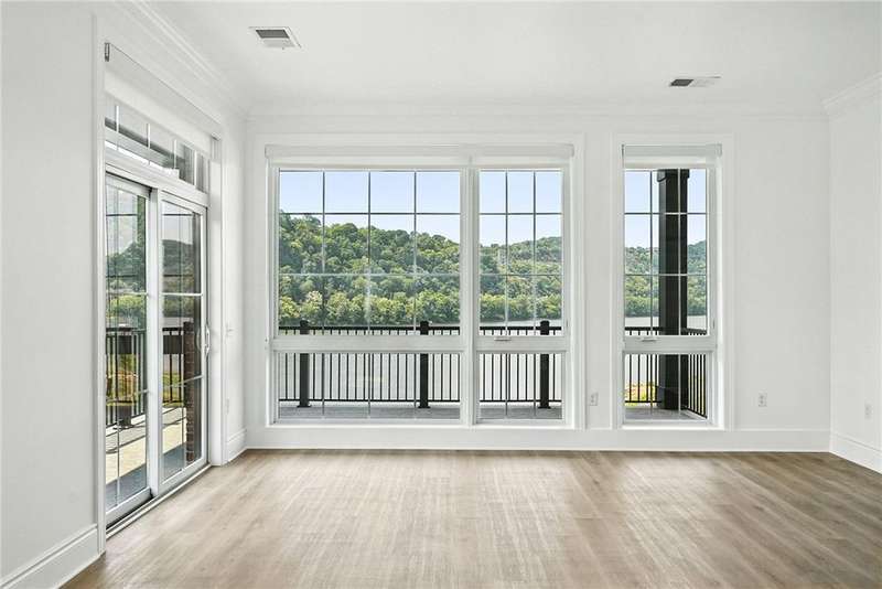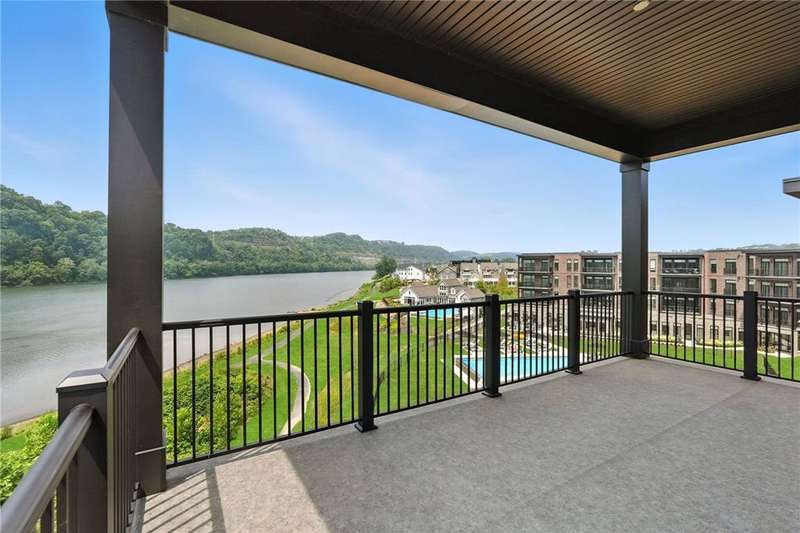 Discover The Brooks, a new resort-style condominium building along the Allegheny River within The River's Edge community. The Brooks condominiums promise an unmatched living experience with breathtaking views. This 3rd floor corner unit, spanning 1,644 sq ft, is located at the end of the south wing of the building next to the elevator. Enjoy breathtaking water vistas from the living area & bedrooms, enhanced by tall windows & the spacious covered "L" shaped balcony. A beautifully designed kitchen awaits, showcasing an oversized island, stainless appliances & sleek quartz countertops. The 3rd bedroom could be dining area, office or den. Resort-style amenities include a large lobby with water views, meeting rooms, fitness center, & an outdoor infinity pool. Indoor garage parking or private garage available for add'l cost. HOA fee includes water, sewer, trash, cable, internet, building maint/insurance. Property not yet assessed. Renderings/pictures shown for illustration purposes only.