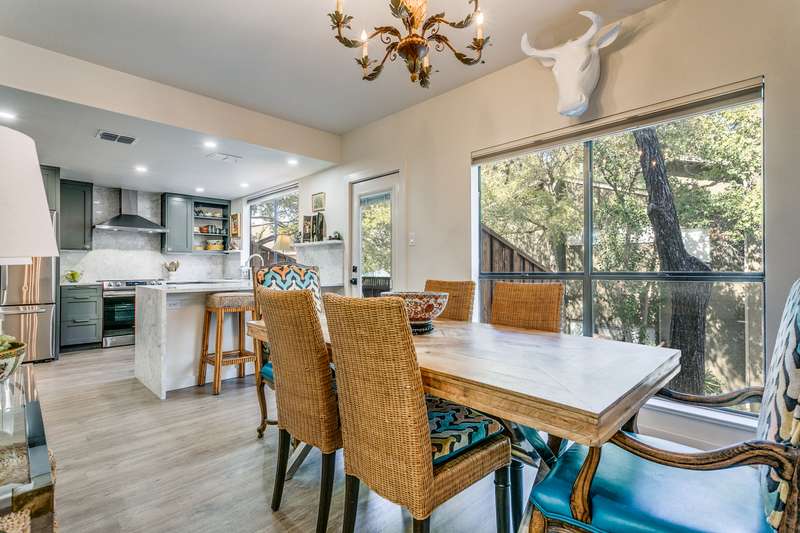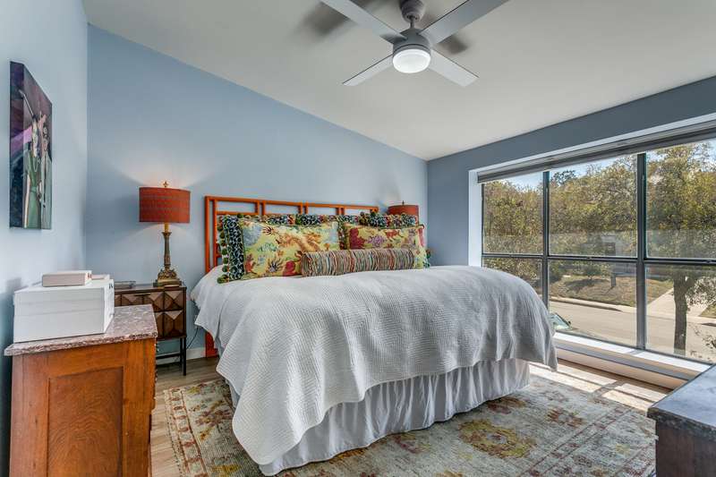 Enjoy restaurants, shopping, and Central Market at your doorstep! This stylish townhome features contemporary design elements in the "urban living" section of Alamo Heights. Designed with three levels, it's walkable, yet secluded. The residence boasts private interiors and outdoor patios, plus treetop views. Its clean lines and colorful decor create a chic backdrop for the bright, sunlit spaces. Enter on the main level (floor 2) into the living and dining rooms, separated by a wood-burning fireplace. The spacious kitchen's new countertops and custom cabinetry give an upscale vibe. Upstairs, the primary suite and guest bedrooms have lofted ceilings with oversized windows. A guest bath has a soaking tub + shower, while the larger primary bath offers a dual vanity and shower. On the basement level, a hidden bedroom suite with walk-out patio is the perfect spot to host guests. A large closet hides the in-unit washer & dryer (side-by-side), with extra storage spaces throughout. The attached one-car garage includes a JuiceBox 40amp e-charging station and storage closets. (Many residents park a second vehicle in front of their residences.) Live in your pajamas with no prying eyes-you'll love this hidden gem! - 10/26/2025 3:18:01 AM