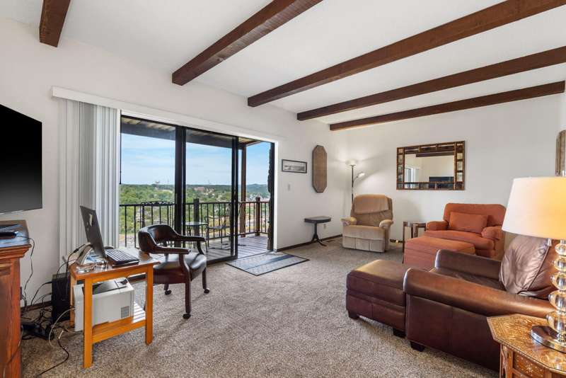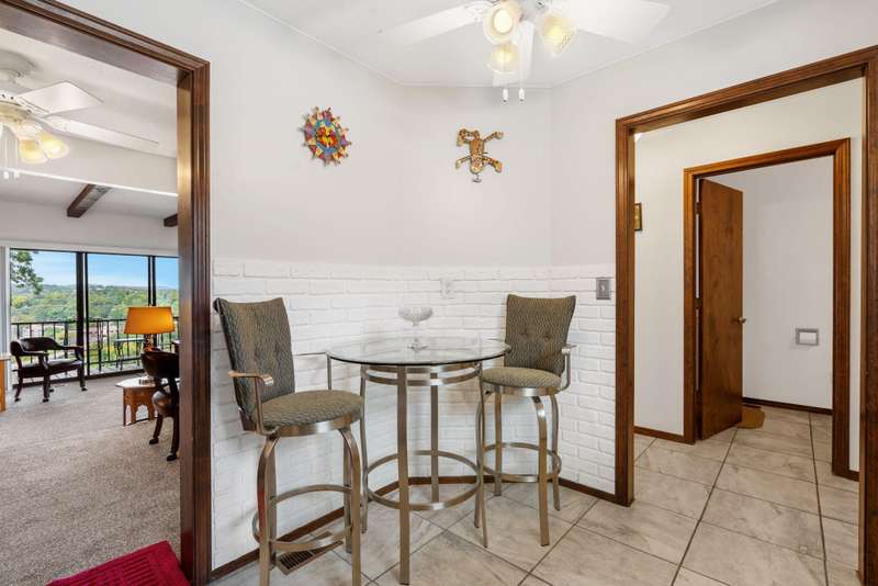 This condo is Sitting on top of the World!The View is tremendous overlooking the Branson Landing and the tremendous skyline. With the viewing deck and large sliding glass doors the view is what it is all about. This three bedroom condo is in a small development and has a two car carport. Many updates and location are two other reasons you will love this great property.