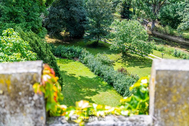Dominating the property, the 20-meter crenellated tower, a true signature of the estate, bears witness to the unique history of the place. Built to benefit from the sacred spring of 'Belle Fontaine', its turret offers a breathtaking panoramic view of the valley, the forest and the surrounding land.