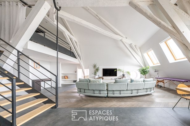 The second floor, laid out under the eaves over more than 80 sqm, unfolds like a vast space for leisure and daydreaming, where everyone can imagine their own world. A fourth bedroom with its bathroom and toilet is located there, providing an independent and intimate space.