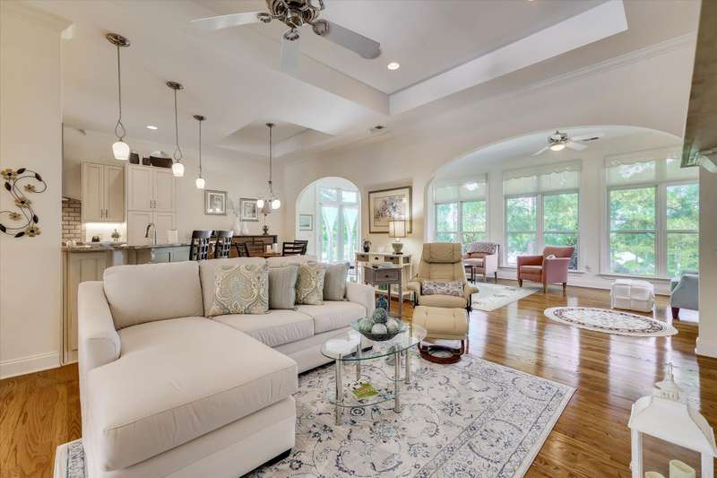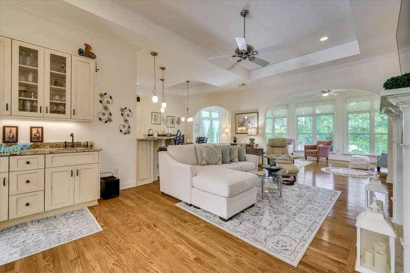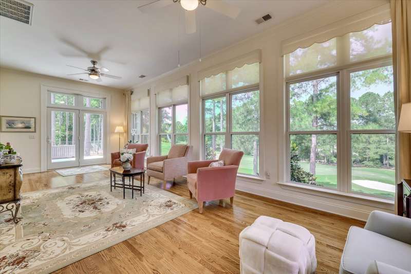 Located in Woodside Plantation and available for the first time, this custom brick one-level living home sits on the 2nd Fairway of the Cupp Course with a panoramic golf view and introduces the prestige and appeal of golf course living. Impeccably maintained, this custom 4-bedroom, 3-bathroom home offers luxurious finishes, stunning views, and a layout ideal for both entertaining and everyday comfort. The intricate front door welcomes you to the uninterrupted sightlines across the main living areas. Hardwood floors and high ceilings create a sense of elegance, while large windows allow natural light to flow. Just off the foyer, the formal dining room showcases wainscoting, a statement chandelier, and ample space to host large gatherings. The beautiful kitchen featuring Bosch appliances, custom lighting and a gas cooktop is the heart of the home and opens up to the spacious great room that features a gas fireplace flanked by numerous built-ins and a stylish wet bar with matching cabinetry—perfect for entertaining. The open-concept layout flows effortlessly into the kitchen and breakfast area, while still maintaining subtle definition between spaces. The showstopper of the home is the sunroom that stretches along the back of the house, offering sweeping views of golf and is the perfect room for reading, conversation or overflow when entertaining. The primary suite is a peaceful retreat, complete with tall ceilings, abundant natural light, and tranquil views of the course. The spa-like bathroom features dual vanities, a supersized, luxurious tile shower with numerous showerheads, and a dream walk-in closet with a center island, sitting area, and built-in systems for optimal storage. Two additional guest bedrooms on the main level offer high ceilings, and plenty of light as one has floor to ceiling windows while the other offers a large Palladian-style window. Guest rooms share a large, well-appointed hall bath. The laundry room offers extra cabinets for storage, a sink, ample hanging space and a folding station. A private staircase leads to the fourth bedroom, which features an en-suite bathroom, closet, and a versatile bonus area—ideal for a home office, gym, or playroom. Spray-foam insulation in the attic reduces the temperature up to 35 degrees, offers energy efficiency, moisture control, and air sealing. The 3-car garage is super impressive with abundant storage, a service door, three ceiling fans, and a mini-split HVAC for climate control. A brand new patio double door was just installed with remote blinds. It opens to exceptional outdoor living with a large rear porch, SunSetter awning, and expansive views of the fairway. A plumbed gas line for grilling, stamped concrete walkway, and lower patio area complete the space—ideal for entertaining or peaceful evenings at home. Located in Aiken's premier gated community of Woodside, this home offers access to a world-class lifestyle with optional memberships to two private country clubs, featuring golf, tennis, swimming, dining, and social events. Additional features include a new roof in 2024, a well for irrigation, a tankless water heater, a stamped concrete driveway and a dehumidifier in the crawl space with a digital reader.