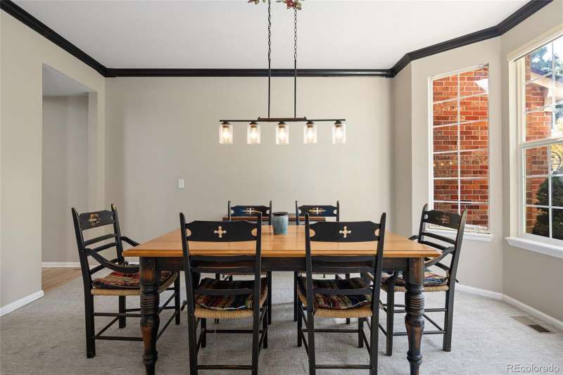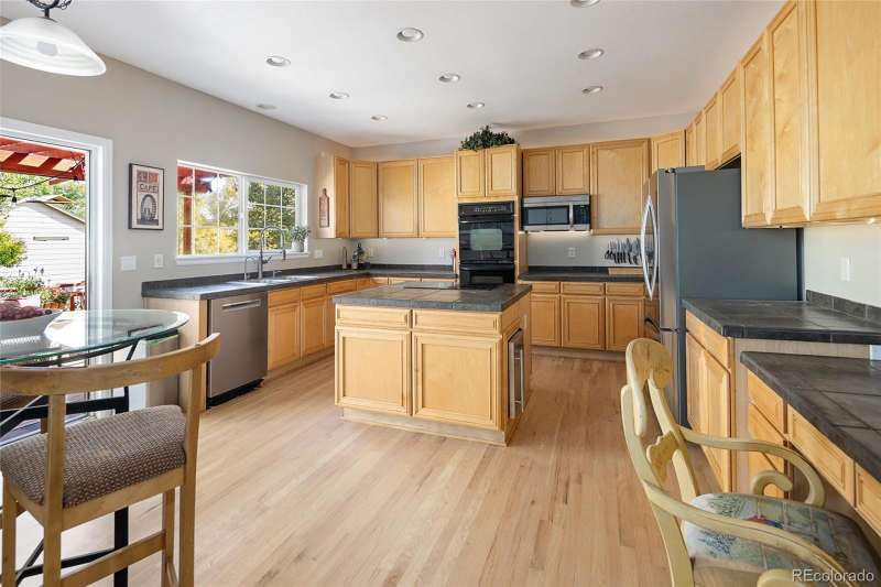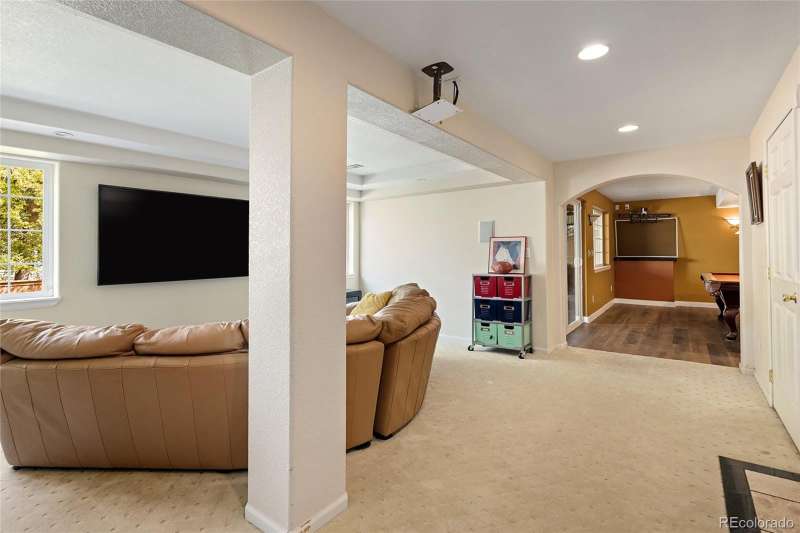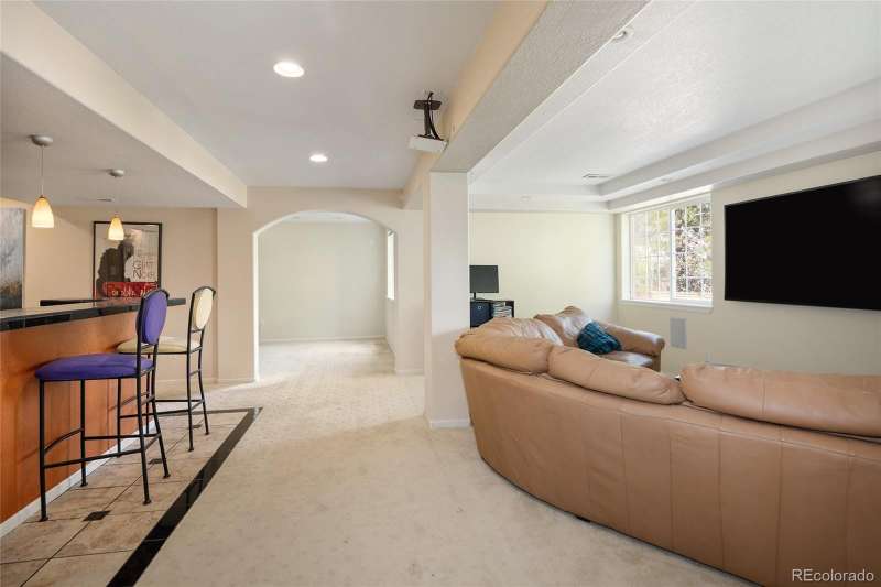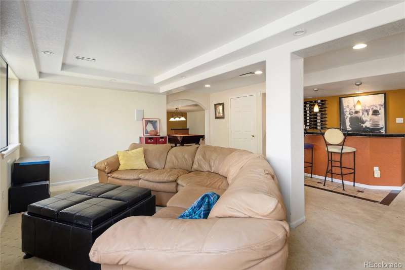 The best Highlands Ranch has to offer. The popular Richmond James Model is the most popular model and highly sought after. Brisbane Way is a gorgeous street that is out of the way and interior to the East Ridge Terrace neighborhood. The house has a wonderful floor plan, great flow, high ceilings and large rooms. The Family room is two stories with large arched windows that frame the fireplace. It is open to the kitchen and eating area. The deck off the kitchen is an Trex material and there is a pergola in the yard. The home has a Primary Suite and 3 additional bedrooms up with a hall bath. The basement is complete with a Rec Room, Game Room, Pool Table included, Home Office, a welcoming bar area with sink and bar fridge, Bedroom and Bath. There are sliders to a walk out covered patio. Enjoy the 4 Recreation Centers, Pools, Tennis Courts, Fitness Centers and Walking Trails.