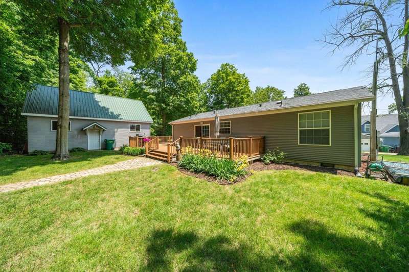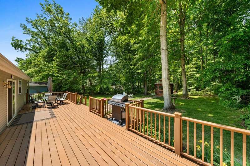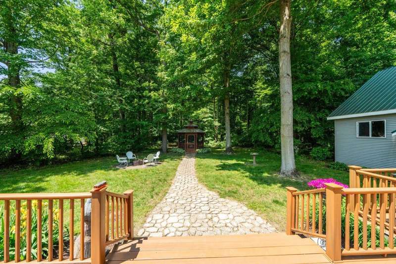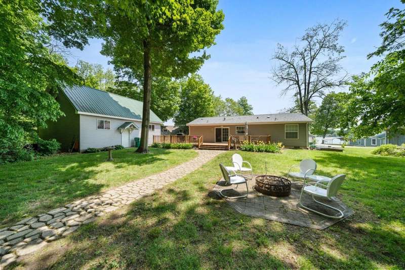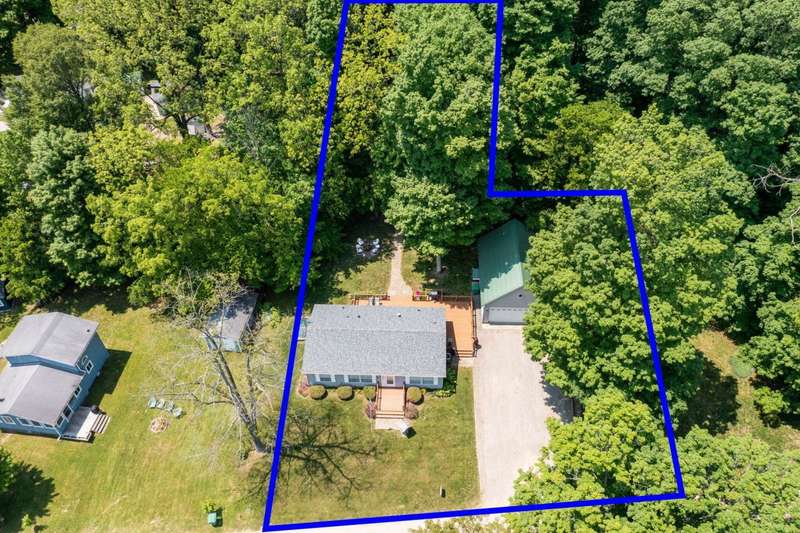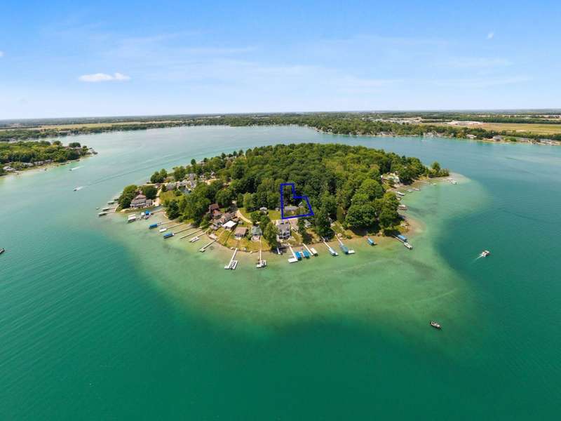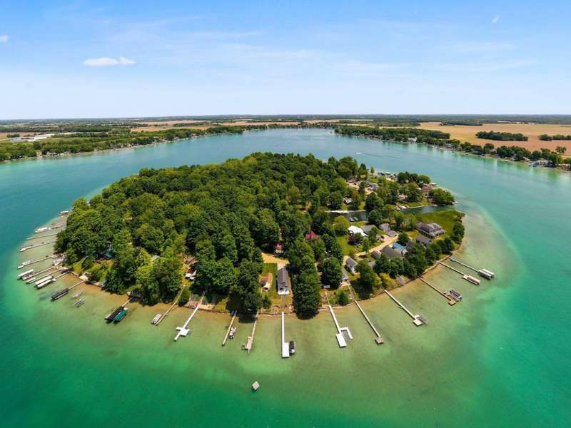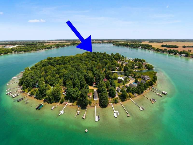 EXPERIENCE THE RELAXED AND TRANQUIL LIFESTYLE ON IDYLLIC DIAMOND ISLE. A short ferry boat trip from the mainland transports you to this well maintained home sitting on 3 lots nestled in the woods on the island. The home features a large living room, kitchen with island seating, 3 bedrooms and 2 baths and a laundry room. There is a large 2 sided deck plus a gazebo in the backyard and a 24x32 pole barn with an upper storage area. The home sits across the road but has access to an easement to slip down for swimming in the crystal clear waters of Diamond Lake. Diamond Lake is 1020 acres only 45 minutes to Notre Dame and 2 hours from Chicago.