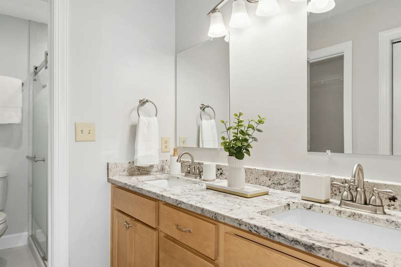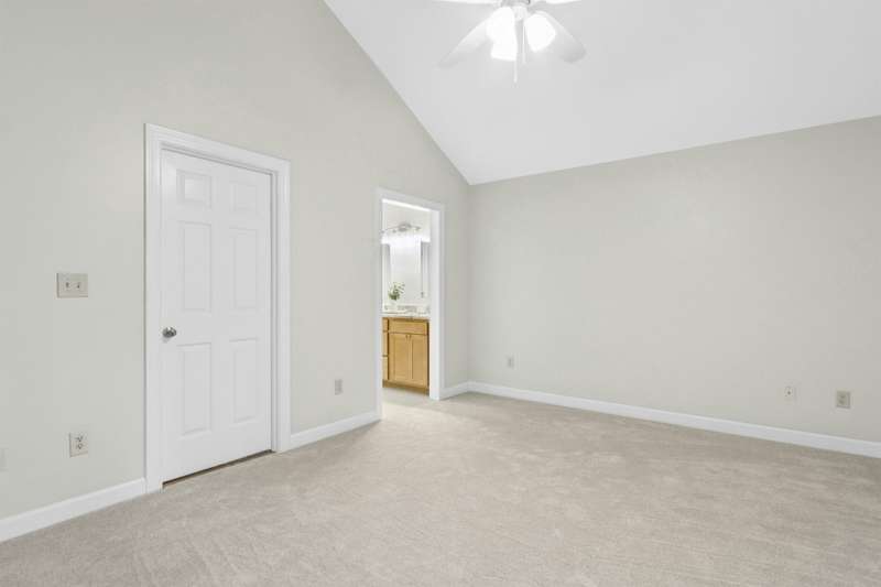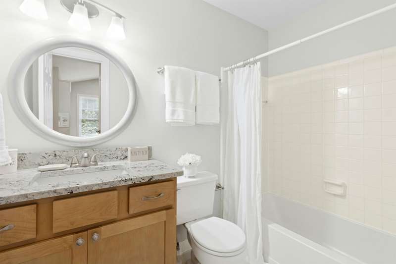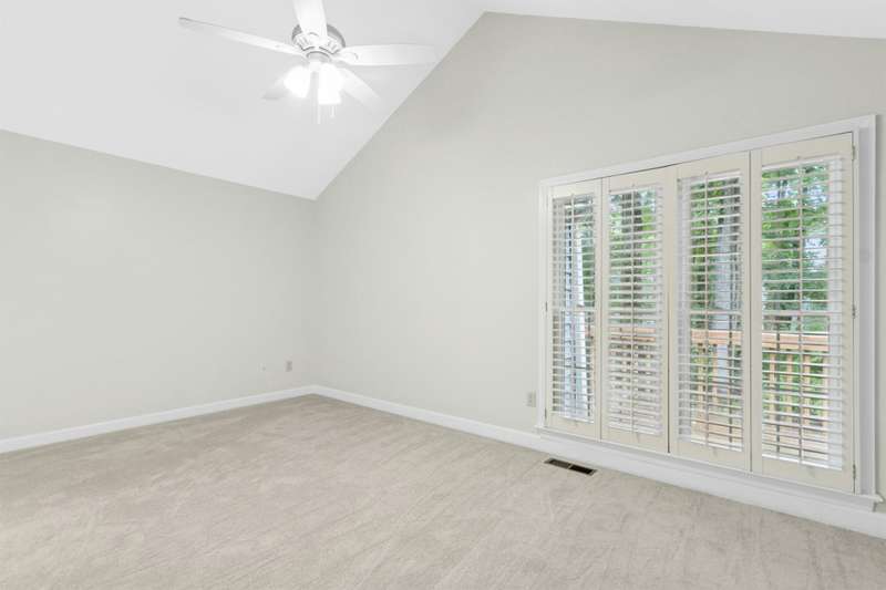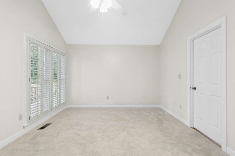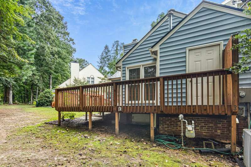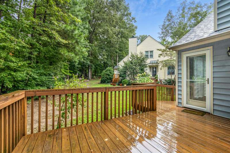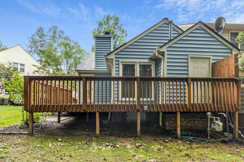 Enjoy easy living in this beautifully updated one level 2-bedroom, 2-bath end-unit townhouse. Sunlight fills the vaulted living and dining area, where freshly refinished hardwood floors, a cozy fireplace, and custom built-ins create a warm, inviting space. The kitchen's brand-new cabinets and countertops make cooking a pleasure. Your primary suite feels like a retreat with vaulted ceilings, plantation shutters, new carpet, a large walk-in closet, and a spa-inspired bath with a sleek tile shower and new vanity. The second bedroom also features new carpet and plantation shutters, along with an updated full bath. Step outside to a generous, wheelchair-accessible deck?perfect for morning coffee or evening gatherings. All of this, ready for you to move right in.