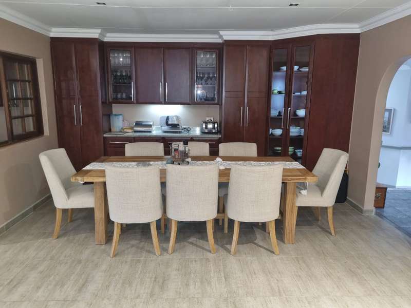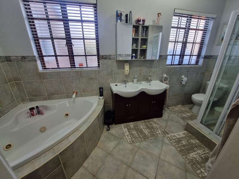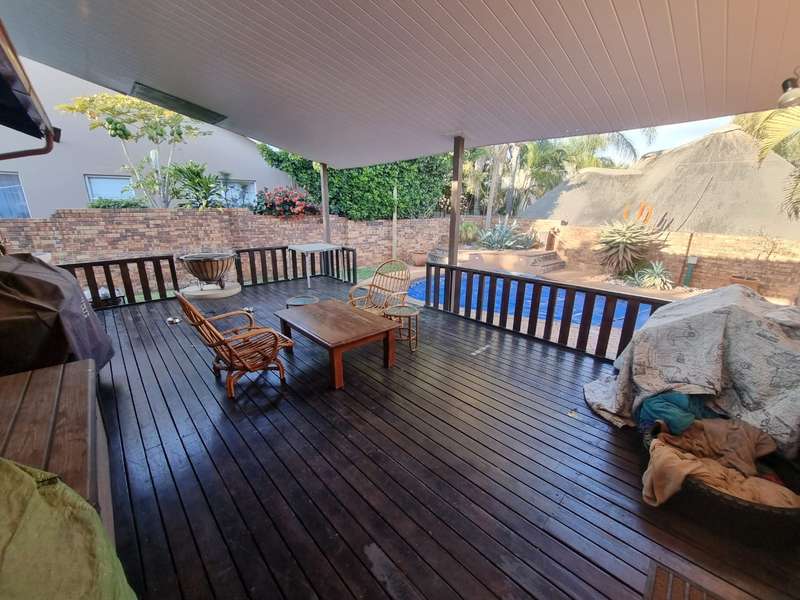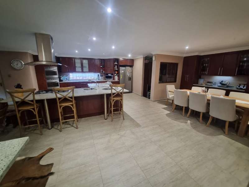 Welcome to the epitome of modern living in Heuwelsig, Bo Dorp, Rustenburg's most coveted locale. Behold this luxurious 4-bedroom haven, boasting 3 exquisitely designed bathrooms that redefine elegance. A culinary enthusiast's dream awaits in the open plan kitchen with an abundance of sleek cupboards, granite tops,5 plate gas hob and double eye level oven. Seamlessly accompanied by a separate scullery/laundry. A dining space beckons family gatherings and unforgettable feasts. Entertainment knows no bounds in the separate TV room, where cherished memories come to life. Need to focus? Escape to the capacious study room, a private oasis for productivity. Pamper yourself in the three bedrooms, each adorned with its own en-suite bathroom, while the main bedroom graciously offers a walk-in closet fit for royalty. All security is in place with , safety gates, electric fence, safety doors, burglar bars and alarm system. Two back-up water tanks in case of emergency The enchanting backyard entices with a sparkling pool, ideal for warm summer days, and a splendid wooden deck to unwind upon. Embrace the allure of contemporary living at its finest - an irresistible invitation for discerning buyers like you. Newly installed 10KVA Back-up solar system. Don't miss the chance to make this exquisite home yours!