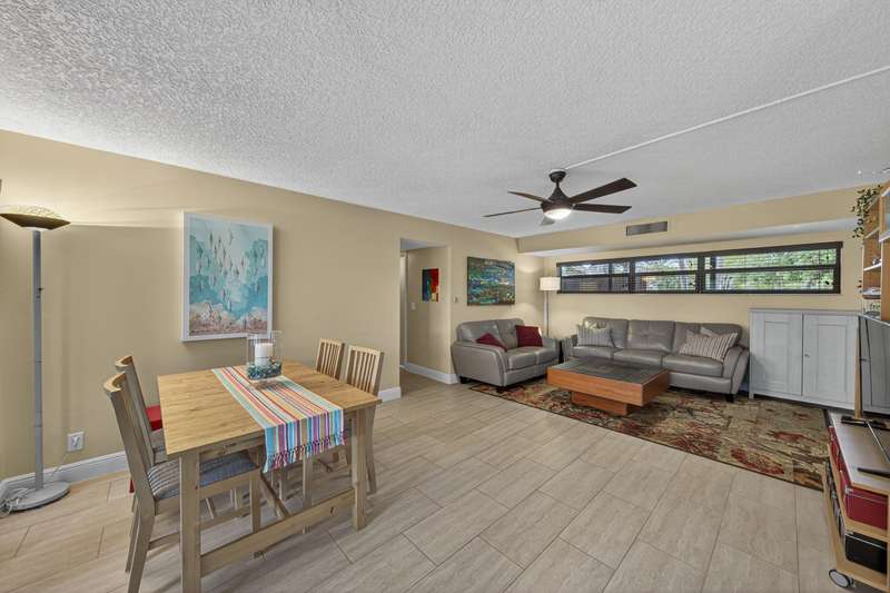 EAST BOCA!!! Spacious 2 bedroom 2 bath condo with 1,286 sq ft of living area. Large rooms with an abundance of natural light. Hurricane Impact windows, new roof, updated kitchen and baths, brand new LG washer and dryer, brand new hot water heater, porcelain tile flooring throughout, and a beautiful screened patio offering a serene view of the lush greenery and elegant banyan trees. Close to pool. This is an all age community and your beloved pets are allowed (2 under 25 lbs). The building has passed the 30 year structural integrity inspection. No lease for the first 2 years. Plenty of guest parking, community pool, BBQ area, pickleball/tennis court, and clubhouse. Minutes from the beautiful beaches, Mizner Park & the trendy Atlantic Ave.