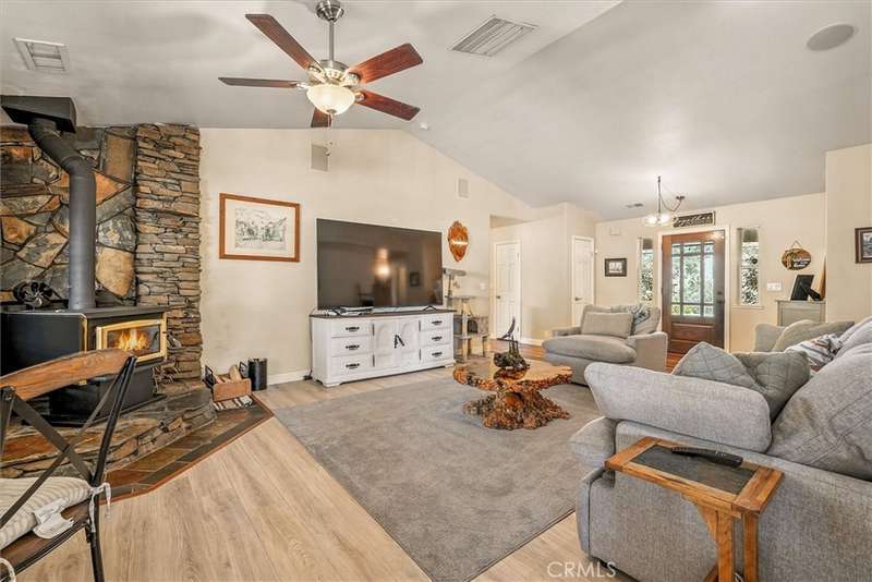 This is a must see! This custom-built home on 2.5 acres tucked into the Sierra Nevada foothills offers peace and quiet at the end of a cul-de-sac. As you step foot into this lovely home, you will notice how open yet cozy it is. The Brazilian acacia flooring and the German Beechwood kitchen cabinets, linen cabinets and den bookcase lends a polished and warm feel to the home. The kitchen features granite countertops, recessed lighting, tray ceiling and walk in pantry. The master suite is roomy and comfortable with French doors leading out to a gazebo covered patio and a large hot tub. The other 2 bedrooms are en suites with both having their own full bathroom. The bonus room features barn doors for privacy and can be used as an office, den, work out space or an extra bedroom. To add to all these amazing features, the home also boasts a covered back patio, a large shop, a pole barn and sheds to store your extra items. To top it off the home also offers owned solar and 2 year Roof Certification! This one won't last long! Make your appointment today!