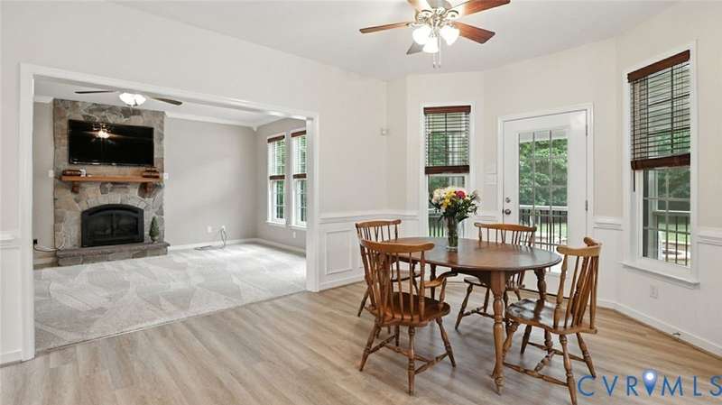 Nestled on a serene, private, cul-de-sac, this exquisite home offers a perfect blend of tranquility and luxury situated on an expansive 5.55 acre beautifully landscaped lot. This home provides a rare sense of seclusion for those seeking privacy yet conveniently located near life's necessities. With 4 bedrooms (rec room could be use as 5th bedroom) & 3 1/2 baths, this offers both a spacious and well-designed open floorplan. The interior boasts elegance and functionality featuring modern amenities and tasteful finishes throughout. The generously size bedrooms offer comfort, and flexibility. The primary suite in particular provides a retreat within the home with a private ensuite and ample space all located on the first level. Step out to the screened porch and custom patio to overlook a large rear yard, and extensive wooded views that provide endless possibilities for outdoor activities and relaxation. Whether you're entertaining guests or enjoying a quiet moment, this home offers a rare combination of space, privacy, and modern living. Embrace the opportunity to make this exceptional residence your home. This community offers social events to include automatic memberships to the pool, clubhouse and playground. This home has tons of extras. New roof in summer 2024. Home has a built-in whole house Generac generator. Loads of storage space with 3 car garage. Shed with electricity. Gutter with Leaf Guards. Gas FP with fan. Screen porch with composite materials. Conditioned crawl space. Driveway sealed in fall of '24. Exterior just power washed. Electric fence in front and rear yards. Custom shades.