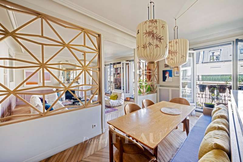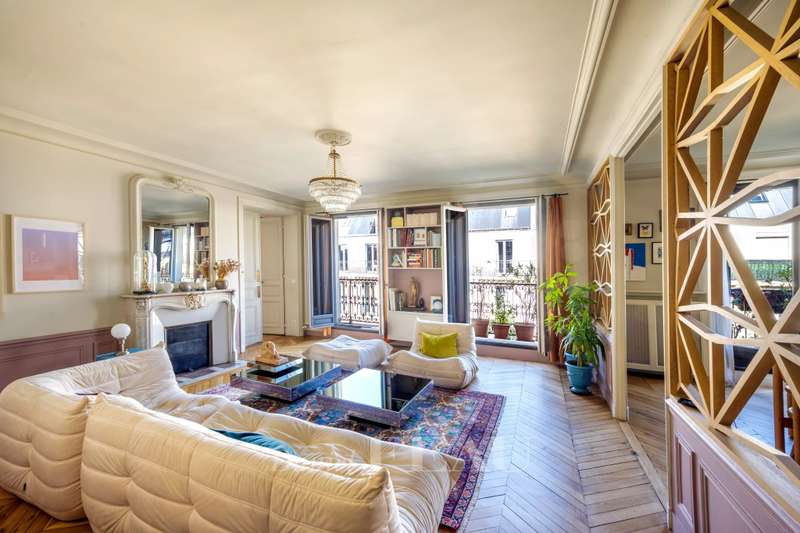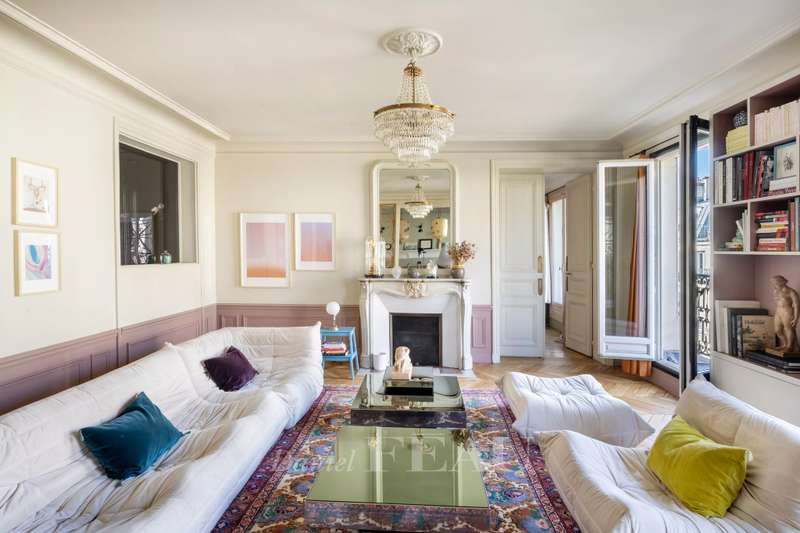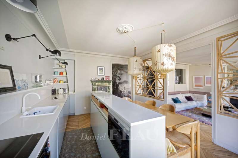 Place José Rizal. This bright family apartment benefiting from a continuous balcony enjoying an open view is on the 5th floor of a fine early 19th building with a lift. It includes a living/reception room, a dining room with an open-plan kitchen, a master suite with a shower room and dressing room, two further bedrooms and a bathroom. With a cellar.