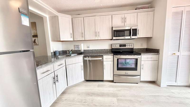 This gorgeous villa is available totally turnkey!! Just bring your toothbrush! The open concept and vaulted ceilings is perfect for entertaining and has a large principal suite with gigantic walk in closet and en suite bathroom. Luxury vinyl flooring has been laid throughout the entire house and a remodeled fresh modern kitchen with stainless appliances. This property also boasts open patios in the front and the back! One fantastic bonus is having the rare one car garage - you can never have enough storage!