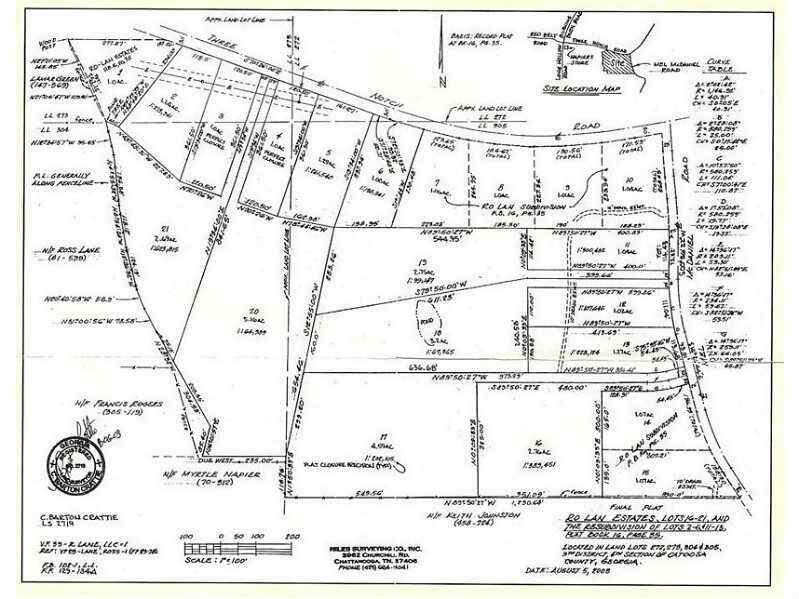 Estates at Three Notch Lot 20 of 21. Last large lot left. The Estates at Three Notch consist of 21 lots on 38 Acres of beautiful ridgetop land on Peavine Ridge near Fort Oglethorpe, Highway 2A, Boynton, Chickamauga, & Rock Springs with many views of Lookout Mountain. Estate Lots range from 15 one acre plus home site lots and 6 larger Estate Lots ranging from 2.69 to 5.16 acres. Minutes to I-75 an easy commute to the Chattanooga Metro at intersection of 3 Notch Road & Mel McDaniel Road. Plated with the county as building lots 1-21 "RO Lan Estates", ready to build with County approvals in place. 3 miles from the newest schools built in the county.