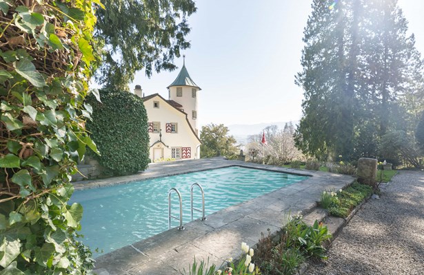 Set high above the Rhine Valley where the Appenzell Alps meet Lake Constance, this enchanting property—first recorded in 1482—offers timeless elegance and rare tranquility. Nestled among ancient trees and lush gardens, the romantic estate known as Schlössli Bergsteig features a striking round tower, a classic mansard roof, and breathtaking views stretching from the Bodensee to the peaks of the Bregenzerwald. Located just outside St. Margrethen, the castle-like residence lies in a private park setting with a heated outdoor pool and the possibility to expand via a designated building zone. Surrounded by vineyards, forests, and historic estates, it embodies the grandeur of its noble past while offering modern-day comfort and serenity. Essential amenities such as markets, bakeries, cafés, and even a thermal spa are just minutes away. Whether enjoying watersports on Lake Constance, hiking through the rolling Appenzell hills, or skiing in nearby Heiden, this region blends nature, culture, and recreation in perfect harmony. With quick access to St. Gallen, Bregenz, and Vaduz—and just a short drive from Altenrhein Airport—this fairytale retreat is as well connected as it is secluded.