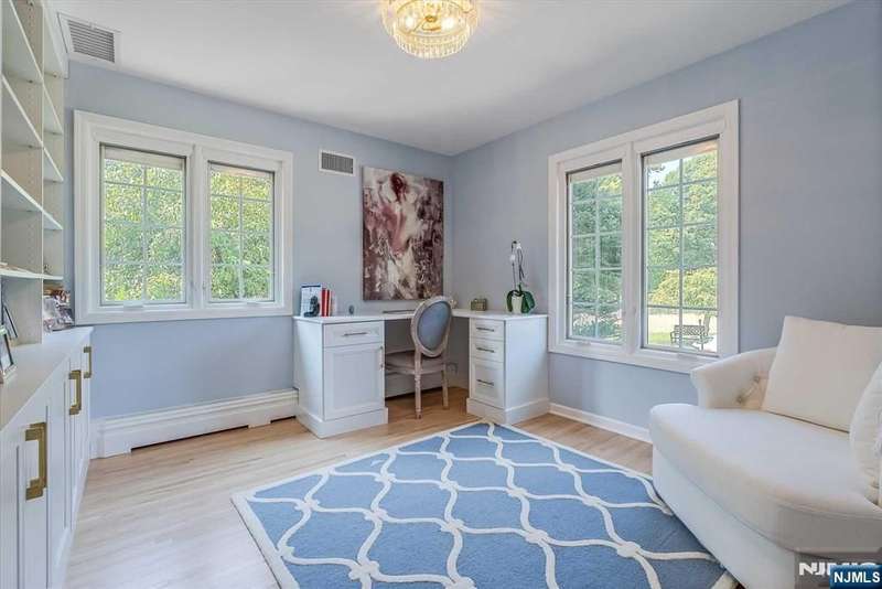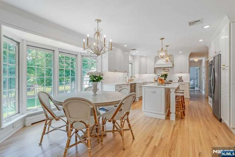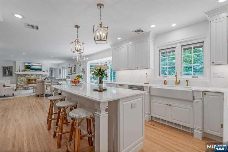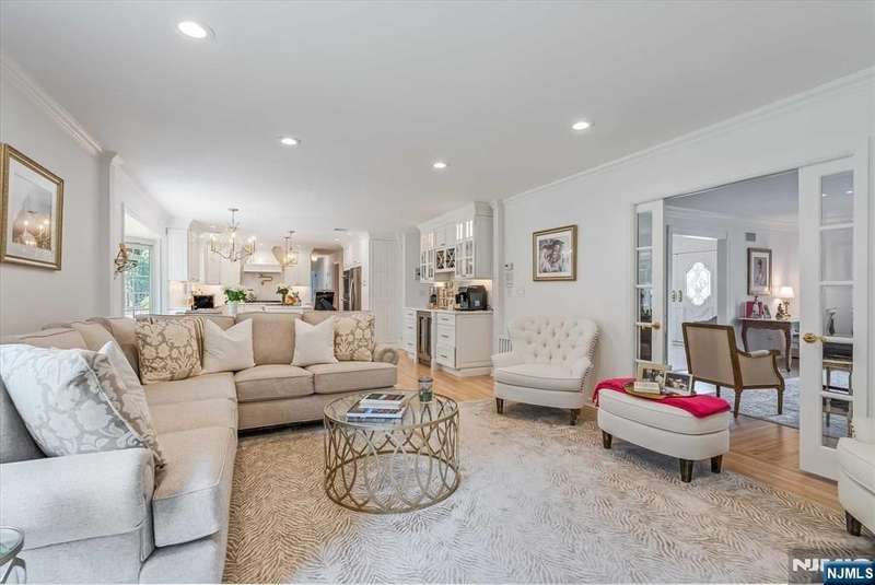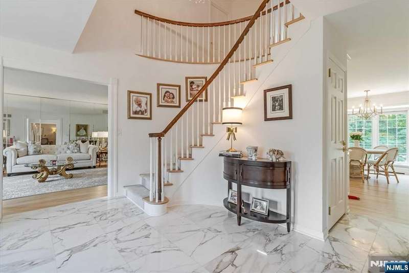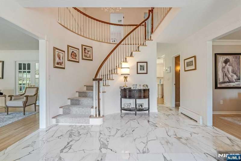 Exquisite 5BR home is set on a picturesque acre of property offers a perfect blend of comfort & tranquility. The residence features a large open-concept liv area w/an abundant of natural light. Gourmet eik equipped w/modern appls & a generous island, opens to FR w/gas fpl & sliders to stone patio. 2 Mbrs for you to choose from. Primary 1st flr master suite is a serene retreat, complete w/a luxurious en-suite bth & a wlk-in closet. Additional BRs are well-sized. The property includes beautifully landscaped gardens, a priv yard w/an acre of space for outdoor activities & a covered awning for relaxation. This home provides a perfect sanctuary for both everyday living & special occasions. Additional features include a home office, oversized laundry rm, almost 17000 sq ft of fin bsmt w/fbth, heated oversized 2 car gar, circular brick paver drvwy, Pella windows, home generator, u/g sprinklers, c/alarm, 2 zone c/air. Must see to appreciate!