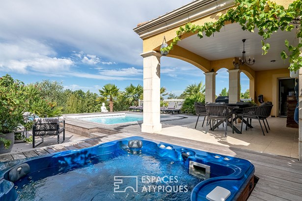 Provence invites itself to Occitan land, through this magnificent opulent villa of which Cezanne could easily have painted the living picture and open to the omnipresent surrounding nature, lavender and cicadas in addition: