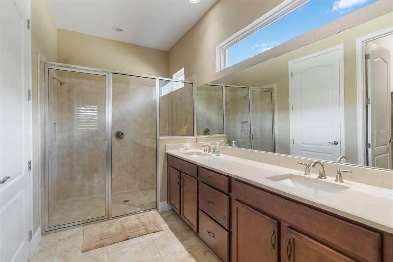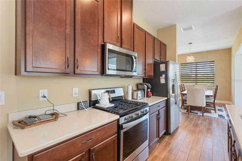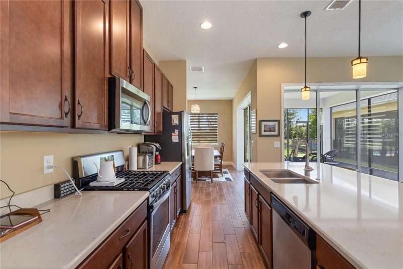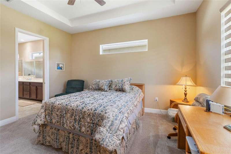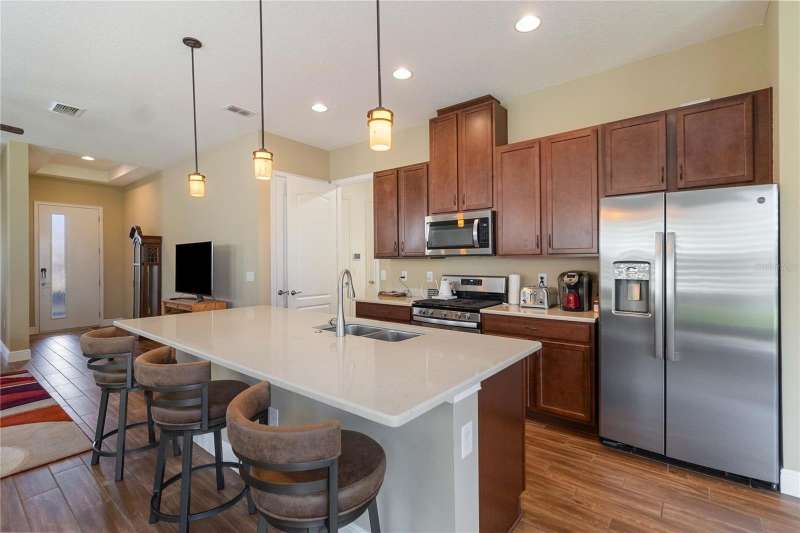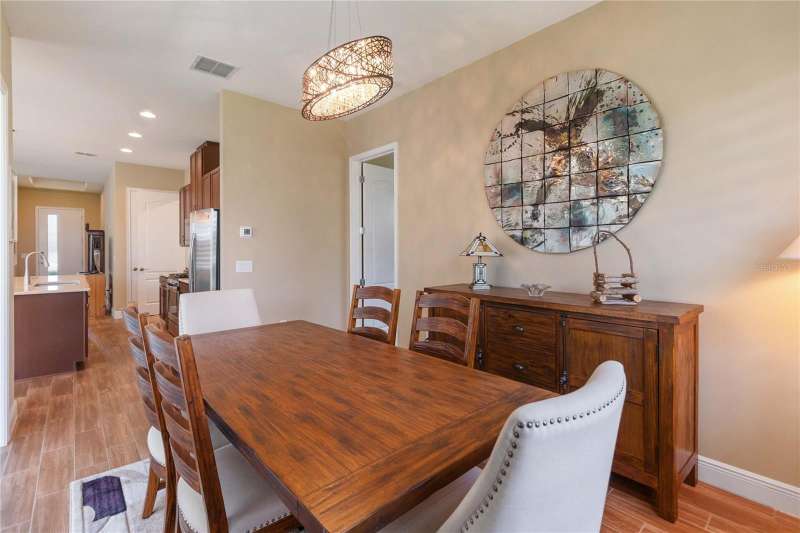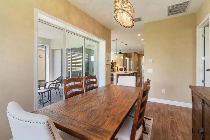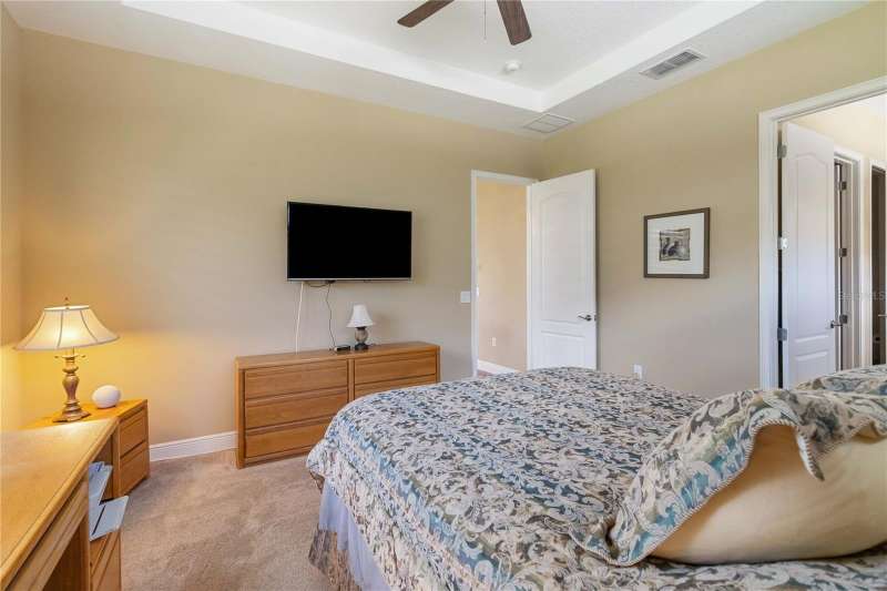 Meticulously kept Anna Maria floor plan located in the well sought after Gated 55+ Active Del Webb Twin Lakes community. Property featuring Custom painting and stunning staggered Plank tile flooring throughout. Custom 42" kitchen Cabinets, Island features custom edged Quartz countertop, pantry, custom pendant lights, and chandelier in the formal dining area/Den/Office. The living room features plank flooring and zebra custom shades. Sliding glass doors lead to screened in Lanai with custom ceiling fan & light to enjoy your morning coffee. Den/Office area features Sliding glass doors. Master bedroom with custom zebra blinds, trey ceiling, and ceiling fan. The master bedroom bathroom features custom glass doors, diamond shaped flooring in the shower, and custom tiling. Double vanity edged Quartz countertops. Large, carpeted walk-in closet. Laundry room tailored with upgraded upper cabinets as well as lower cabinets for great storage, ceramic tile flooring, and beautiful quartz countertops. Guest bedroom ceiling fan and custom zebra shades. The Garage has built-in Storage closets. Amenities include a Resort style pool, Lap Pool and 3rd pool on the carriage house side, 20,000 square foot Gorgeous Clubhouse, State of the art Fitness Center, Flex room, Tennis Courts, Putting Green, Walking Trails, Pickle Ball Court, Fishing, and Pontoon Boats and Jon boat to use on Live Oak Lake! The community has many active and socializing activities. View today!