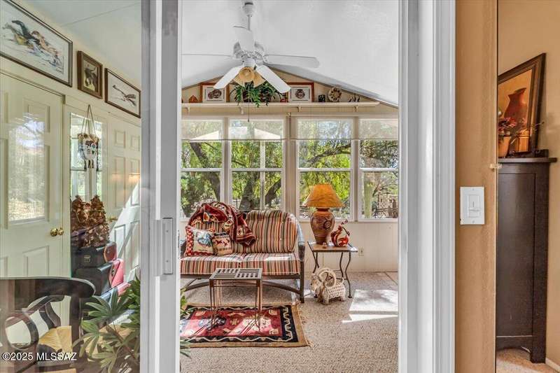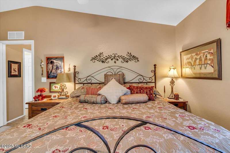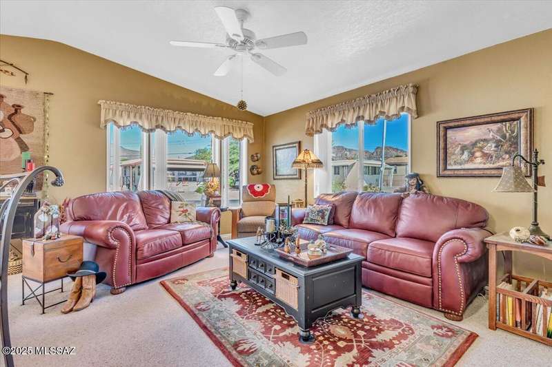 Mountain views that serve as a stunning backdrop. The heart of the home is a bright kitchen featuring modern granite countertops and a full suite of Stainless Steel appliances. Adjacent to the kitchen, you'll find a cozy living space designed for comfort and relaxation.The primary bedroom suite is a true sanctuary, complete with a unique, private bonus room that is both heated and cooled and includes ample storage. Step outside to your backyard oasis with no rear neighbors, desert landscaping that complements the natural surroundings. HOA includes 1 unlimited Free Golf, 2 pools, spa, pickleball, tennis and more.