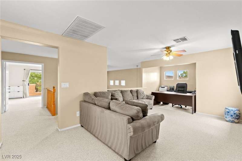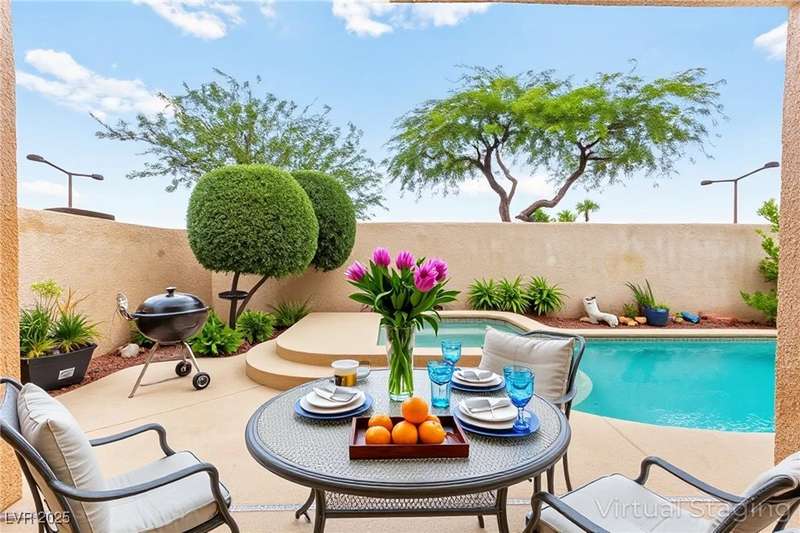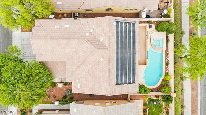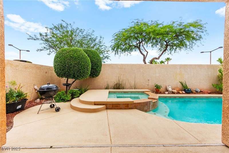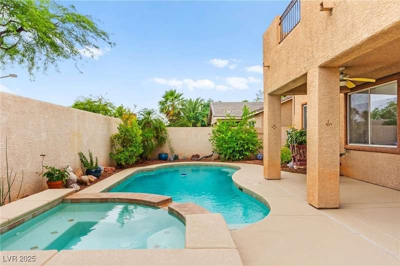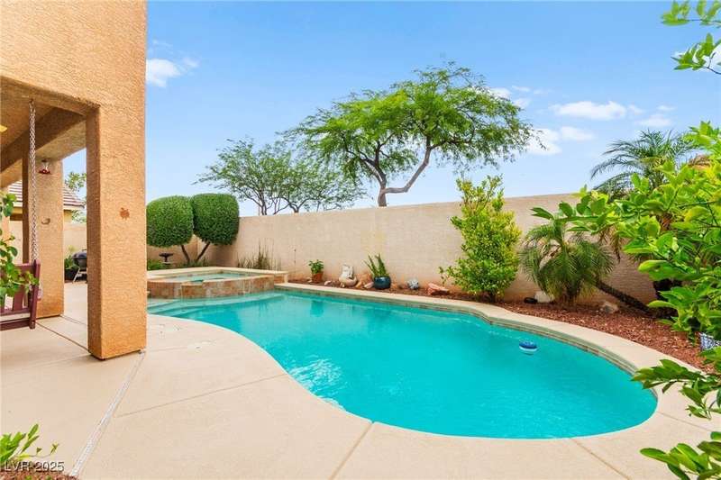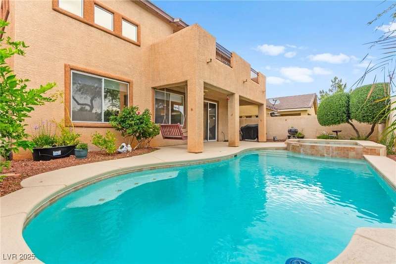 Welcome to this beautiful two-story home located in the heart of Summerlin, one of Las Vegas’ most sought-after communities! This spacious 4-bedroom, 3-bath home offers the perfect blend of comfort and functionality, featuring a convenient downstairs bedroom ideal for guests, multi-gen living, or a home office. Step inside to soaring ceilings, abundant natural light, and an open-concept layout perfect for entertaining. The kitchen overlooks the family room and backyard oasis, complete with a sparkling pool and spa—perfect for cooling off on hot summer days or relaxing under the stars.Enjoy the privacy of a fully landscaped backyard and the convenience of being just minutes from parks, shopping, dining, and all that Summerlin has to offer. Homes like this in Summerlin don’t last, schedule your showing today!