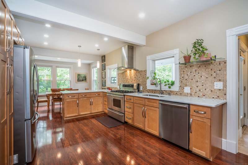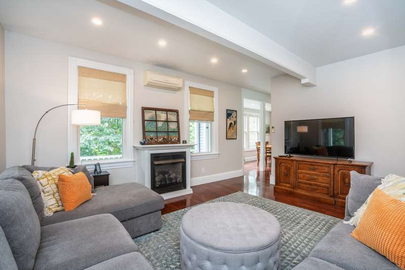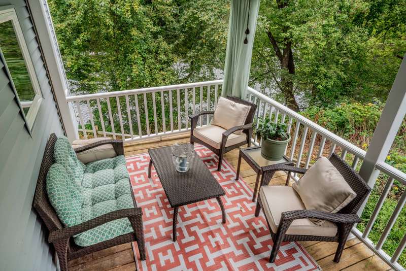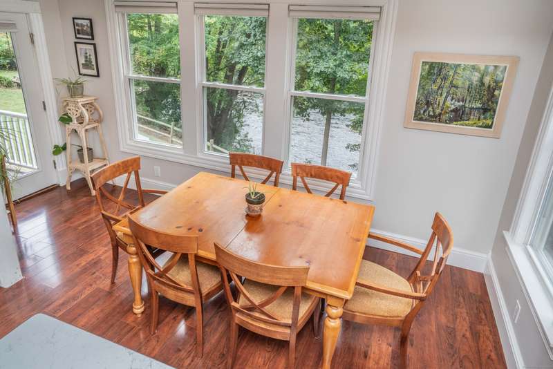 Vacation at home year round with fantastic views, a peaceful setting and amazing tranquility. Nestled high on the bank of the Farmington River, this exceptional townhome has so much to offer. Enjoy 4 levels of remodeled and updated living space while enjoying water views from every room. Your main level is a dream with large windows, 9 foot ceilings, spacious living spaces and easy access to the wrap around cover from porch and the covered back deck. The living room is spacious and bright with plenty of room to relax and unwind. Sit by your propane fireplace in the cooler months and watch the river pass by. Enjoy a fully updated kitchen/dining area which presents stainless steel appliances, quartz counters, plenty of cabinet space, recess lighting, a vented hood, breakfast bar and unmatched views of the river. A half bath and a mudroom/laundry room complete the main level. The second level features two bedrooms adjoined by a Jack & Jill bathroom, and each room has a great walk in close