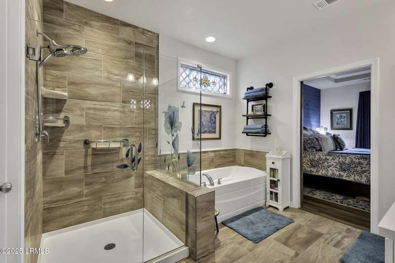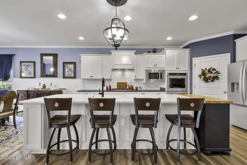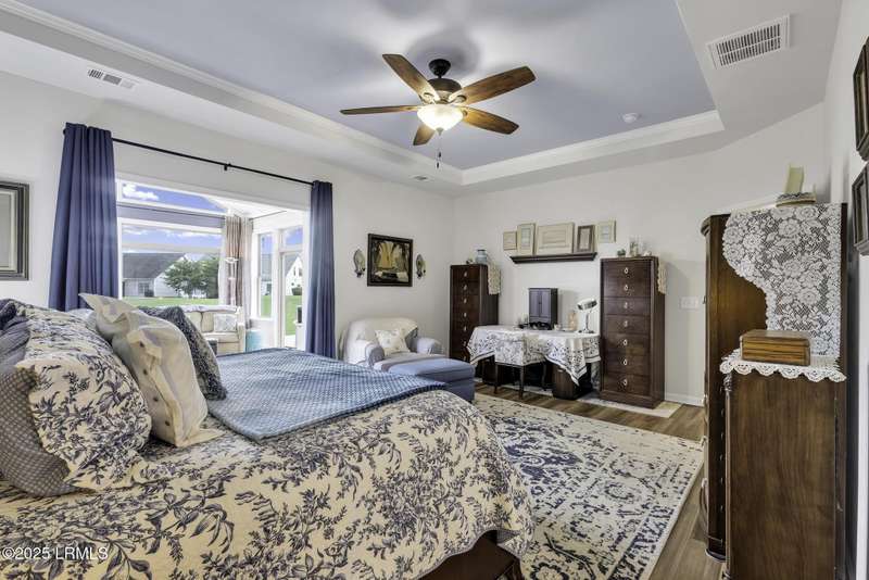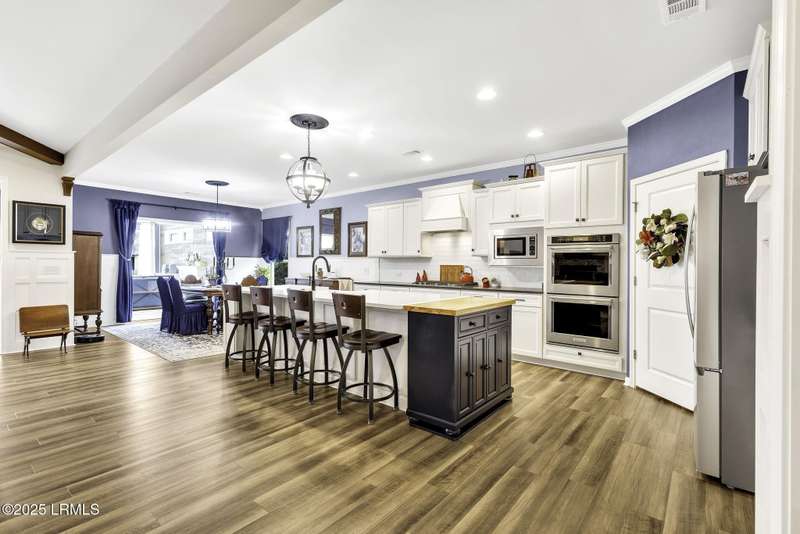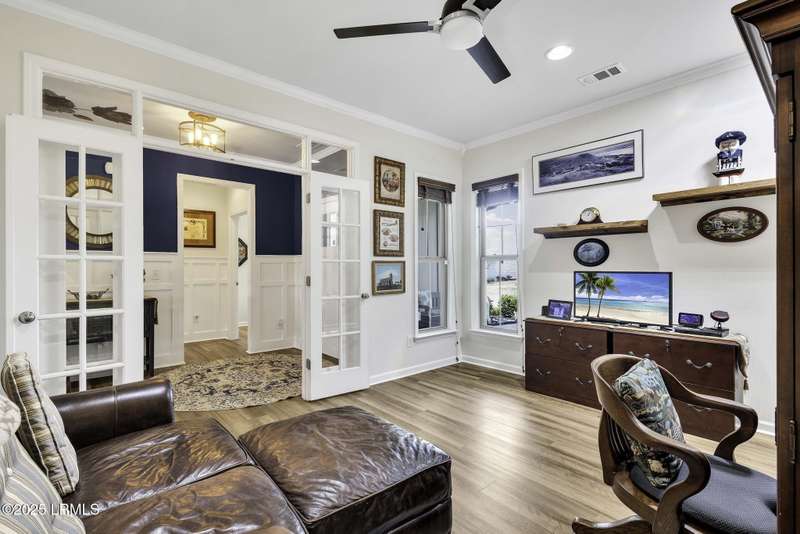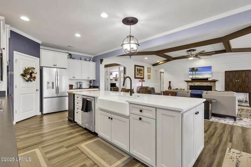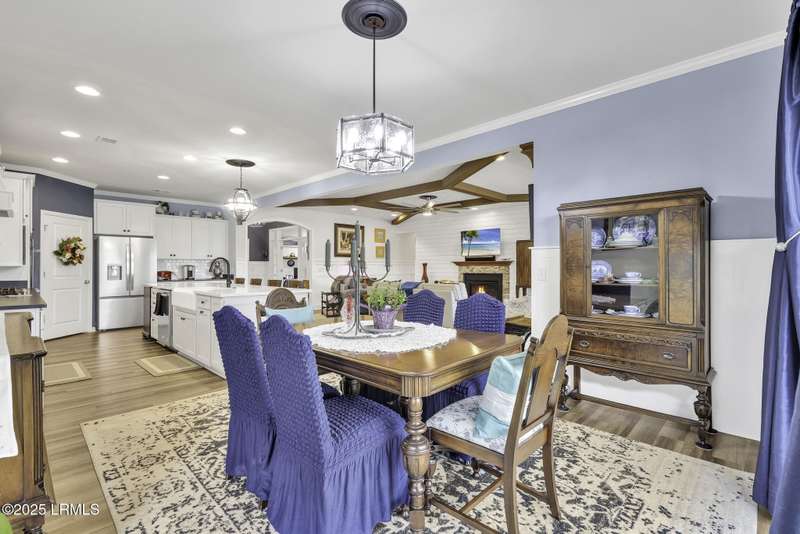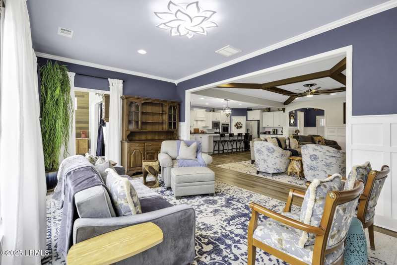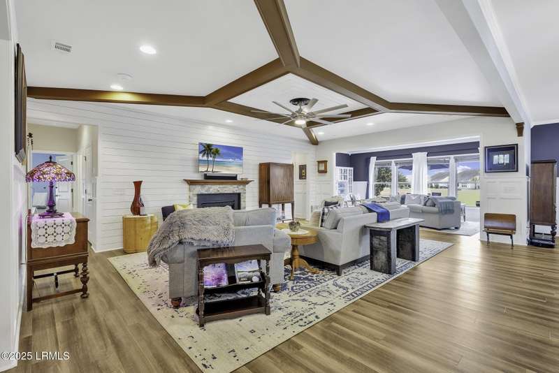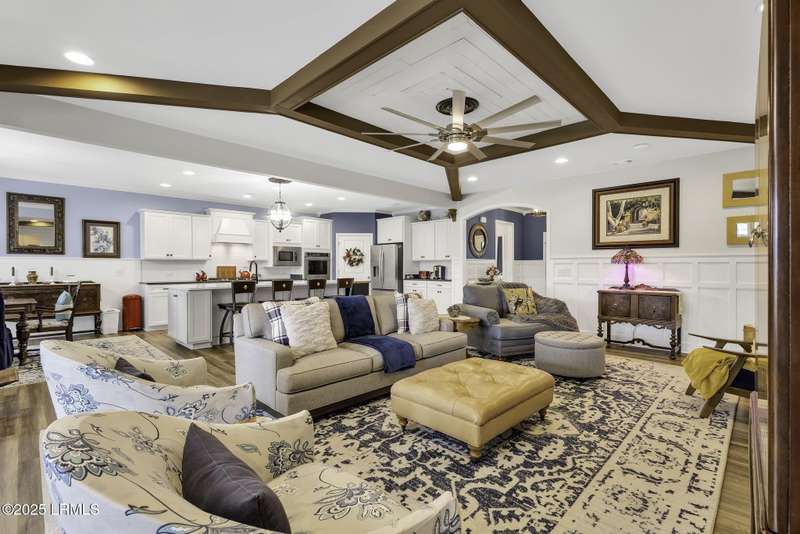Exquisitely updated, spacious, 3 Bed 3 Bath approx. 3,286 sq ft Dunwoody Way with TWO sun filled All Season Rooms, each with their own Mini Splits, plus a Carolina Room with built in display/storage. Large L/Room boasts striking timber beam ceiling, shiplap wall, Nat Gas fireplace. Entertainers delight Eat In Kitchen with Quartz C/tops, large Island, Farmhouse sink, SS Apps, Walk In Pantry. Other features: Epoxy floored 2 Car & Golf Cart Garage, Walk Up Attic, separate Office/Den, designer lighting, tons of storage, copious crown molding, extensive paneling accents, sumptuous Master Suite, grand Golf views, solar film. Close to amenities.