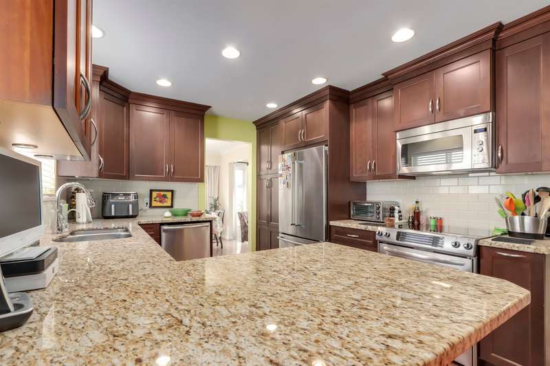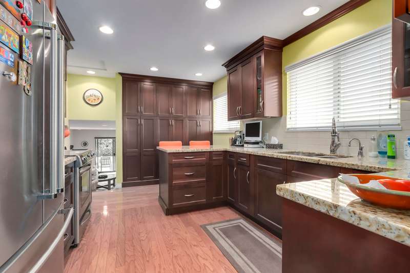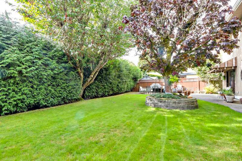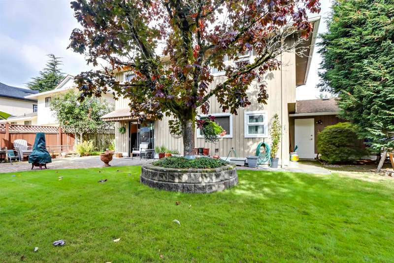 Lovely back split on rectangular 60 x 117' lot on a quiet street in one of Richmond's most prestigious and sought after areas! Rarely do homes come available here - Sidewalks, no ditches, mostly newer houses on the street. BUT NOT JUST LOT VALUE, this home has been well cared for by long time owners, and was substantially updated in 2010 with new windows, kitchen, flooring, lighting etc.. 3 Full bathrooms, single garage and workshop area, nice patio on private south facing back yard with Suite potential down. All levels of school nearby and close to shopping and Vancouver access. Great house for a family, or good investment with excellent rental potential while waiting to build a new house.