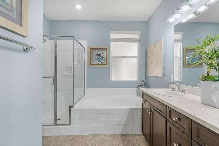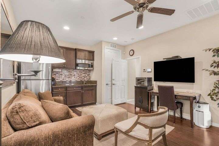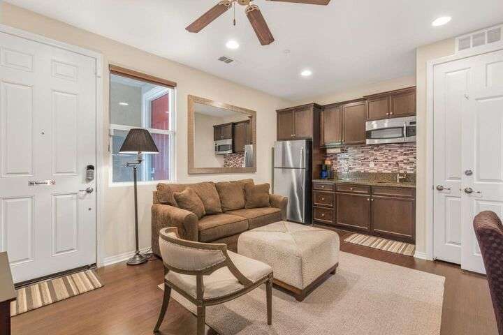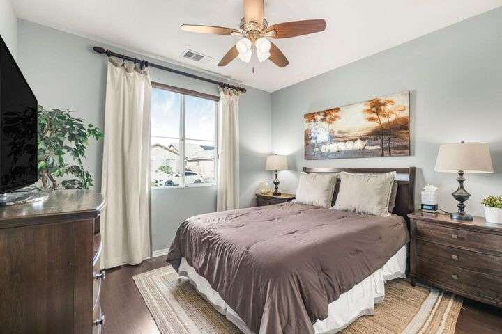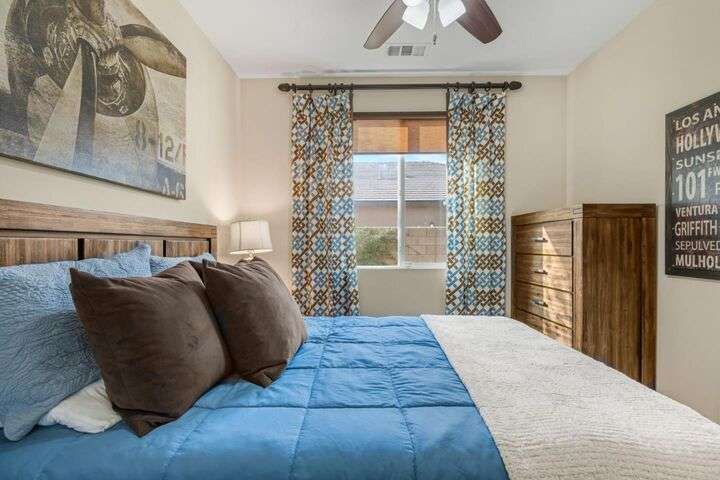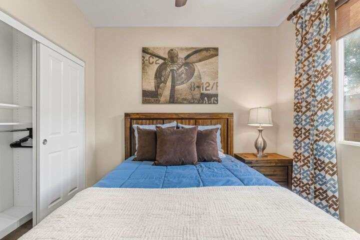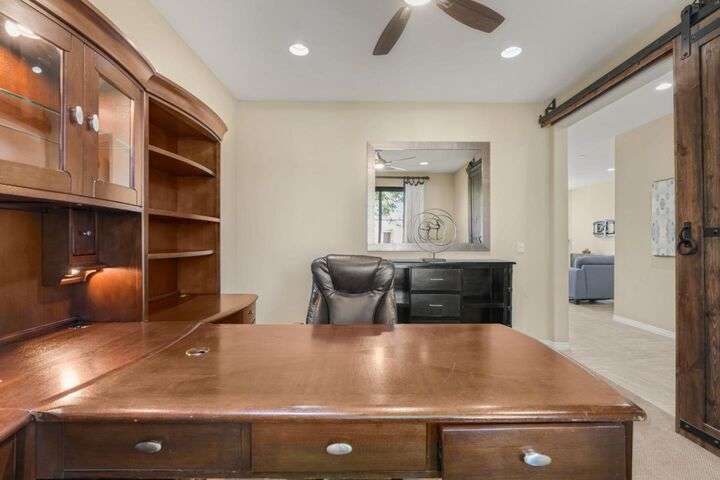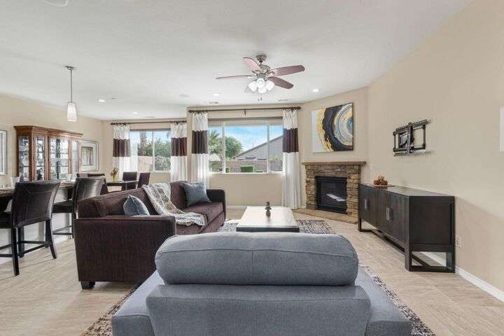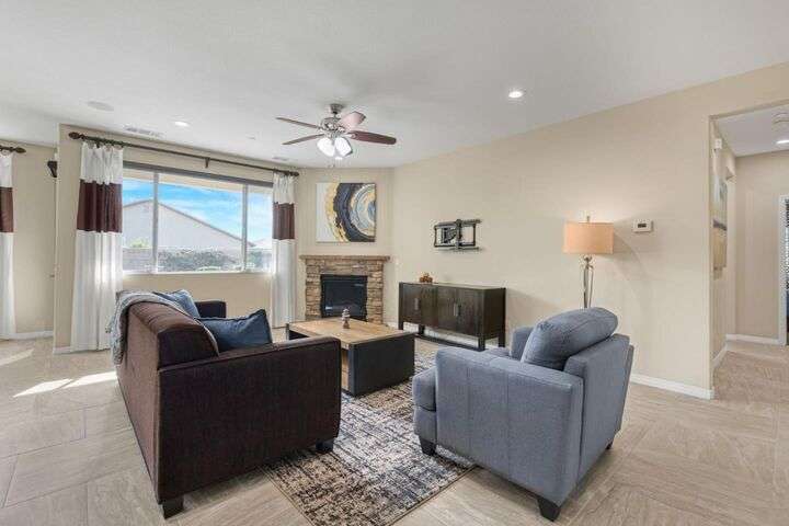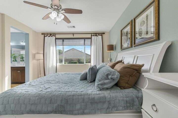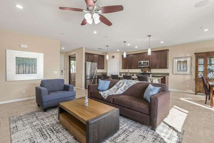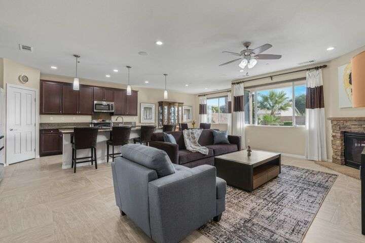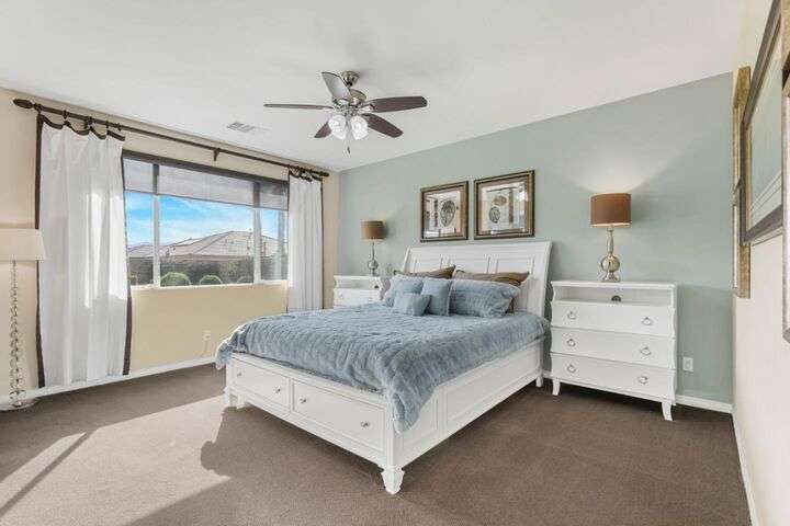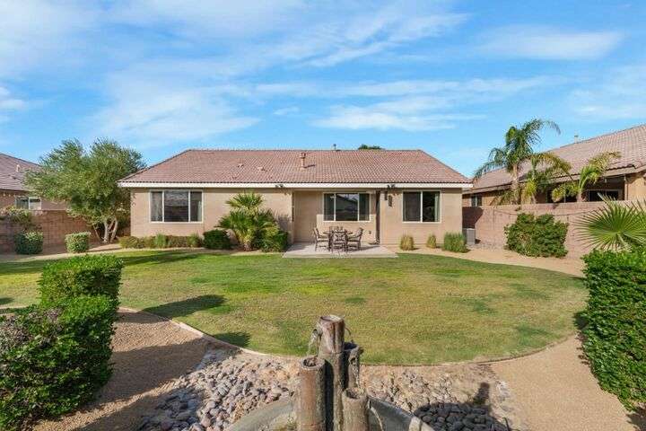 Beautifully maintained home offering 2,284sqft in the sought-after Aliante gated community of Indio. This residence features 4 beds / 3 baths and office/den providing a perfect blend of comfort and functionality for modern living. Attached is a stunning apartment sized casita with its own private entrance, kitchenette with full-size refrigerator, washer, dryer, spacious bedroom with large walk-in closet and a full-size bathroom making it ideal for guests, extended family, or as additional income as a rental. Step inside to discover a bright and open floor plan thoughtfully designed for contemporary living. The stylish kitchen outfitted with granite countertops, grand island, pantry, abundant cabinetry with pull-out shelves adds a functional layout that makes meal preparation and entertaining a pleasure. The serene primary suite offers a private retreat with an en-suite bathroom with dual sinks, shower, bathtub and large walk-in closet with built-in organizers. Garage can house 2 cars plus ample storage and/or golf cart. Additionally included is a tankless water heater, 220 Volt Plug and A/C mini split to maintain temperature control for tinkering around the garage. Outdoor living is seamless thanks to one of the largest lots 9,148sqft surrounded by low-maintenance landscaping.