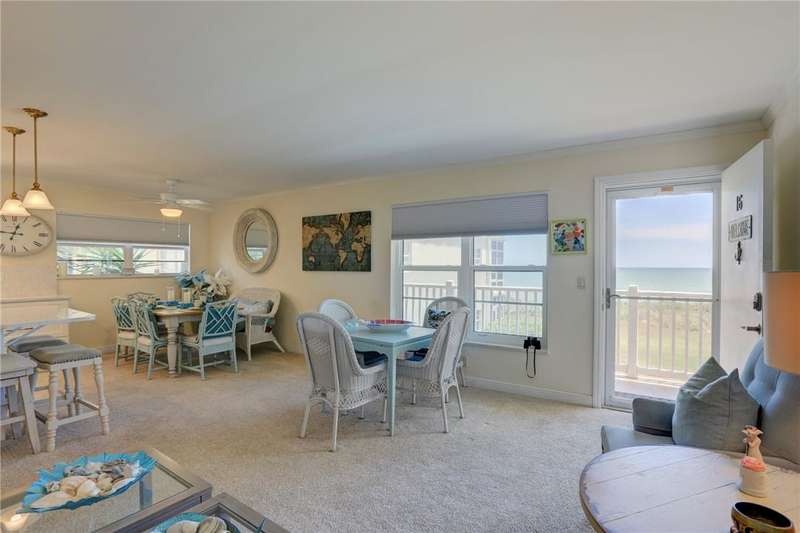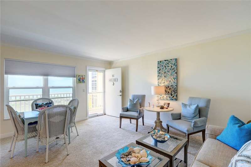 Endless Ocean Views! This gorgeous 2nd-floor oceanfront condo in an elevator building is offered as a seasonal rental or available annually at a discounted rate. Direct beach access, an oceanfront pool, and sweeping views from the enclosed porch bring the ocean home. Updated interior with a stunning kitchen with quartz counters, breakfast bar & coastal decor. Ideal for 2 occupants with space to sleep up to 8plenty of room when family visits. Games, books & generous closet space included. 3-month minimum, all utilities included. Sorry, no pets allowed in this 55+community.