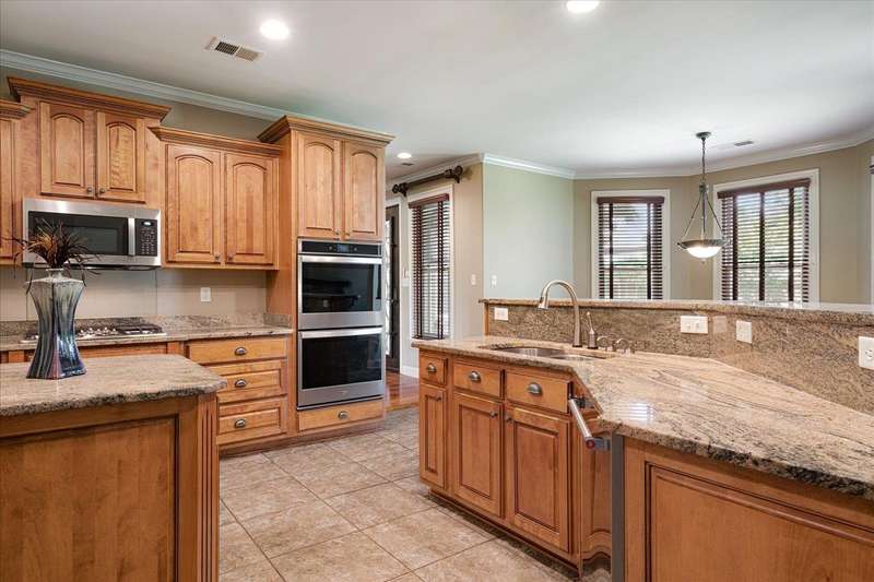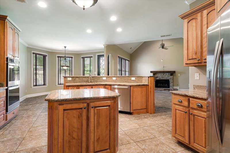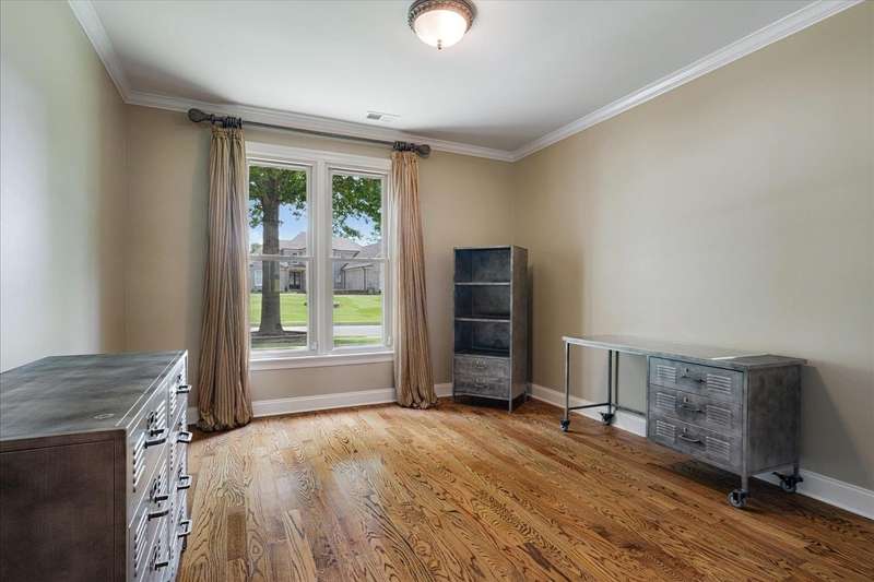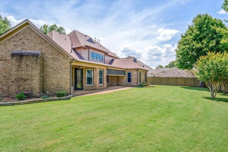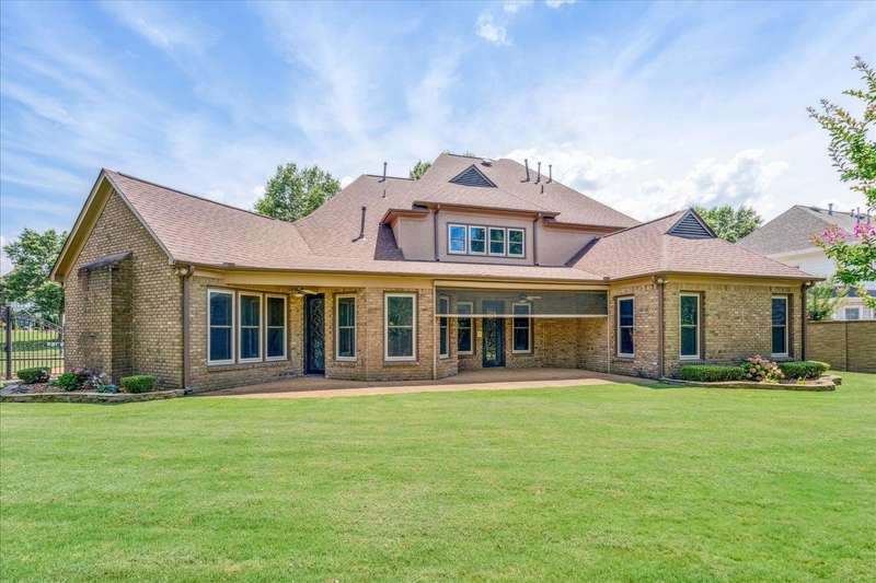 Stately, inviting stone and brick residence set back on expansive lot in beautiful Southridge subdivision in Collierville. Sweeping 2-story foyer and grand stairway. Primary and secondary bedroom suites on first level, along with separate living room, dining room, kitchen, keeping room and breakfast area. Three additional bedrooms upstairs, plus office/game/media room with French doors, and bonus/playroom. Large backyard with concrete brick fencing has ample play space for children and/or pets, and a even pool, if desired. Covered patio with phantom screen, 4 beautiful iron security doors, irrigation system, and 3-year-old roof. All new windows in 2017. So much to love!