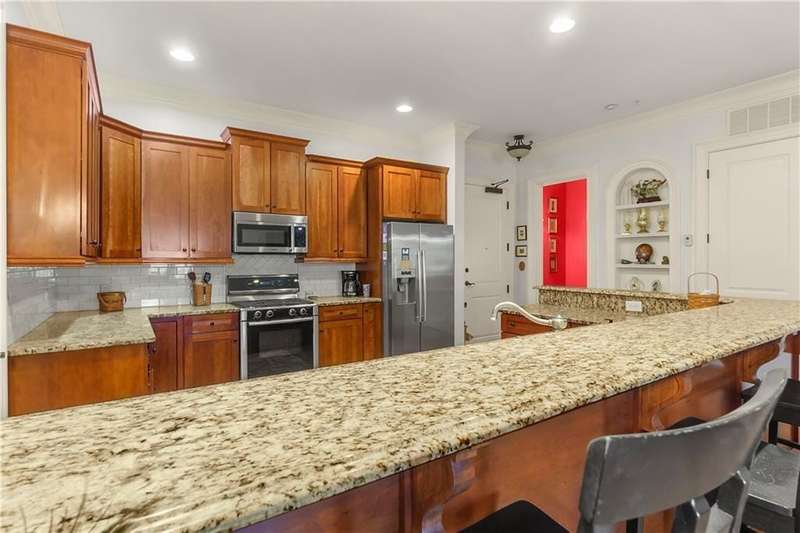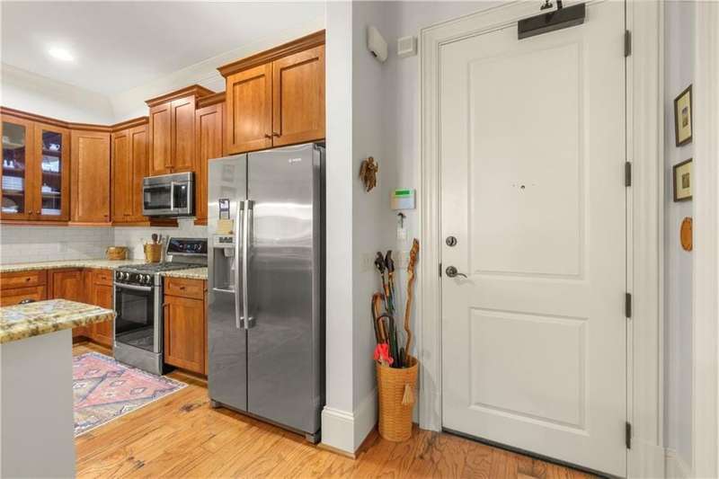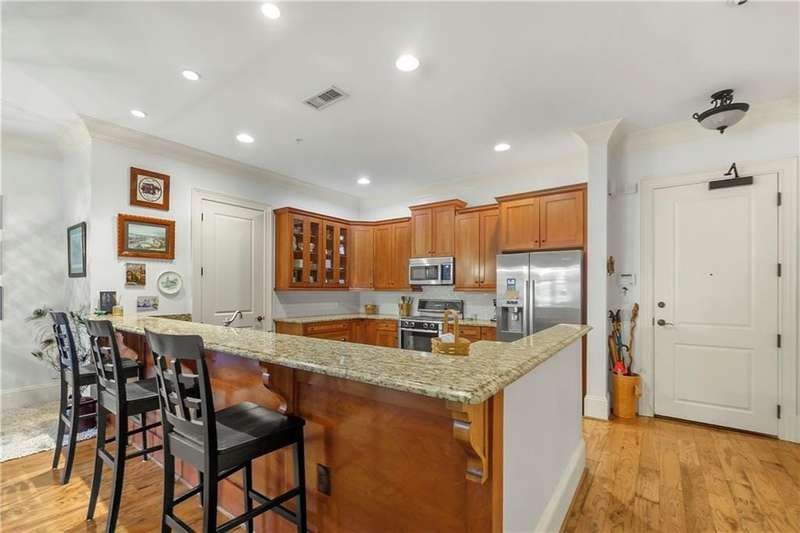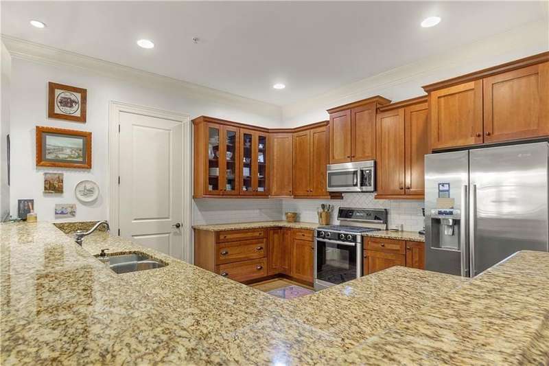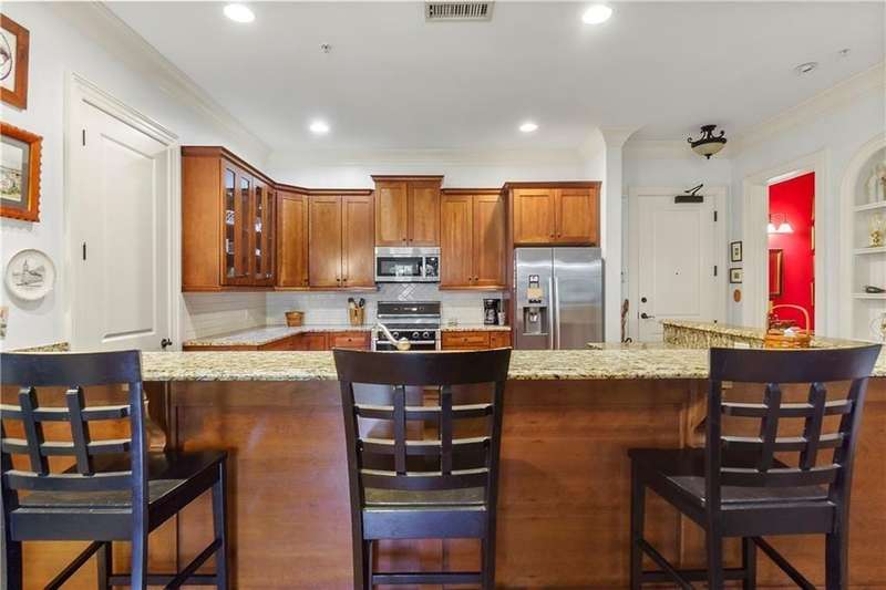 Prepare to be enchanted by this extraordinary property, a true gem that effortlessly combines elegance with functionality. This 4 sided brick condominium exudes such charm with a warm inviting entrance. As you step inside, you are welcomed into a grand foyer that sets the tone for the entire residence. As the original model home, this condo has many carefully chosen finishes. The French doors off the family room open up to a balcony where you can enjoy your morning cup of coffee. You will also enjoy a front row seat when the yearly firework festivities from the Marietta Square begin! Adjacent to the living room is the gourmet kitchen, a culinary haven that is designed for those who adore cooking and entertaining. Featuring state-of-the-art Bosch appliances, exquisite cabinetry, and ample counter space. Be sure to check out the roof top deck and community gathering room for your next event. Dont miss the chance to make this exquisite residence your own.