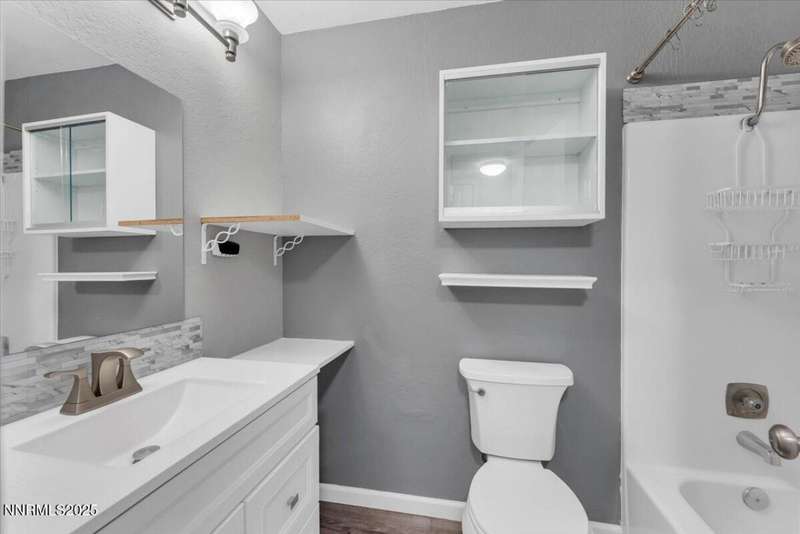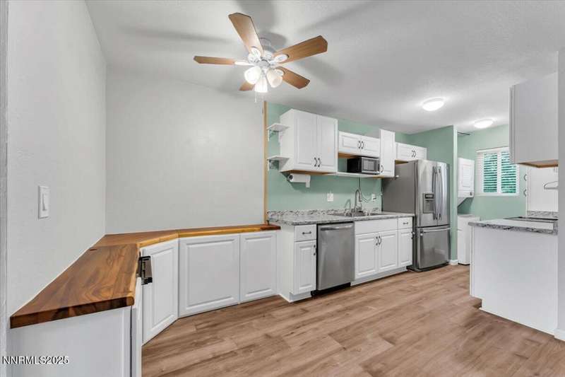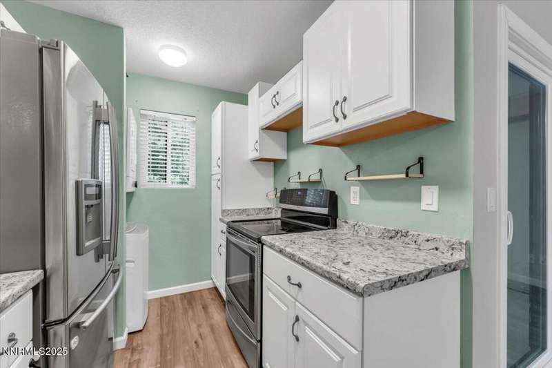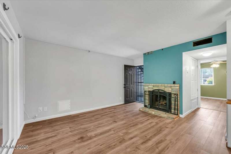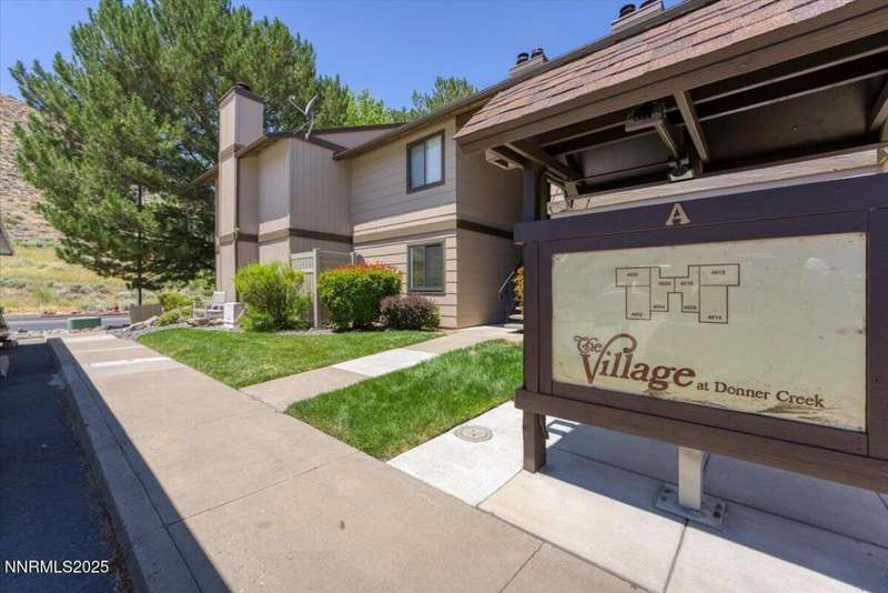 Conveniently situated in The Village at Donner Creek, this great ground-floor condo awaits! Step inside and enjoy thoughtfully-updated interiors, where you'll enjoy sleek plank flooring, a functioning fireplace, and more. A cozy kitchen showcases laminate countertops, white cabinetry, a large sink, and stainless steel appliances, connecting to a built-in desk with additional cabinetry. The bedroom includes a large closet and sits right next to the updated bathroom, which features modern neutrals and a shower/tub combo. An enclosed back patio opens up to creekside greenery, allowing you to enjoy outdoor space without the hassle of upkeep. There's even a washer and dryer in-unit! If you're looking for a stunningly simple abode that checks all of the boxes, look no further!