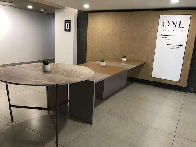 Chic and stylish 35sq/m one bedroom apartment in the sleek new development One Rosebank. Situated in the heart of Rosebank this location puts the resident in walking distance from The Zone and Rosebank Mall. One bedroom with en suite bathroom. Living space including galley kitchen with integrated SMEG appliances. Balcony with treetop views. Concierge service. Access to the fabulous restaurant complete with private dining room and cigar lounge. 1 basement parking bay. Prepaid electricity. Fibre ready. Rental excludes Water, sewer, refuse, prepaid electricity and fibre costs. Backup power and water. Essential viewing by appointment.