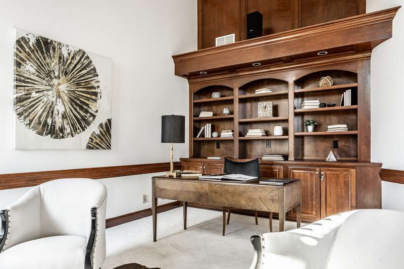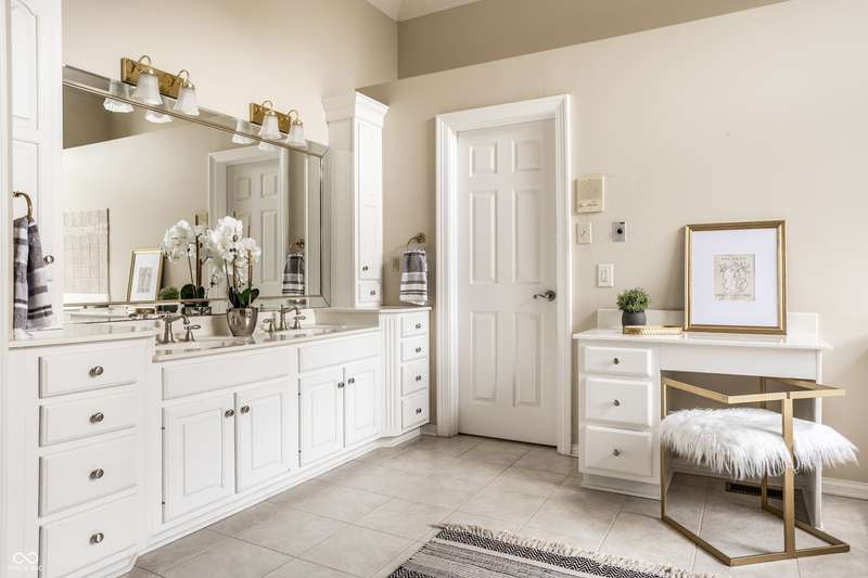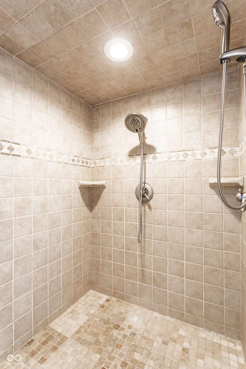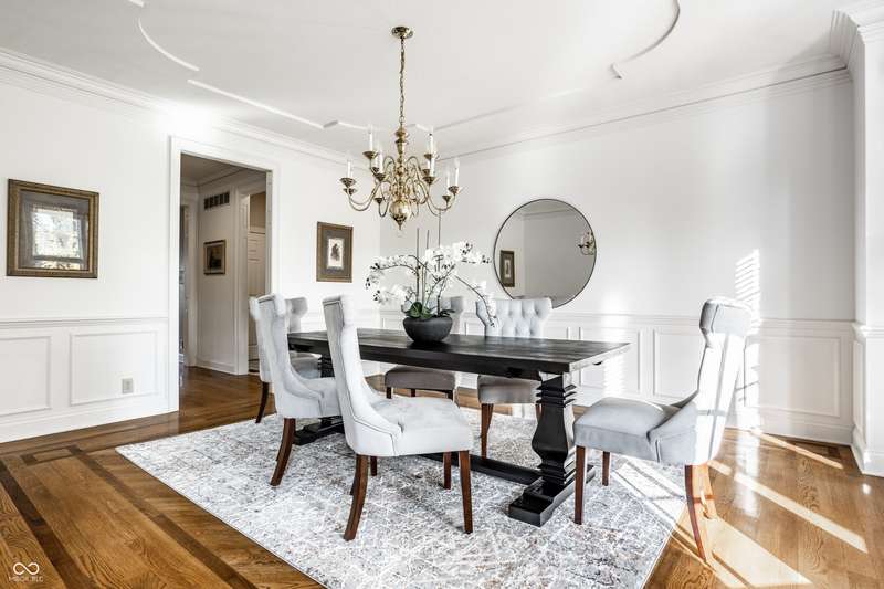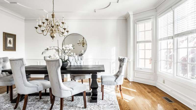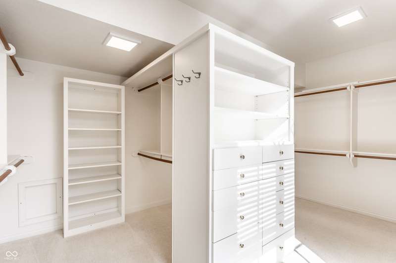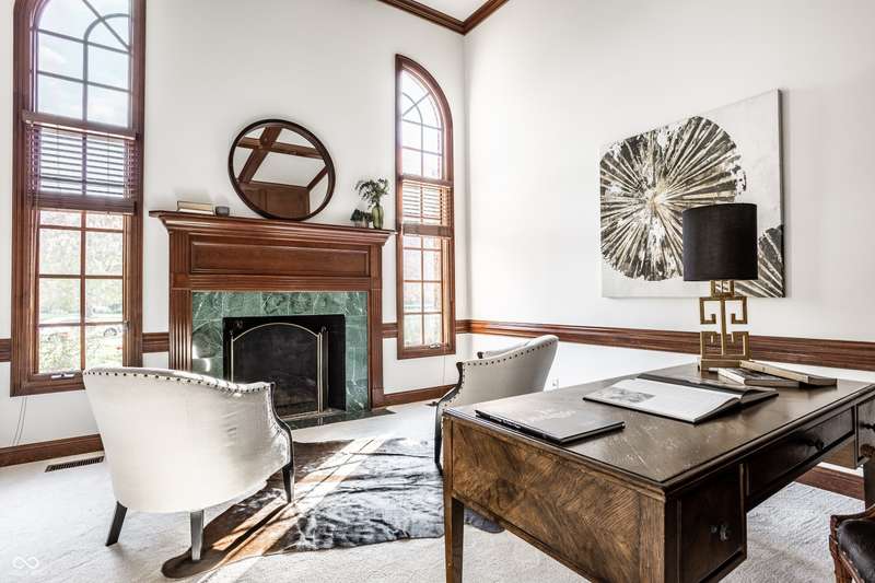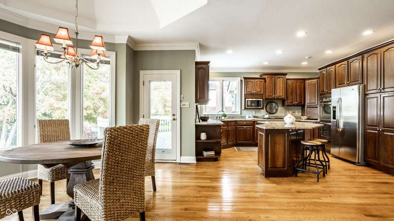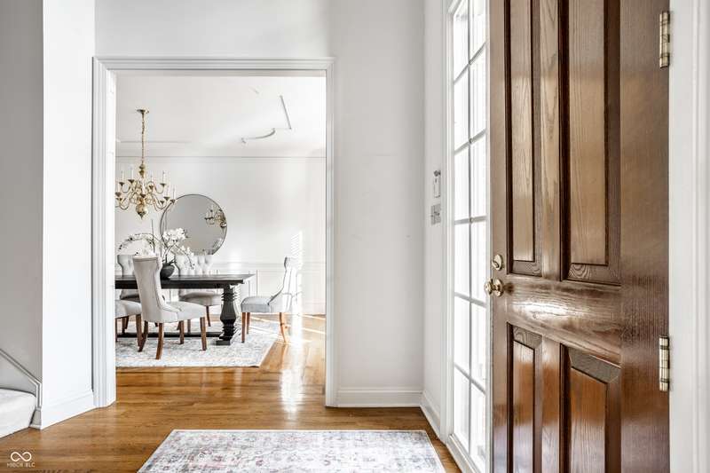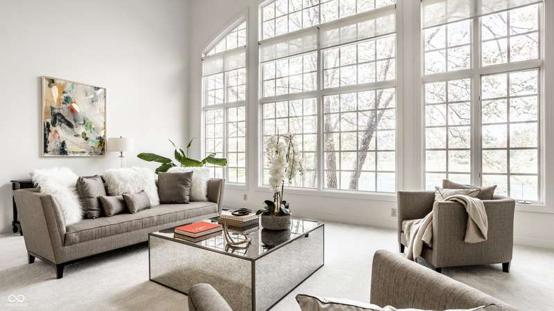 Situated on a premier water-view lot overlooking the pond and fountain inside the gated community of prestigious Windermere in Carmel, this expansive custom home offers both luxury and versatility. From the moment you enter, you'll notice the attention to detail and fine finishes, from gleaming hardwood floors to beautiful crown moldings. Recent updates include new carpeting on the main level and in two lower-level rooms, as well as fresh paint on the main level and upper hallway, giving the home a bright, refreshed feel throughout. The two-story great room is filled with natural light from a wall of windows and warmed by a two-sided gas fireplace shared with the cozy hearth room. The kitchen is well equipped for any chef, featuring a center island, ample counter and cabinet space, and a breakfast room overlooking the pond and fountain with access to the deck and screened porch. A formal dining room provides additional entertaining space. The main-floor primary suite is a serene retreat with vaulted ceilings, a relaxing ensuite bath, and a custom walk-in closet. Upstairs, three spacious bedrooms each include an ensuite bath and a walk-in closet. The walk-out lower level is designed for both fun and function, featuring a large family room with a wood-burning fireplace, an entertainment room equipped with a billiards table and a wet bar, guest quarters, an exercise room, a bonus/storage room, and an additional full bath that serves the pool. Accessibility is a highlight, with the home offering elevator access and handicap-friendly features, including ramps in the garage and pool area. Outside, the fully fenced rear yard features green space and a pool with a new liner and cover, all overlooking the tranquil pond and fountain. This one-of-a-kind home blends timeless craftsmanship with thoughtful updates, all in an exclusive gated community on one of Windermere's most desirable water-view lots.
