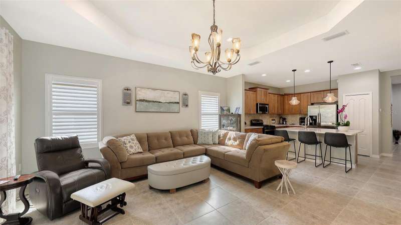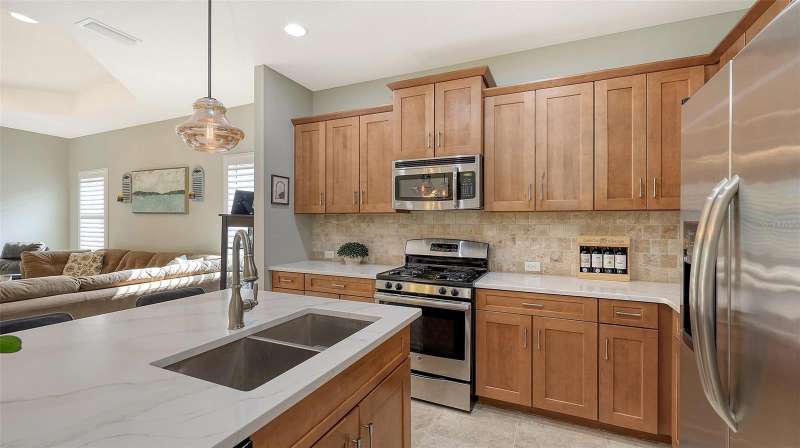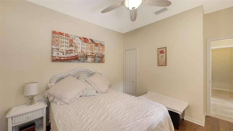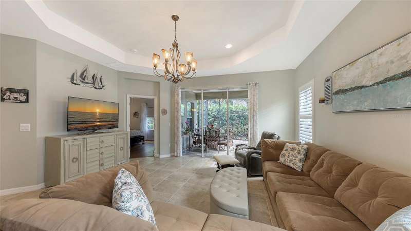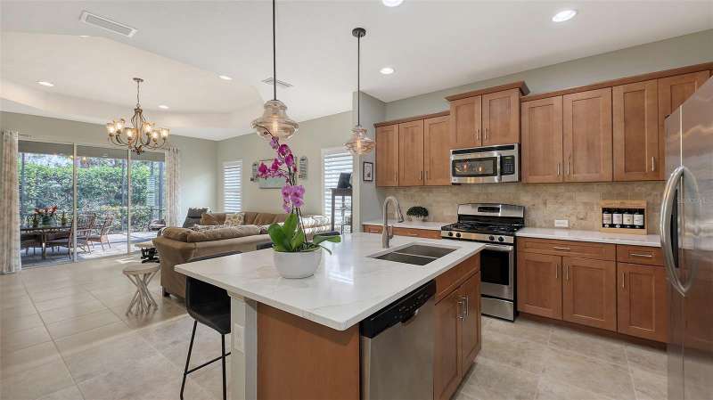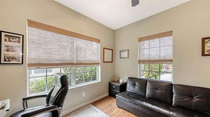 Move in READY…in Fairfield!! Immaculate paired 2-BEDROOM PLUS DEN VILLA located in a maintenance-free, gated community in a fabulous location. Popular TIDEWATER FLOORPLAN with dining nook and extended lanai. Inviting covered front porch welcomes you into this “like new” villa with a stylish decorative glass front door. Bright and open living space that’s perfect for both easy living and entertaining. The great room boasts 9’ tray ceiling and large sliding glass doors that lead to the extended lanai. The bronze-caged screened paver lanai with a covered area overlooks green space. The kitchen boasts custom contemporary solid wood shaker cabinets, beautiful quartz countertops, chic backsplash, stainless steel appliances, gas range, pantry closet and large center island. The owner’s suite is a true retreat featuring an additional window for natural light, walk-in closet plus secondary closet and a pretty en-suite bath w/split vanities, walk-in tiled shower w/frameless glass surround. The split floorplan offers privacy for the guest bedroom and bathroom. Located off the foyer with double doors, the den provides flexible space for a TV room, home office, or could even serve as a 3rd bedroom. A 2-car attached garage is easily accessible via a short breezeway. The interior laundry room comes with a Maytag washer and dryer. AC system replaced February 2025!! Fairfield is a beautifully landscaped, low-maintenance community offering access to resort-style amenities including a heated pool & spa, clubhouse, fitness center & many planned community activities. This is a very "pet" (and people) friendly community with low HOA fees. Convenient to the UTC Mall, dining, shopping, entertainment, numerous championship golf courses, Public Library, pristine Gulf Coast beaches, I-75, SRQ International Airport & Downtown Sarasota & Bradenton. Nothing to do but move in and enjoy life on the Gulf Coast! Excellent value!! Some furnishings may be available under separate contract!
