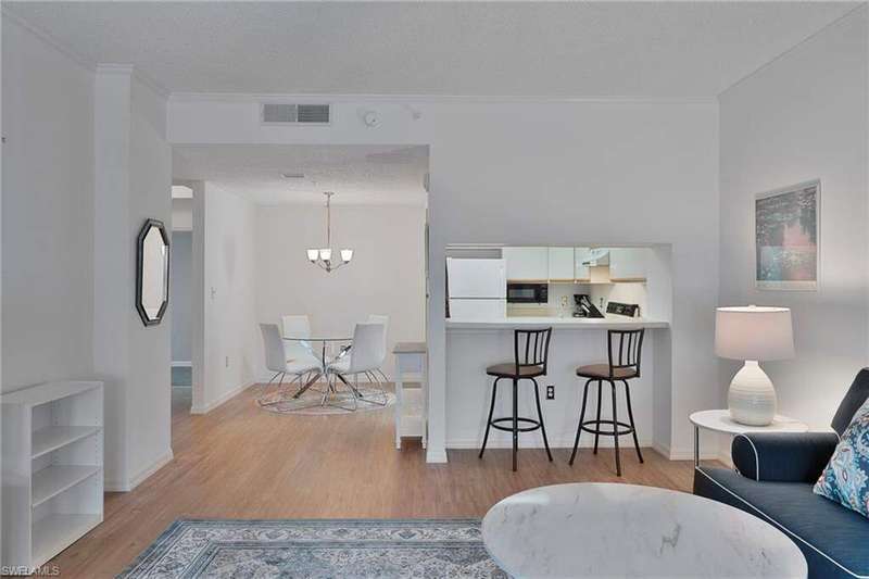 This is true worry-free living! This spacious 1BR/1BA condo in Arbor Trace, an exclusive 55+ community, has deeded ownership, low taxes, and no hidden commitments. Don't let the fees fool you-the HOA/Membership covers everything you need: electric, fiber optic cable, internet, water, sewer, trash, pest control, building insurance, transportation, and 120 gourmet meals per year including favorites like filet mignon, prime rib, and the community's famous bottomless Sunday brunch. Resort-style amenities: heated pool & spa, pickleball, tennis, bocce, shuffleboard, putting green, dog park, beauty salon, fitness center, extensive library, and assisted living if needed. This fully furnished unit includes a king-sized bed in the bedroom and a new queen-sized sleeper sofa in the extended living room, plus an in-unit washer/dryer, newly screened lanai, covered parking and extra storage. Just 5 minutes to Vanderbilt Beach and Wiggins Pass. Move-in ready-schedule your tour today!