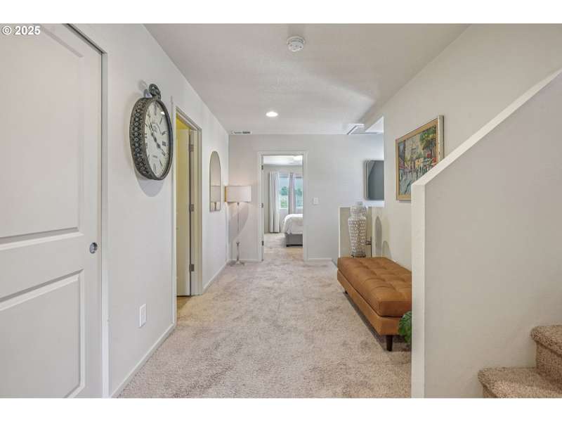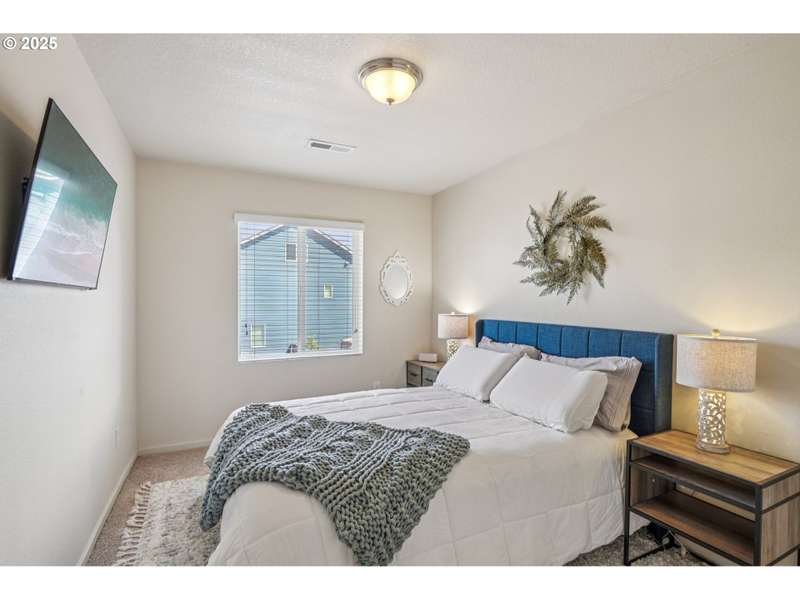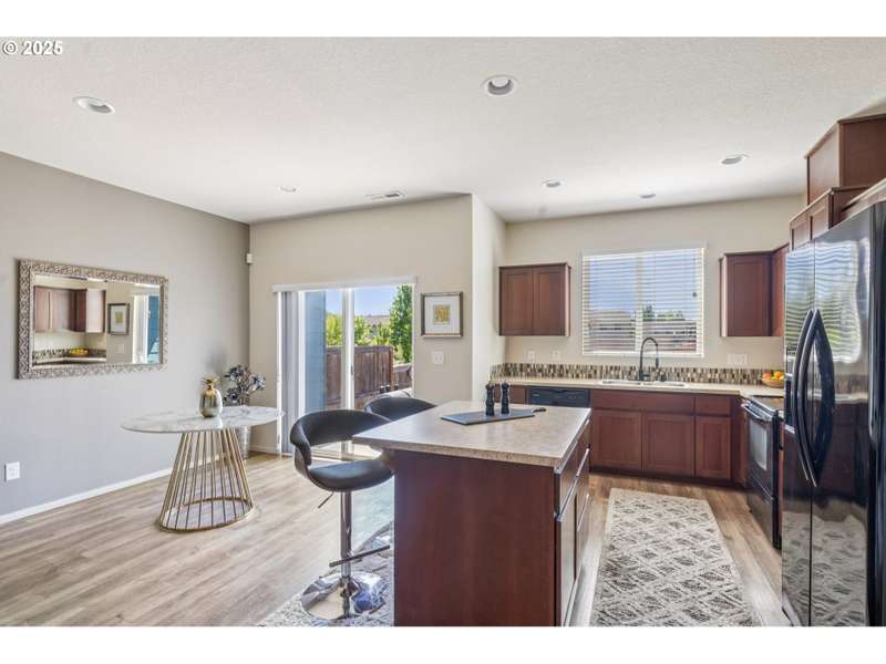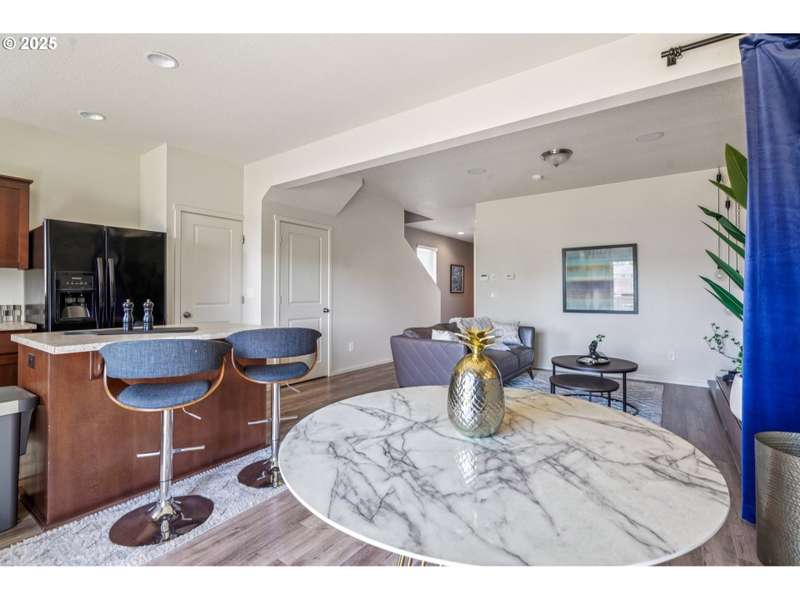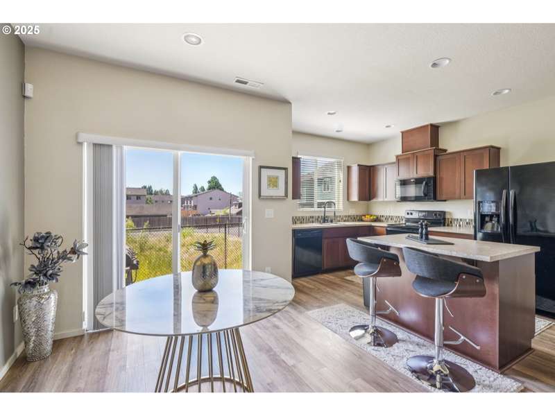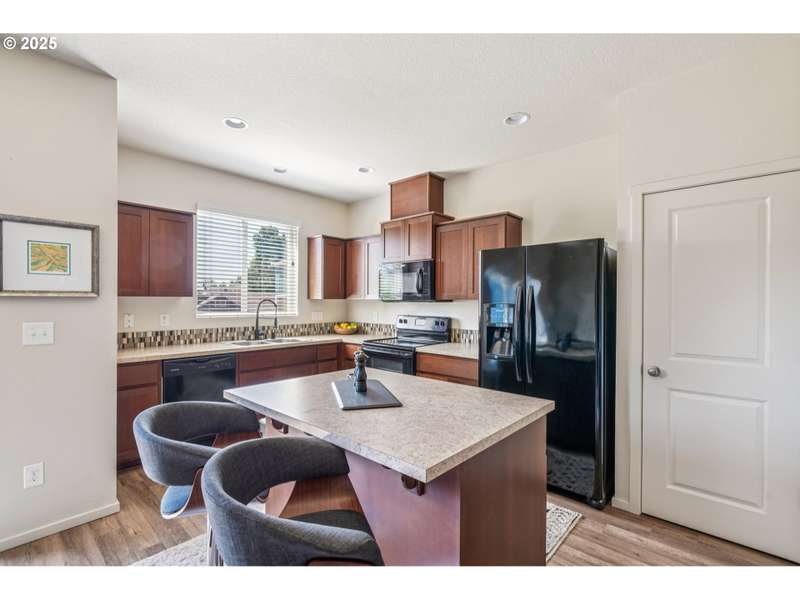 Formerly the Model home for the Neighborhood, and Presently still a Stunner! Situated on the corner as you come into the neighborhood, there are extra windows on the side providing for more natural light, and the back faces South towards the pond. 3 bedrooms or 4 if you choose to use the upper room for that instead of a theater room or play room or craft room or office. Wired surround sound speakers throughout the home. All the appliances. Central Air Conditioning! LVP flooring on the main level with kitchen and kitchen island, pantry closet, dining space, family room, half bath, and a walk out sliding door to the fenced backyard. Second level includes 3 bedrooms and 2 full bathrooms. The primary suite includes a full bathroom and large walk-in closet. The 2nd level also includes a sitting area or landing, along with the laundry room and storage closets. Third level bonus area can be used for anything you can think of. Window coverings and curtains included. Move right in!
