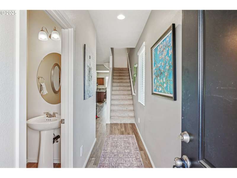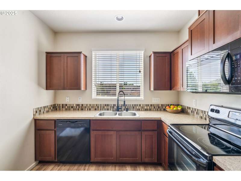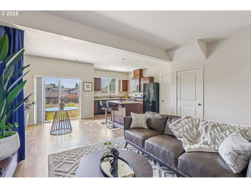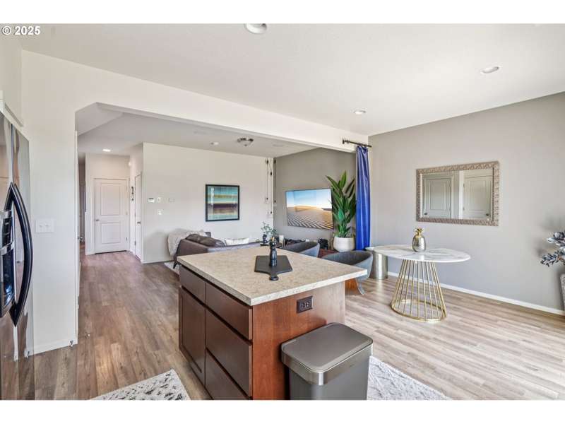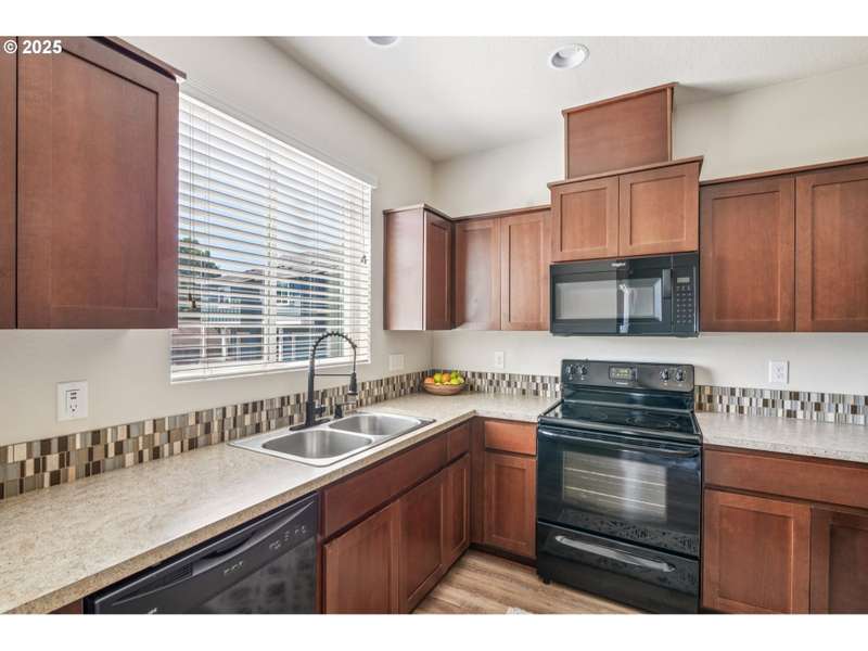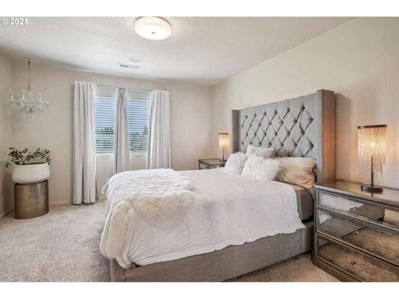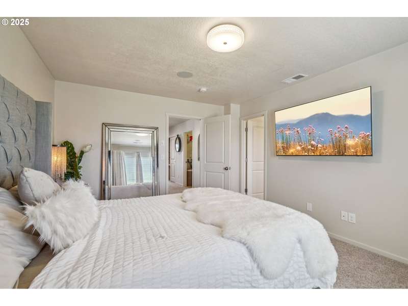 Formerly the Model home for the Neighborhood, and Presently still a Stunner! Situated on the corner as you come into the neighborhood, there are extra windows on the side providing for more natural light, and the back faces South towards the pond. 3 bedrooms or 4 if you choose to use the upper room for that instead of a theater room or play room or craft room or office. Wired surround sound speakers throughout the home. All the appliances. Central Air Conditioning! LVP flooring on the main level with kitchen and kitchen island, pantry closet, dining space, family room, half bath, and a walk out sliding door to the fenced backyard. Second level includes 3 bedrooms and 2 full bathrooms. The primary suite includes a full bathroom and large walk-in closet. The 2nd level also includes a sitting area or landing, along with the laundry room and storage closets. Third level bonus area can be used for anything you can think of. Window coverings and curtains included. Move right in!