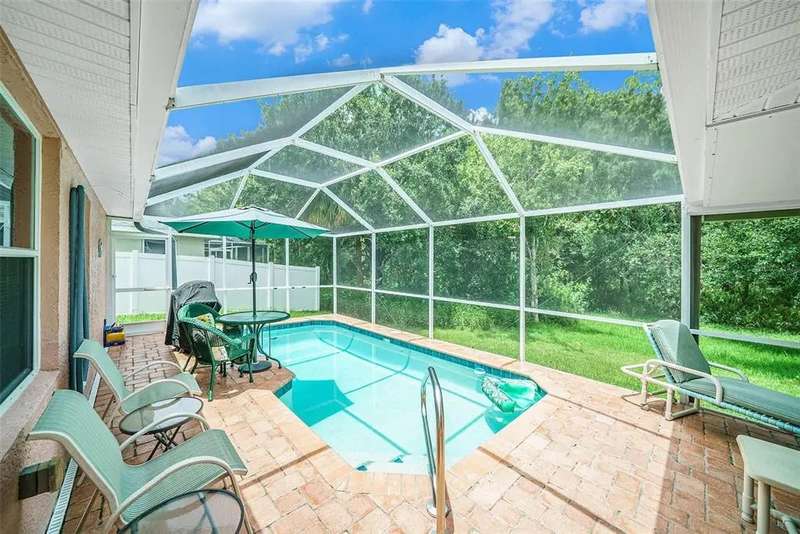 Discover your own slice of Florida paradise with this charming three-bedroom, two-bathroom home, perfectly situated in the highly sought-after community of The Fountains at Cypress Lakes in Oldsmar. Boasting a private, sparkling in-ground pool, this beautiful home is conveniently in walking distance of the local elementary school, and easy access to local shops, restaurants, local airports and beautiful Florida beaches. This community has so much to do! Enjoy the many parks, nearby ice-skating arena. pickleball courts, childrens spray park, Oldsmar Sports Complex and local movie theater. The sports complex is home to Oldsmar BMX and Oldsmar Little League. Step inside to a thoughtfully designed floor plan that maximizes comfort and functionality. The spacious living areas provide ample room for both daily living and hosting guests. The well-appointed kitchen is perfect for preparing meals, while the inviting bedrooms offer a peaceful retreat at the end of the day. The primary suite includes 2 walk-in closets and an en-suite bathroom for added convenience and privacy. The windows in the home have solar film which reduce heat and UV rays, increase privacy and improve energy and improve energy efficiency. There is a newly installed hot water heater with a transferable warranty. The HVAC is equipped with a HEPA filter, UV light and Guardian device that kills bacteria, mold and viruses in the duct work. The attic has extra insulation which also helps improve the home's energy efficiency. The sparkling pool has a Stonescape surface for enhanced durability and a comfortable non-slip surface, and pavers for the pool deck complete the sophisticated look complementing the overall design of the backyard. The two-car garage is equipped with a back-up battery for the door opener for added peace of mind. The true highlight of this home is the private backyard oasis. Imagine spending sunny Florida afternoons lounging by your own pool or relaxing on the beautiful lanai with your morning coffee, enjoying the tranquility and greenery of your backyard. With the home backing up to conservation, you'll often be treated to the delightful sight of deer, egrets, ibis, sandhill cranes, hawks and songbirds in your backyard, adding a unique touch of wildlife to your everyday life. The Fountains at Cypress Lakes is a well-maintained community known for its pride of ownership and manicured landscapes. Residents enjoy a low annual HOA fee and no CDD fees, making it an attractive option for homeowners. Don't miss out! Schedule your showing today!