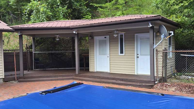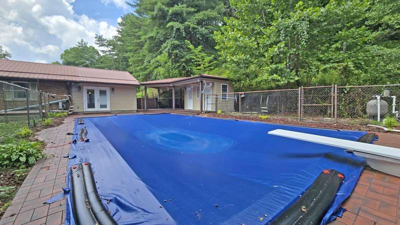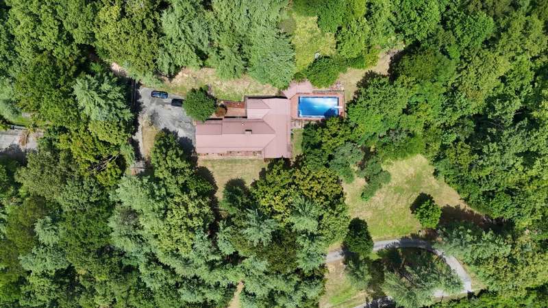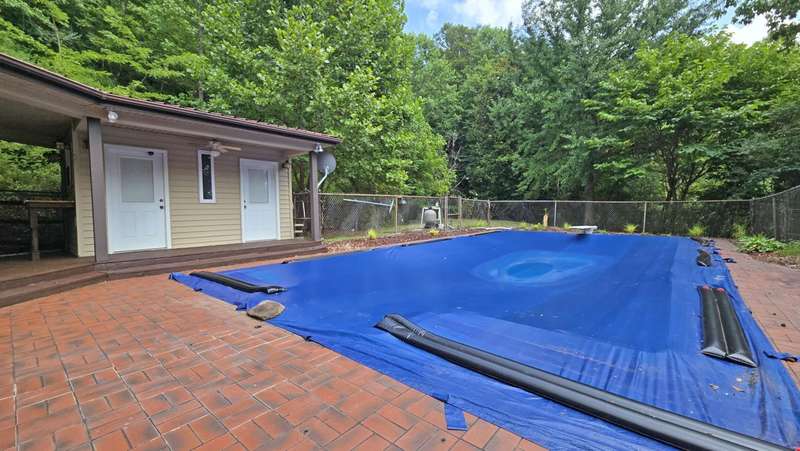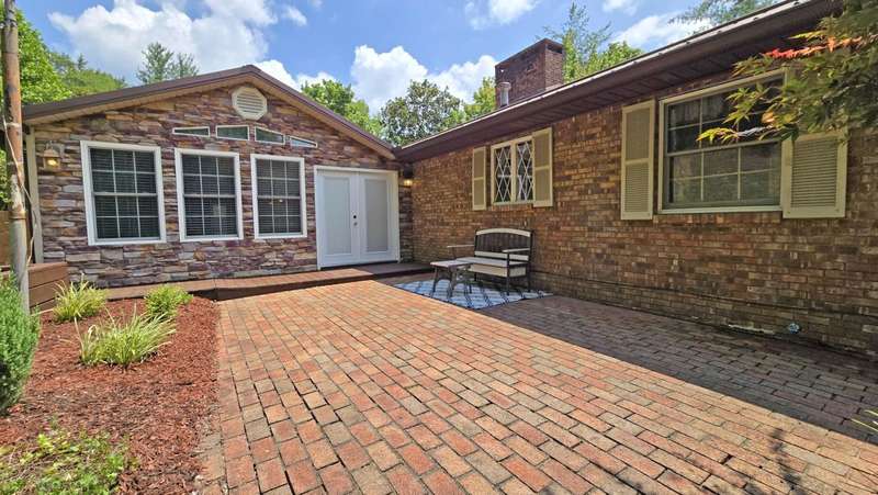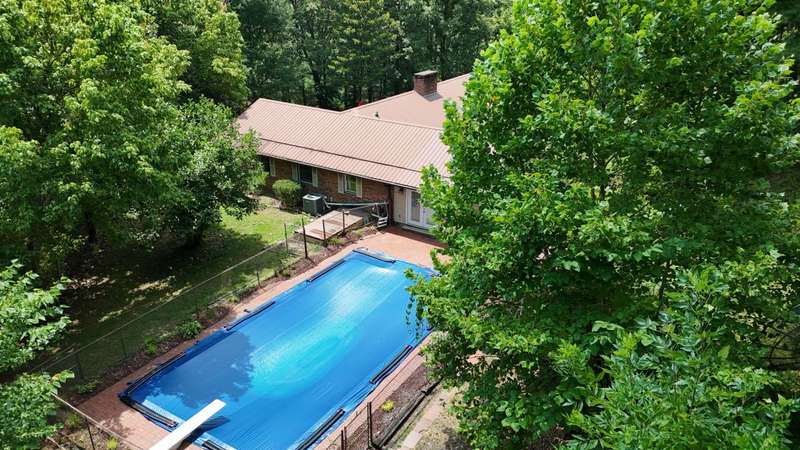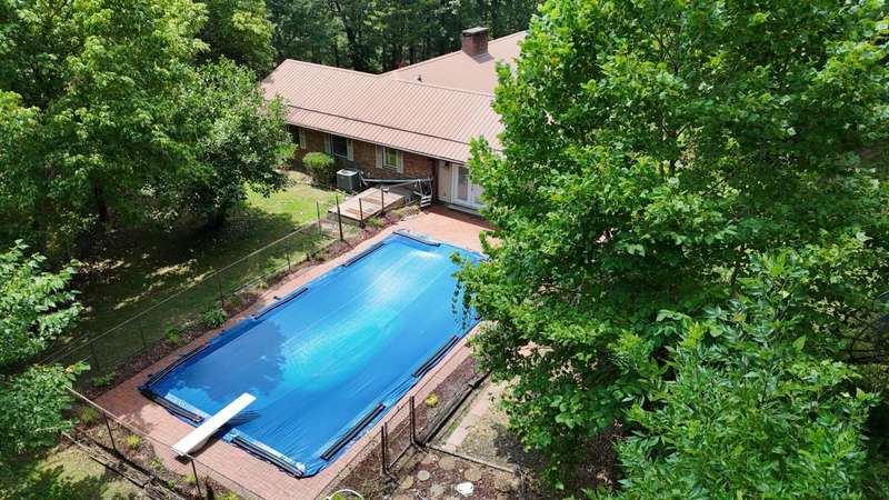 If you're looking for privacy and convenience, this is the property for you! This beautiful, brick ranch home is move-in ready, With fresh paint throughout and new landscaping, you'll find plenty to love! A large, tiled foyer welcomes you. Enjoy an eat-in kitchen with adjacent formal dining room. A large formal living room boasts a lovely double sided brick fireplace with gas insert. A cozy family room is just on the other side. Large primary bedroom has attached primary bath with walk in shower and double vanity. Three other bedrooms and a full bath with tub are also part of the floor plan. A large addition was added to create approx. 600 more sq. feet of living space. This would be the family gathering spot! Primary bedroom and family room are each flanked by French doors that lead to the addition, which guides you to the amazing back of the house. Here you'll find a large, 18x36 in-ground swimming pool with a pool house containing a half bath and dressing area. A covered area with bar is perfect for family cookouts. Full, finished walk-out basement has even more possibilities, with kitchen hook-up, fireplace and full bath.Think mother-in-law suite or Air BnB! Basement has like. new indoor/outdoor carpeting. Hardwood and tile throughout. Large 2 car attached garage. Bricked walkways and patio with relaxing water fountain. Huge 24x24 detached metal garage and storage building are also included. Professional home security system.