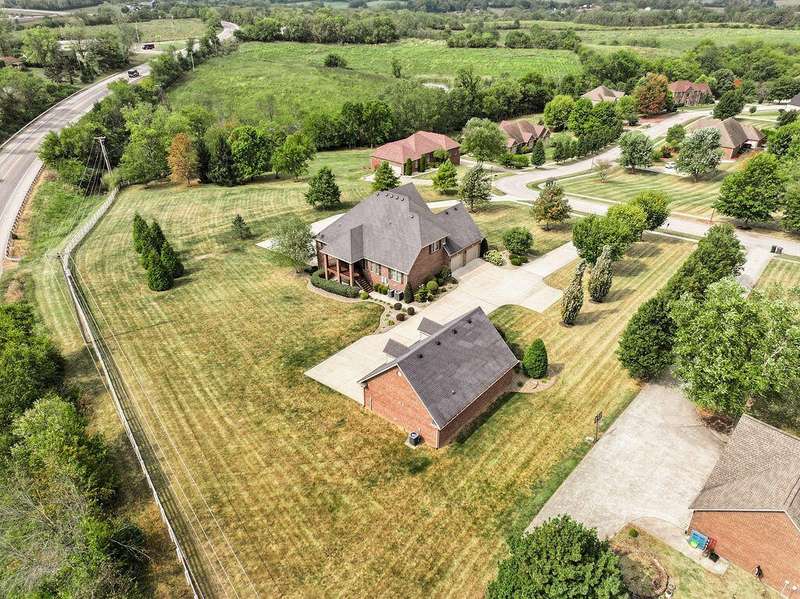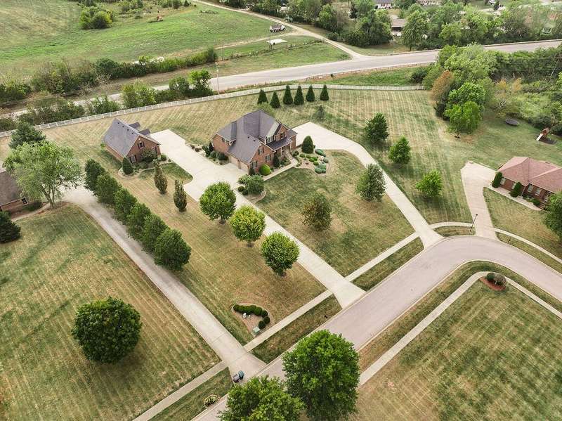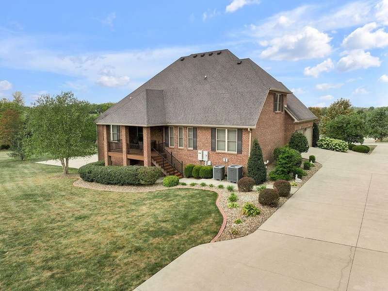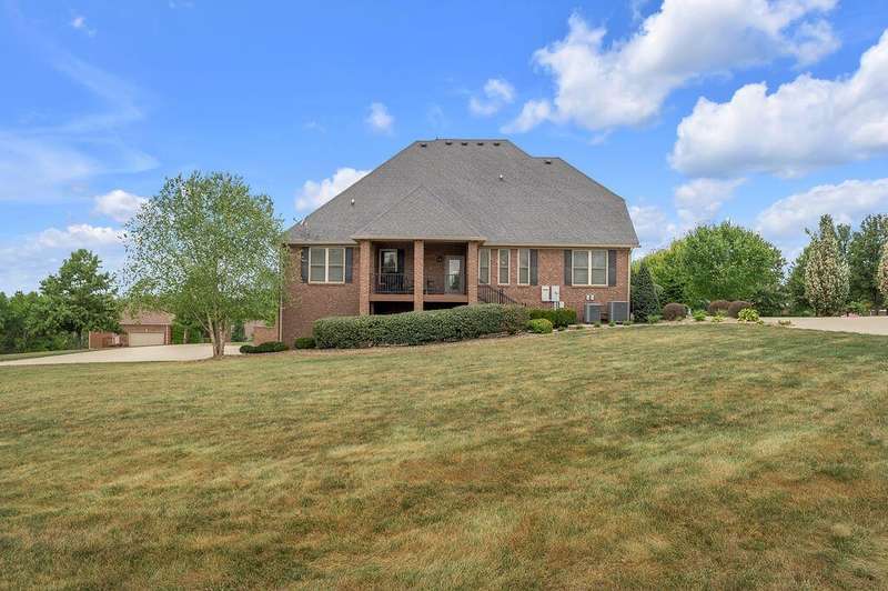 If you're looking for a highly maintained home that has everything you could possibly want, don't miss this beautiful property in Warriors Trace! Conveniently located near Lexington, Richmond, and Winchester. The home features five bedrooms, three full bathrooms, and two half baths. The spacious great room includes a natural gas fireplace, and first floor primary suite as well as an additional bedroom. You'll also find a main-level laundry room, a beautifully detailed kitchen, and a large formal dining room. The home is finished with hardwood flooring, tile, and custom trim moldings throughout. The home includes enough space to park six vehicles inside. The first level includes a two-car garage, while the basement features a garage deep enough to fit two and a half vehicles, perfect for keeping your boat and vehicle hooked up at all times. Enjoy relaxing on the front porch or the large covered rear porch. The property includes over 400 yards of concrete per the owner, providing generous driveway space with easy turnarounds. Additionally, there's a detached two-car garage equipped with its own heating and air system, ideal for recreational use, a home business, or a craft and hobby area. The home also comes with a 22,000-watt Generac generator system for added peace of mind. All of this is set on a beautifully landscaped 2-acre lot. Don't miss this one!
