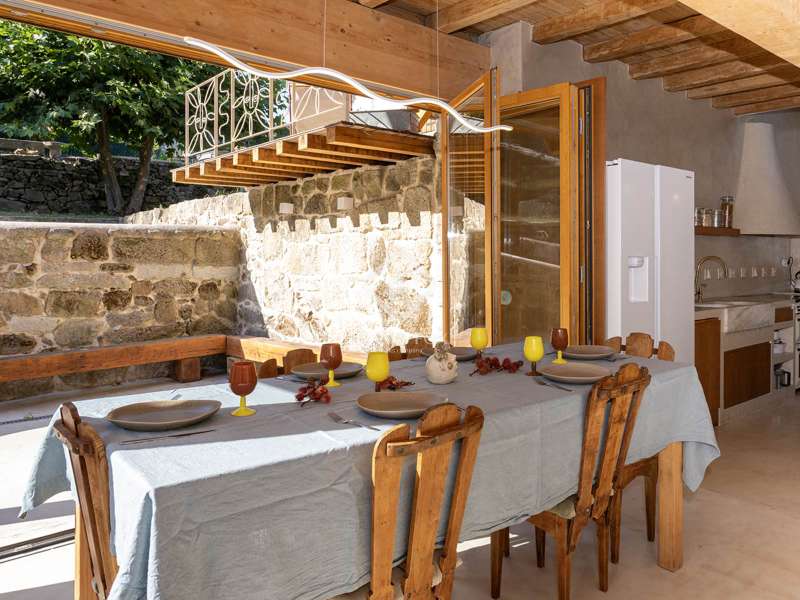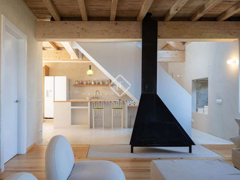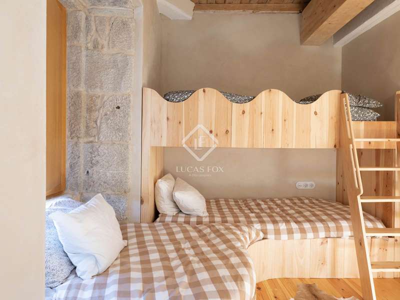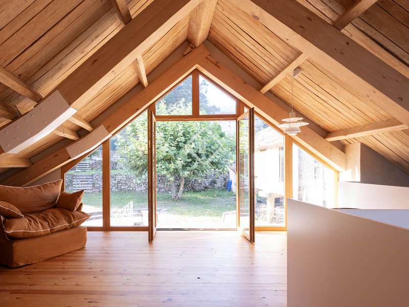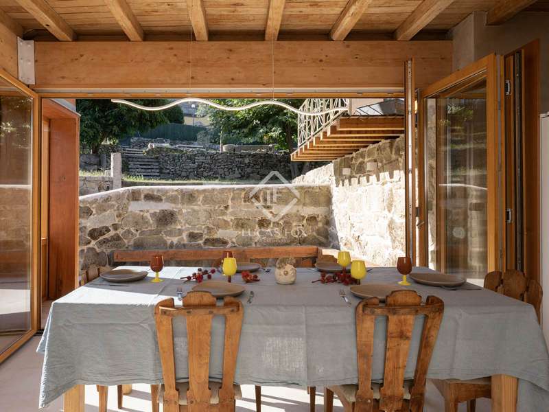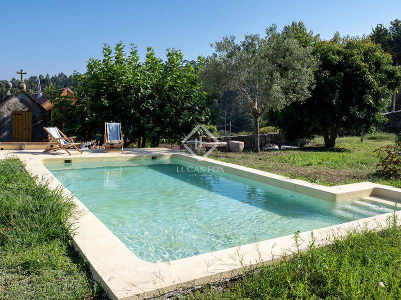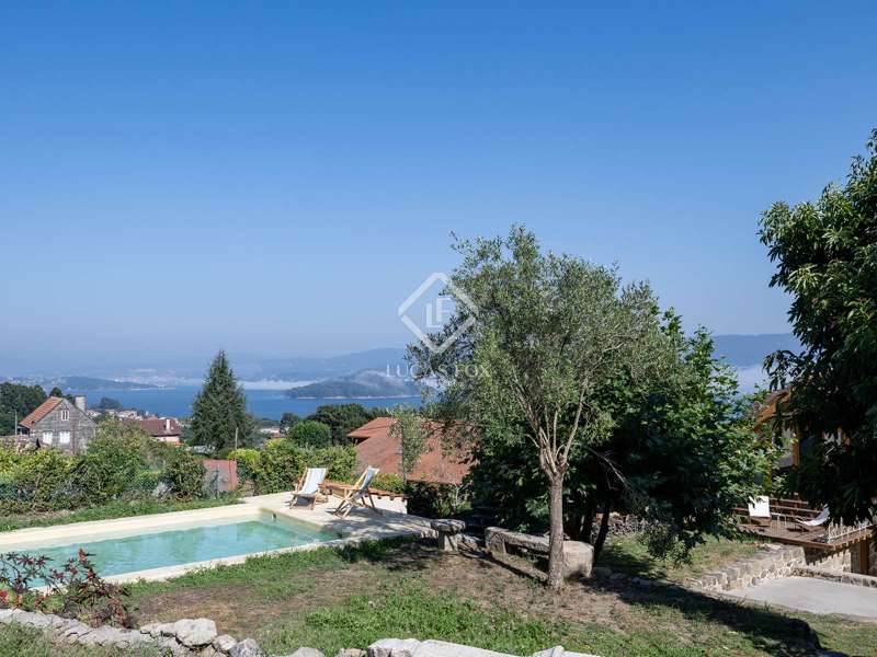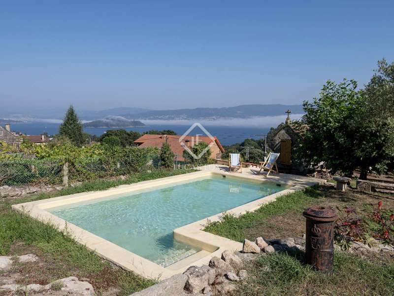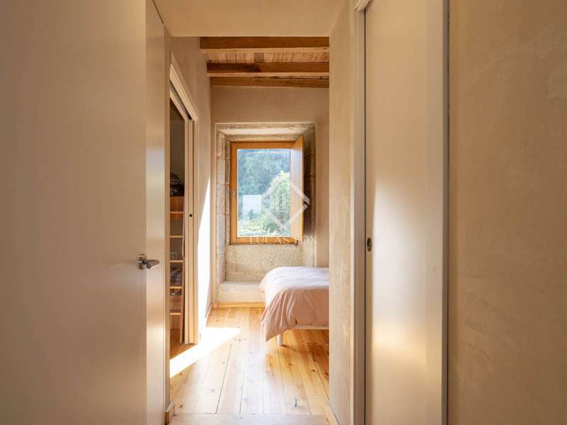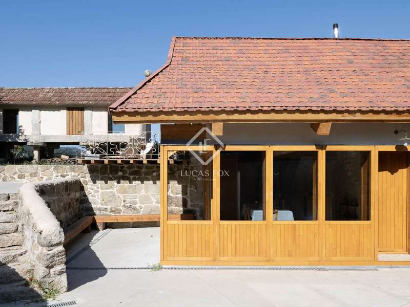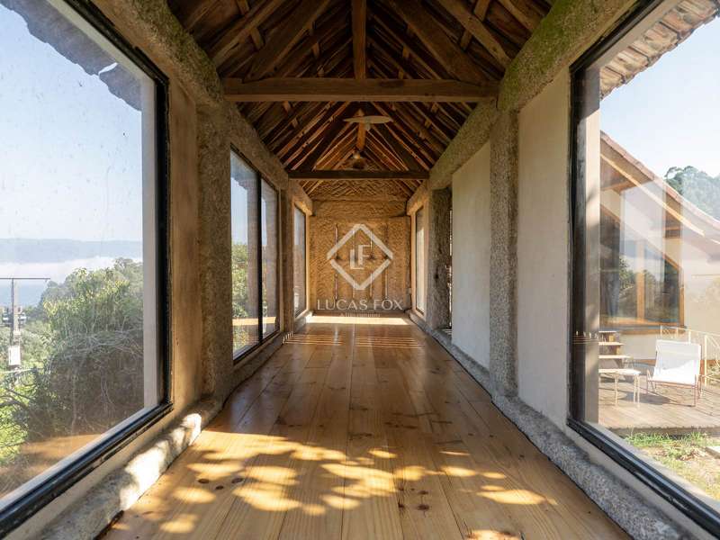 Overlooking the Pontevedra estuary from its elevated vantage point, this stunning property is a hidden gem. Situated in Samieira, in between the seaside town of Sanxenxo and the city of Pontevedra, and with the village of Combarro and a choice of sandy beaches within five minutes by car. A comprehensive renovation project was carried out between 2022-2024 by the Rojo Fernández-Shaw architecture studio, which has resulted in a practical yet beautiful design, retaining original features and charm of this historic property. Natural sustainable products were prioritised, as were contemporary design and modern comfort, with the intention to combine the old with the new harmoniously. Entering through the main door on the ground floor, we are met with an open dining room that leads to the kitchen which fuses modern looks with marble, woods and a large stove for that country kitchen feel. Solid wooden floor throughout, and open ceilings reveal the original beams. Turning right from the kitchen, there is a large open living area, with windows facing south towards the views over the Pontevedra estuary and the island of Tambo. Towards the north end of the house we find a run of four bedrooms, sharing two bathrooms, designed to imitate the form of a boat. Up the stairs to the first floor we find a spacious living area, with room to be used as an office, and the main bedroom with en-suite and walk-in wardrobe area. From this level, we can reach the outside areas via a wooden deck to enjoy the fresh countryside air. In the garden we find lawned areas surrounding a salt-water pool, which takes advantage of the sea views, and a granary which has been preserved and converted into a chill out area with views, perfect for reading or even as a play area for the kids. No expense has been spared on the renovation of this quaint and original stone house, and design, style and top-end materials are at the forefront. This property represents the perfect refuge for those seeking a home near the sea, as a first or second residence, within easy reach of Pontevedra and with all the services on the doorstep in Combarro. Please contact us for further information.