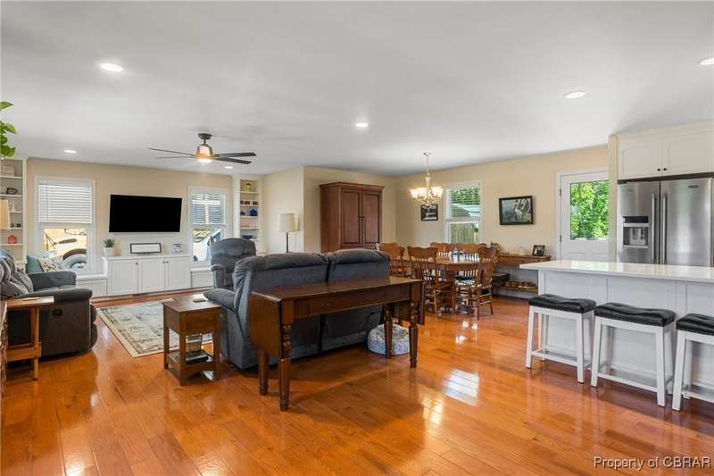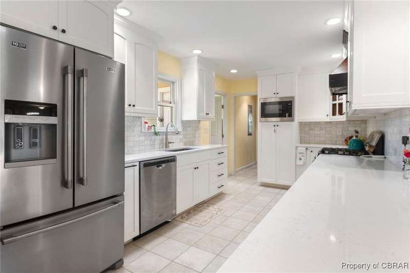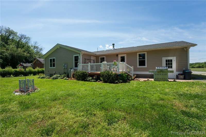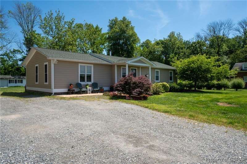 Beautifully updated home in the town of Kilmarnock. This one-level home has a completely updated kitchen with tile floors, quartz counters, marble backsplash, under cabinet lighting, custom pull-outs, gas cooking, and tons of storage. The kitchen is open to the great room with dining area, built-in shelving, hardwood floors and wood burning stove. The primary bedroom en suite is large with a walk-in closet with built-ins, en suite bathroom with heated tile floors, jacuzzi tub, tile shower and dual vanities. There are two guest bedrooms with one full bathroom and a powder room for guests. The laundry room offers extra storage mud room space with access out to the deck. The large back yard is perfect for family, pets and/or garden. Efficiently updated with Smartside engineered wood siding, conditioned crawl space and upgraded windows. A large shed offers incredible storage for outdoor tools/toys. Only minutes to public boat ramp, grocery stores, restaurants, Library, town park, YMCA, local brewery, public schools, Indian Creek Yacht & Country Club. Brand new 3 BR septic system.