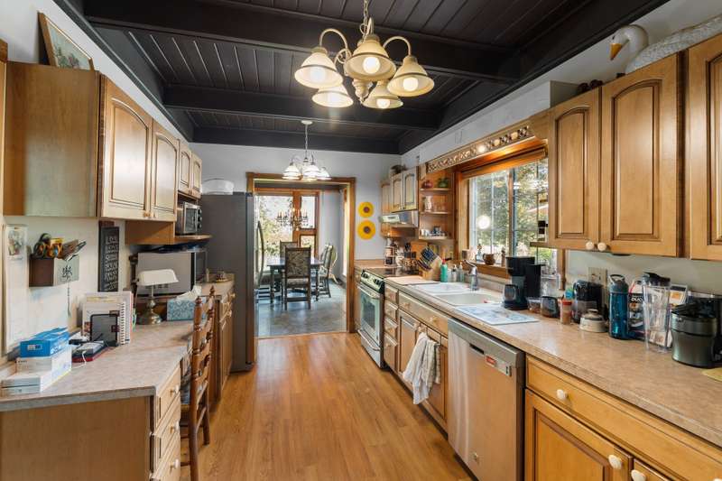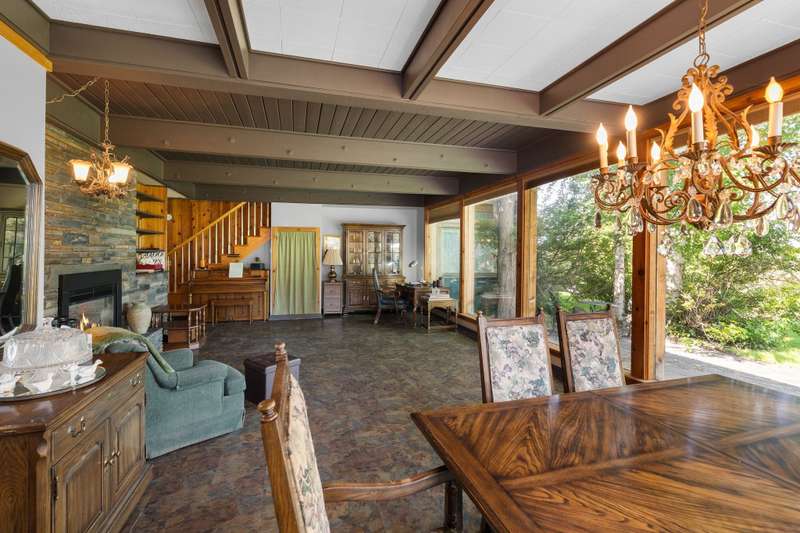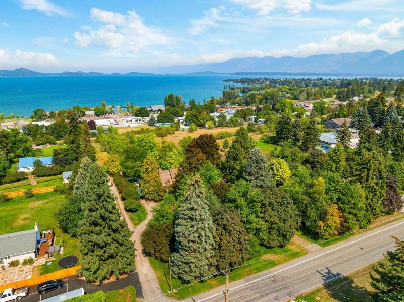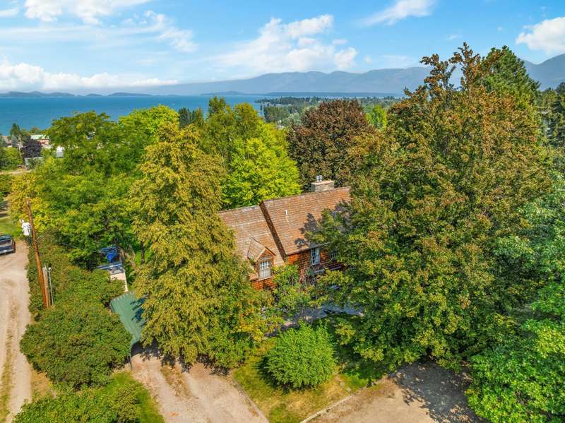 Discover the charm and potential of this 1955 3-bedroom, 3-bath home on 1.11 beautiful acres with Flathead Lake views. This property is one of Polson's gems! Nestled back from Hillcrest Drive, the property features a diverse variety of trees, concord grape vines, irrigation from the ditch, underground sprinklers, and a serene setting. Large windows bring in natural light, while two rock fireplaces-one in the living room and one in a cozy reading nook-add timeless character. There are also three carports, sheds, and a flower garden. The home is livable as-is but offers incredible opportunity to finish the 2nd and 3rd floors for added space. With the property zoned Multi-Family Residential there is potential to create a duplex! A rare find with endless possibilities!