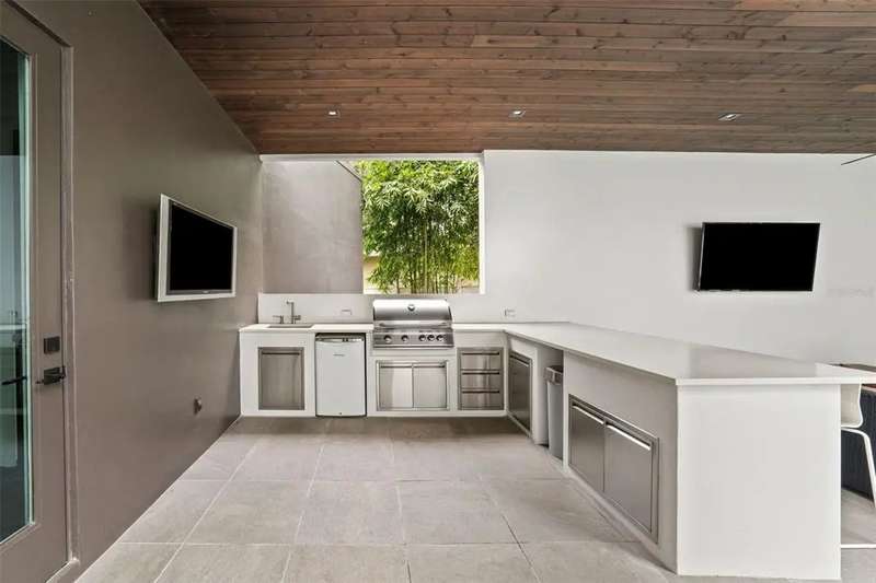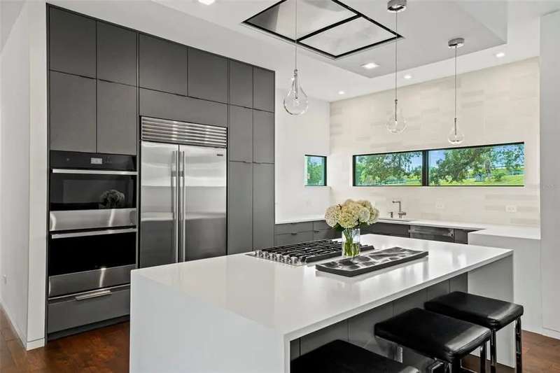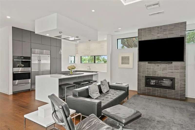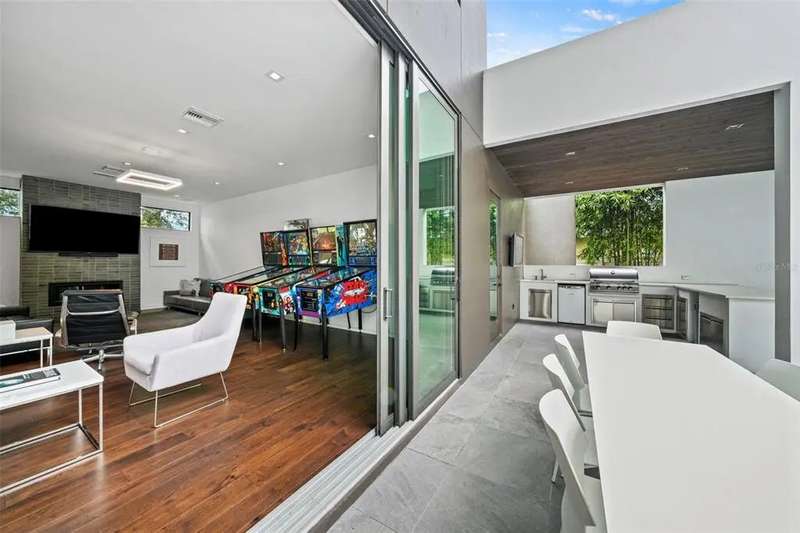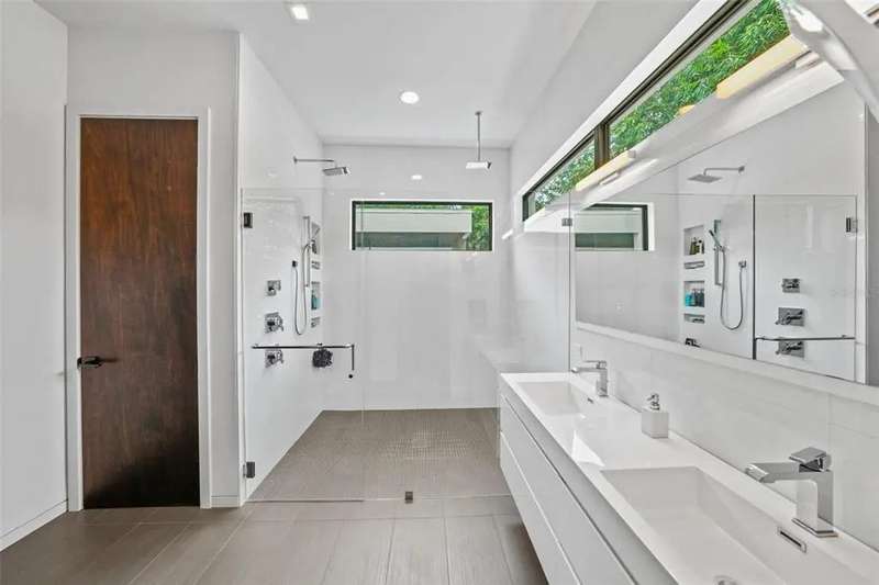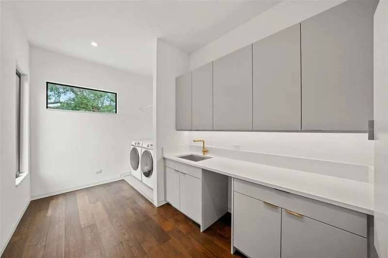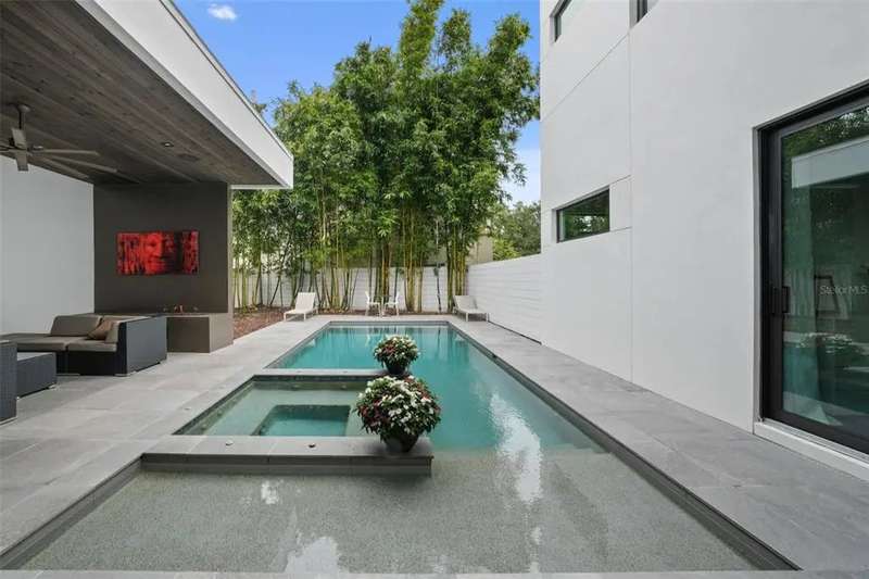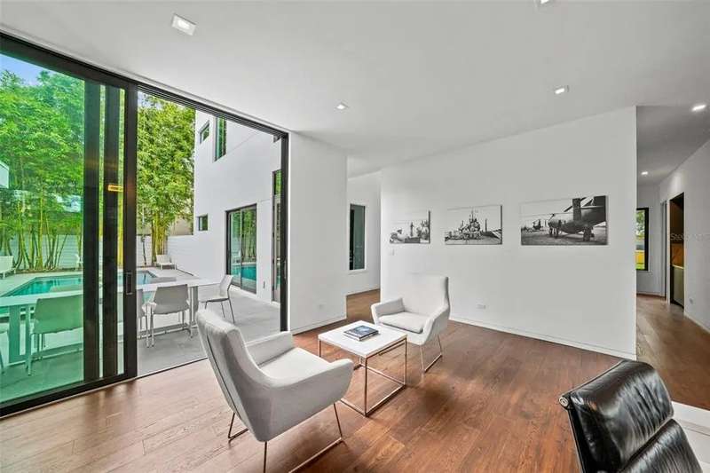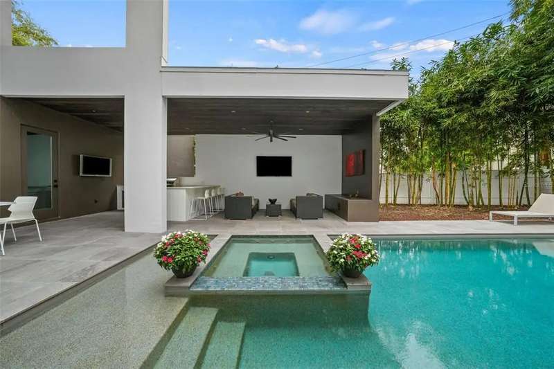 This stunning residence stands just steps from the highly coveted Waverly Park Circle. It’s distinguished by its exceptional quality and modern architecture. Thanks to TWO STORY BLOCK construction, sand-smooth stucco, and impact-resistant windows and doors, the home is not only visually stunning but also meticulously crafted but virtually SOUND PROOF! Built as a personal residence by the architect and builder of custom homes, Domain Development (D2), every detail has been artfully selected. Designed with gatherings in mind, the home features a formal dining room with a custom table for fabulous dinner parties and a spacious family room perfect for fun holiday celebrations. When the festivities move outside, sliding open the wall of glass doors transforms the indoor living space into an outdoor sanctuary. Guests can enjoy the saltwater pool and spa, gather at the bar beside the fully equipped outdoor kitchen, or relax by the fire in the outdoor living area. Alfresco dining is easily accommodated with a dedicated table. Back inside, the kitchen will impress even the most discerning chef. Features include a Jenn air gas cooktop, dual built-in ovens, a Subzero refrigerator, and large island with extra storage and seating. The sleek, modern design of the custom cabinets and counters is easy to maintain, thanks to the walk-in working pantry with appliance counter and shelving. Other benefits to the home include a downstairs primary bedroom suite with two walk-in closets. The bathroom features a floating dual sink vanity and walk-in shower. A private study and powder bath complete the first floor. Upstairs, find a reading loft flush with an abundance of natural light. There are four additional secondary bedrooms and three bathrooms. Additionally, there is an expansive laundry and bonus room. Additional highlights include a temperature-controlled wine room with space for 333 bottles, a mudroom with plumbing for a future bath, an oversized two-car garage, and pre-wiring for a generator. Convenient to downtown Tampa, Bayshore, and A rated schools. Also, it's in an X FLOOD ZONE with NO FLOOD INSURANCE requirements. The only challenge with buying this remarkable home is deciding how best to enjoy all it has to offer! Schedule your showing today!