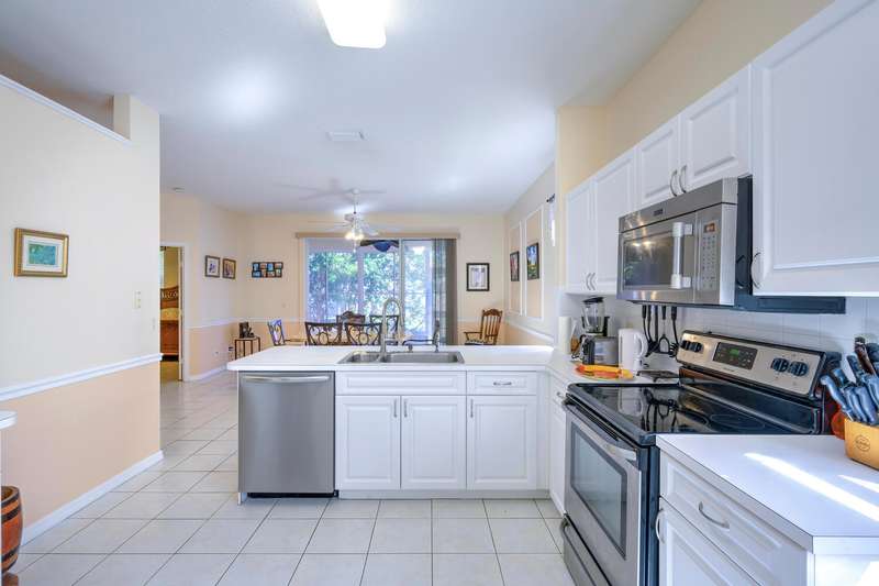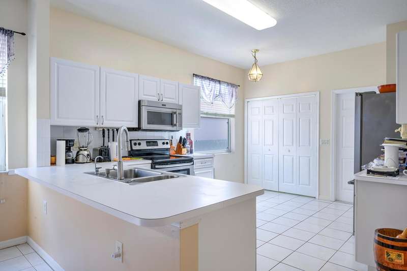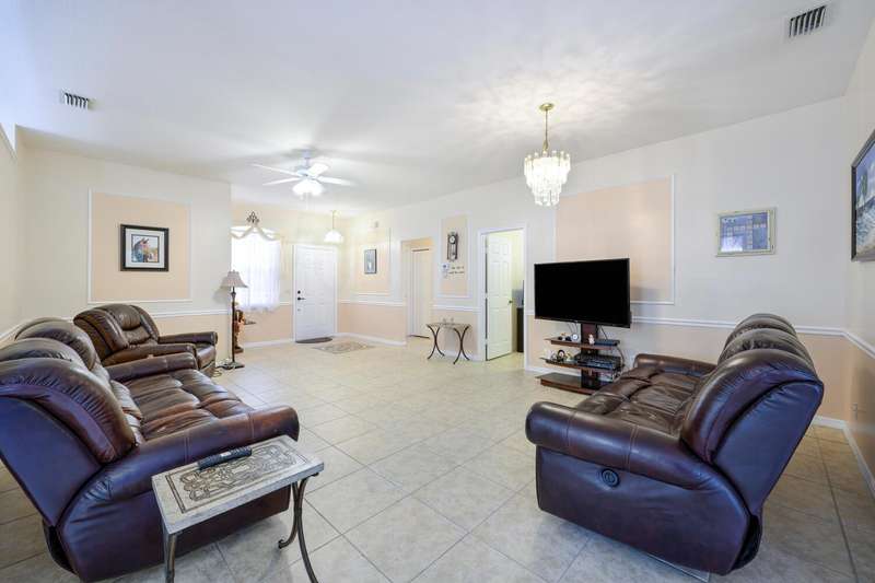 Recent 4 Points Insp Report in MLS Docs; Ask your agent Great Investment+Leisure+Convenience+Low Maintenance Cost! This 2382 SQF total, 1673 SQF under AC, CBS Home, Features Hip Barrel Roof, ceramic tile floor throughout & Lots of natural light. Enjoy the Spacious Open Floor composed by the family, living & dining area all under a 11' High Ceiling W/ a Slider to a screened lanai. Great for Entertaining! The eat-in kitchen comes w/ a full set of Stainless Appliances, Breakfast Nook, a pantry and Washer & Dryer conveniently inside the house. The Huge Master Bedroom quietly located by the back of the house offers you privacy from the Front Guest Bedroom. You still have the mix use Den/Office/3rd bedroom. Update Water heater System and well-maintained A/C. CLICK'''MORE'' FOR HOA INFO