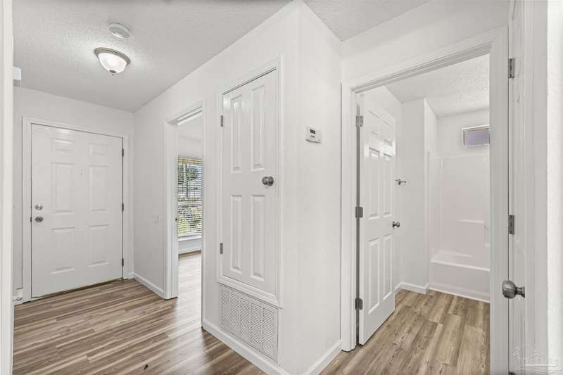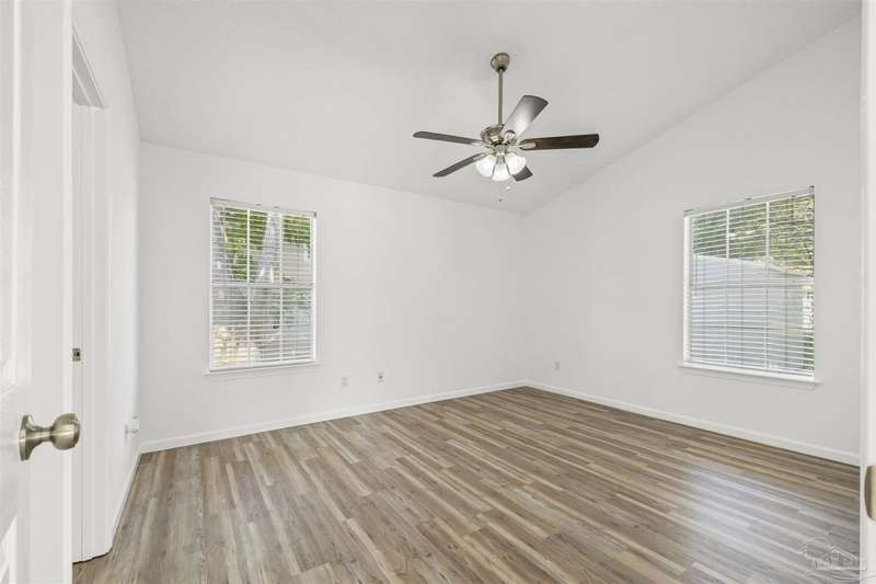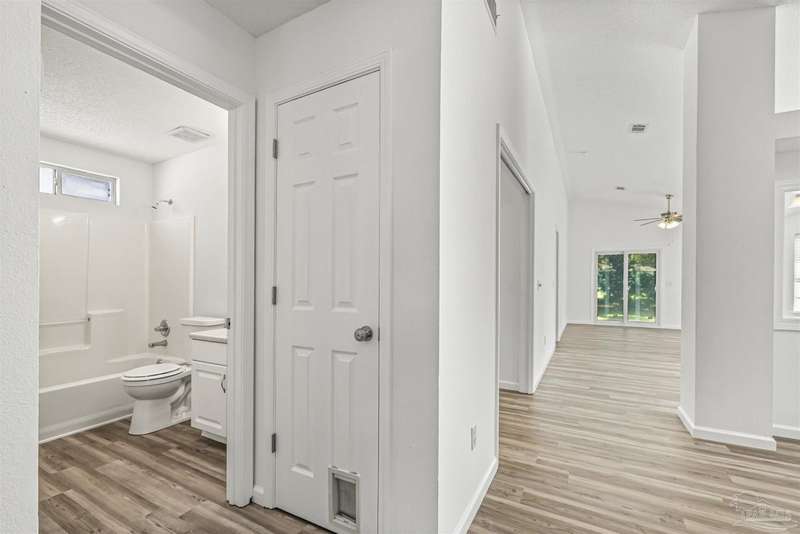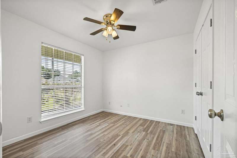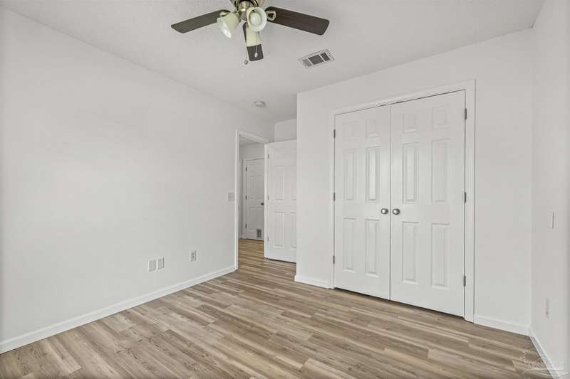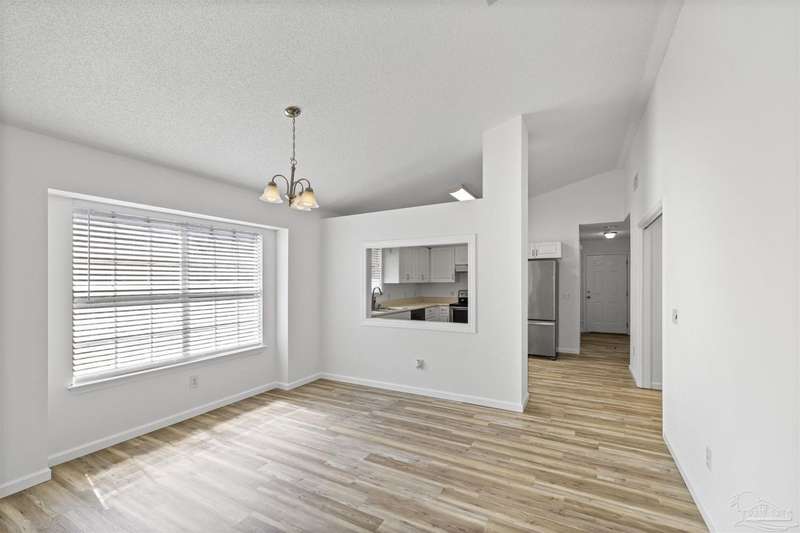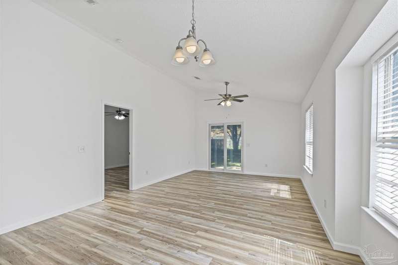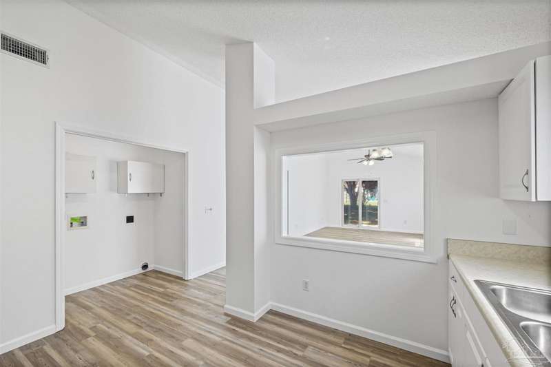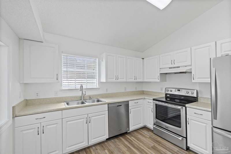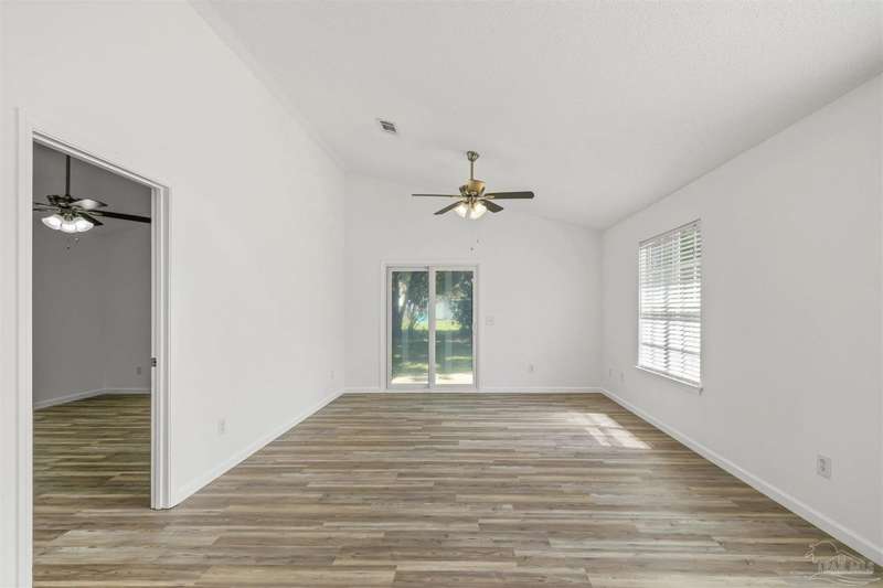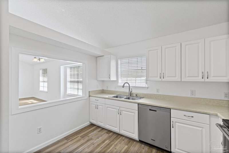This 3 bedroom 2 bathroom home is MOVE IN READY! As you pull up to the home you're sure to notice the attached garage and spacious driveway. Of course, nothing says Florida like the palm tree in the front yard. Inside, you will find the guest rooms at the front of the home, offering separation from the primary bedroom in the back. Each guest room has generous floor space and closet space. The kitchen is the heart of this home, with stainless appliances, abundant counter and cabinet space and is open to your living and dining room. All the windows and sliding doors allow natural light to flood this open concept space. A new sliding door leads out to a patio and the backyard. Off the living room is the primary bedroom featuring an ensuite bathroom. The bathroom has a convenient linen closet and a HUGE walk-in closet. This home has BRAND NEW vinyl flooring that is continuous throughout the home. All the old tile was removed before new flooring was put down. All the walls and trim have been freshly painted as well offering a fresh clean space. Some lighting fixtures and mirrors have been replaced as well. The roof was replaced in 2020. This home can qualify for FHA, VA and conventional financing. Schedule your tour today and snag your own slice of Florida paradise.