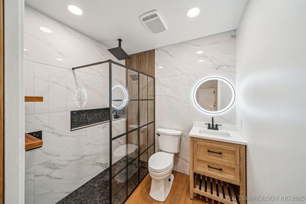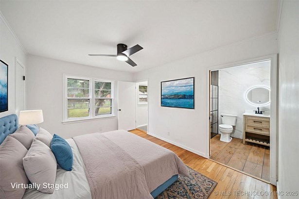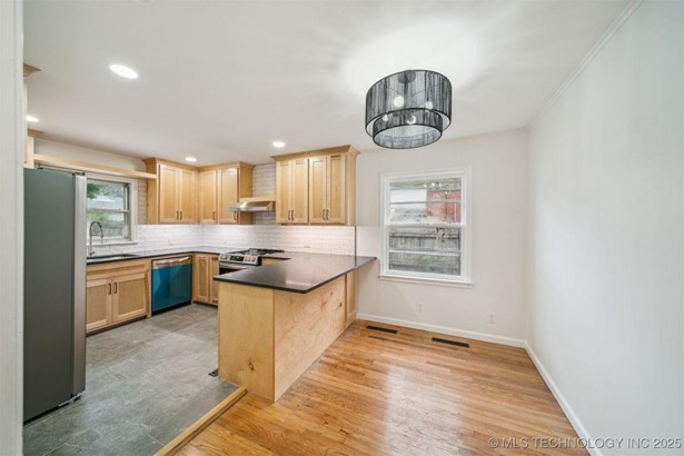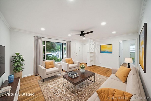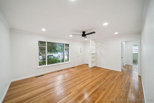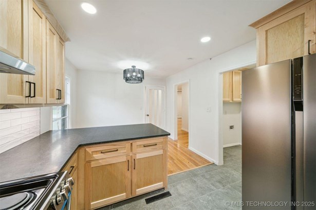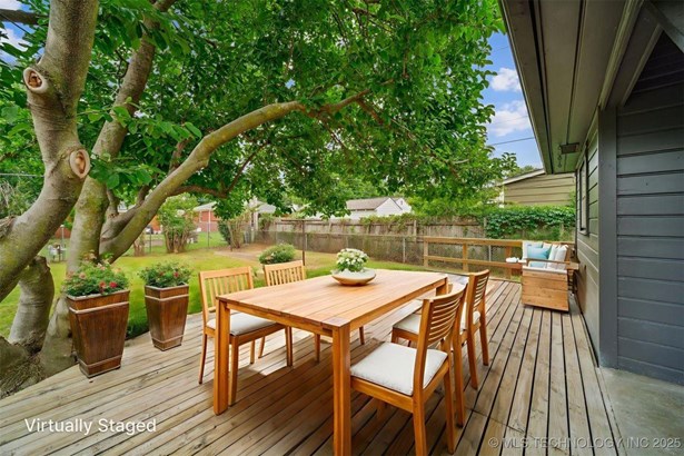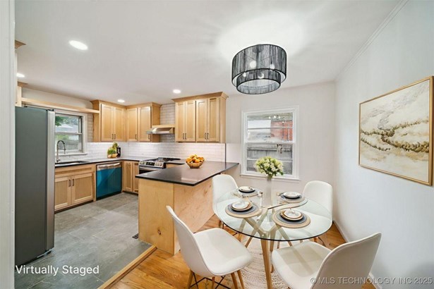 Complete new HVAC system installed on 7/16/2025. This Charming Midtown Tulsa Find is a Fully Renovated 3 bedroom, 2 bath home includes 1,495 square feet (CH) of beautiful living space. Fresh paint inside and out! Refinished original hard wood floors, New Custom Kitchen with pantry, custom hardwood soft-close cabinets, under cabinet lighting with granite counters, all new stainless appliances and gas stove, new tile floors & backsplash connect to the spacious laundry room with access to the primary. In the heart of the home features the gorgeous primary and all new private on suite with walk-in custom curbless rainfall shower. Completely remodeled hall bath, stylish new fixtures & lighting throughout, upgraded pex-type plumbing throughout the entire home, new gas hot water tank, updated 200 amp electric service with new electric panel, updated electrical wiring and devices throughout, new architectural roof in 2025 (with 5 year transferrable warranty) . New high efficiency HVAC system. Great 2nd living area has built-in cabinets with room for a "day bed" or seating, wood burning fireplace & new laminate flooring! Beautifully landscaped with tons of mature landscaping, covered front porch, floral plants & trees. Large Fully fenced back yard has a spacious deck and huge tulip tree great for outdoor entertaining, plenty of yard space and a small shed with concrete floor for storage. In the heart of midtown this sought-after neighborhood is within the Lanier Elementary and Edison High School districts, this home is move-in ready and close to all Midtown has to offer.