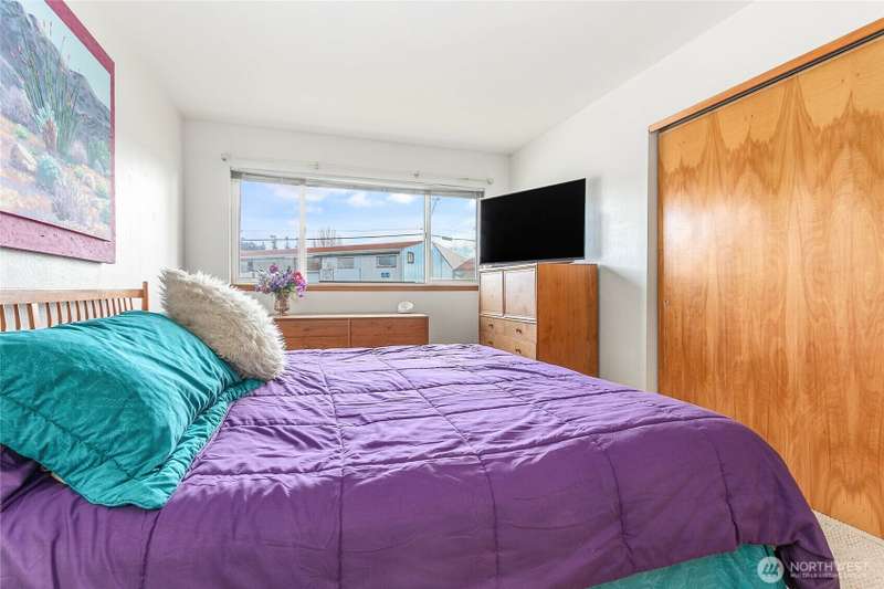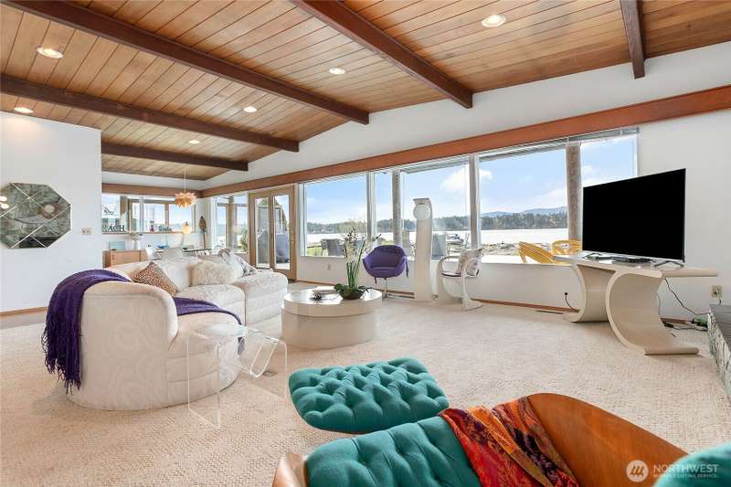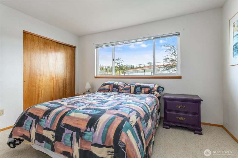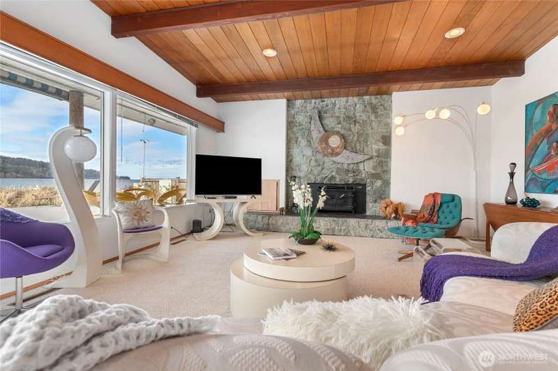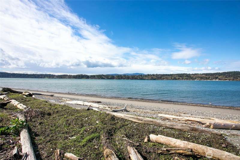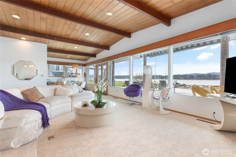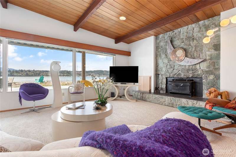 Charming waterfront home! Enjoy breathtaking water views from this single-level, 1,459 SF home designed for seamless indoor-outdoor living. The vaulted ceilings in the spacious living room, along with large windows and skylights, fill the home with natural light. The spacious primary suite features a private ¾ bath, while the living room opens to an expansive deck, perfect for entertaining or relaxing by the water. This fee-simple property is in a prime location with a low-maintenance yard and a one-car garage. A fantastic opportunity to own a low-bank waterfront home—don’t miss it!