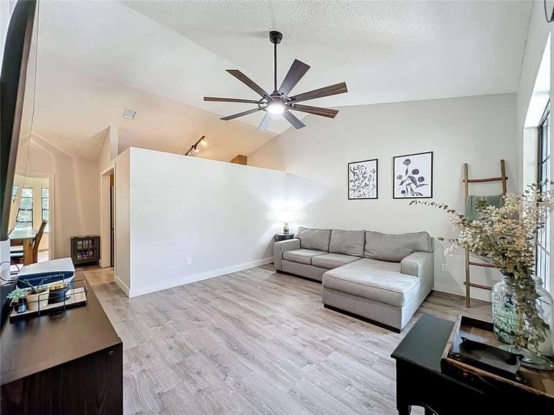 Super price for this affordable 3/2 with NO HOA, oversized fenced in lot, plus two storage sheds! NEW ROOF 2024, REFRIGERATOR-OVEN/STOVE-MICROWAVE-DISHWASHER NEW 2023, GARBAGE DISPOSAL NEW 2025. Remodeling was started inside with all new flooring throughout, painted the entire inside, all new fans and light fixtures throughout, updated kitchen cabinets, replaced faucets in the in the master bath, installed extra shelving above toilets, replaced all door handles, installed new closet storage racks, and landscaped around the home. There's also a huge Florida room under air that leads out to a large, covered patio. Spacious, private, and fenced backyard with firepit. Plenty of space for a POOL! Oversized 2-car garage, lots of storage space. Wonderful mature community in a fantastic location! Only 35 minutes to Disney theme parks, 20 minutes to downtown Orlando and all its incredible dining options, entertainment, and shopping. 40 minutes to Orlando International airport and just over an hour to East coast beaches. Come call this home yours today!